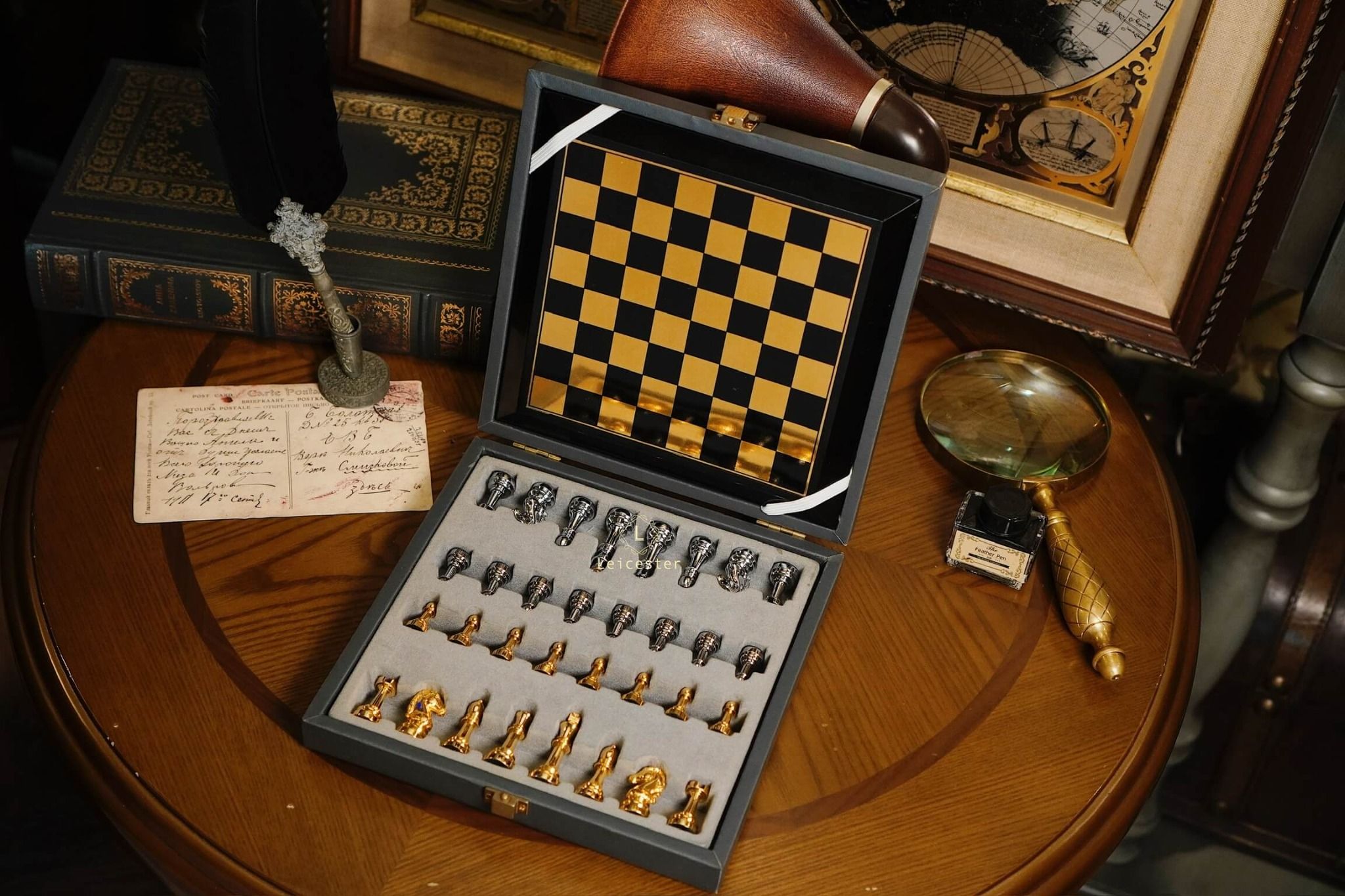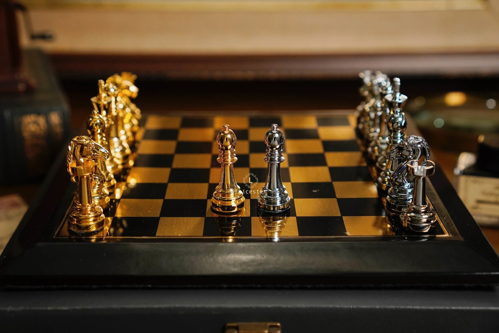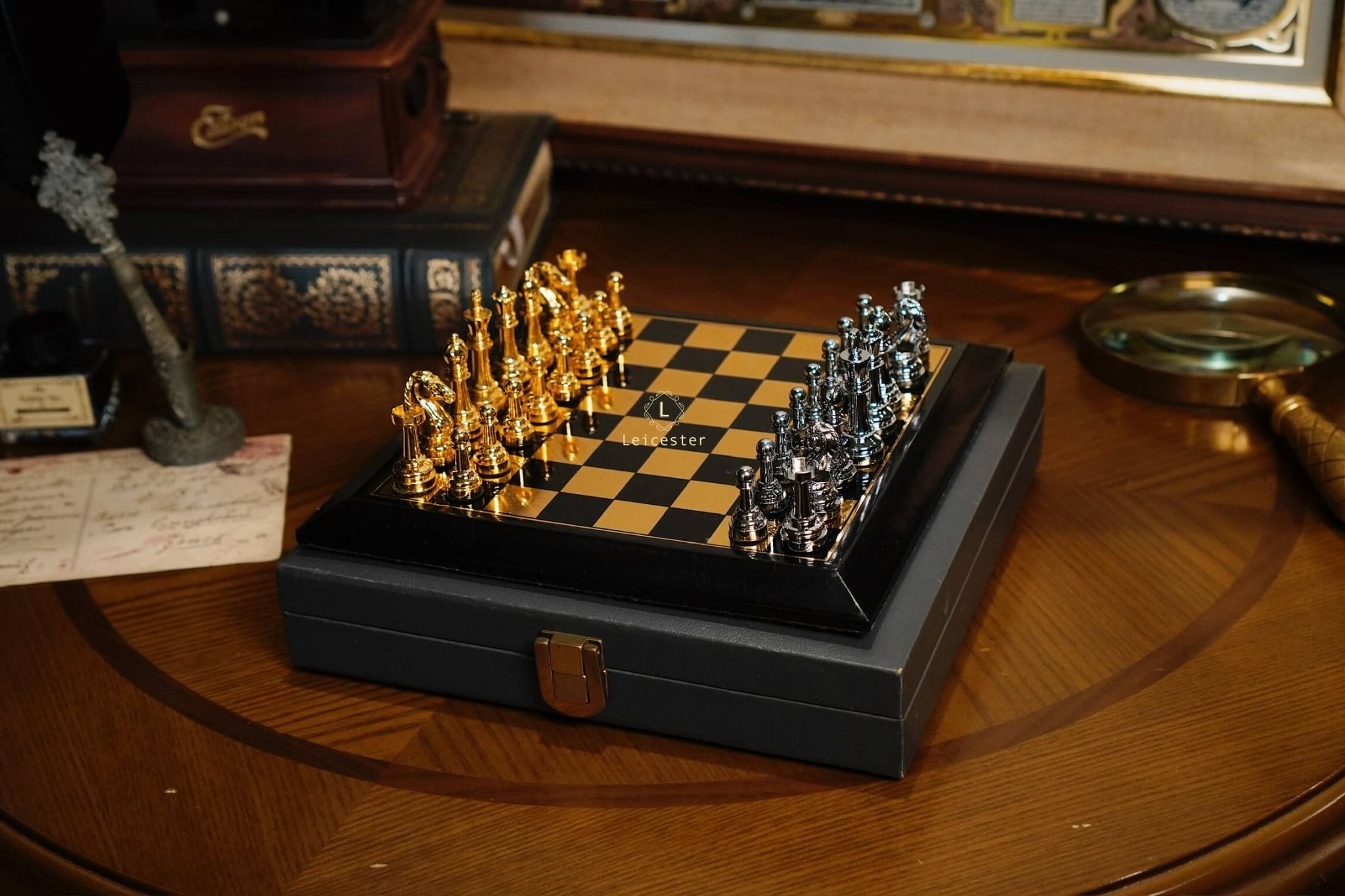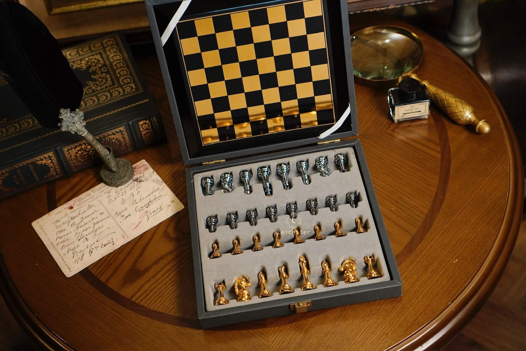 - Quân cờ: kim loại, đế lót nhung