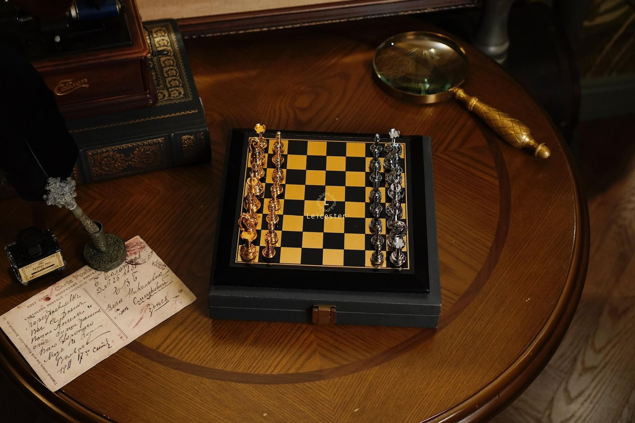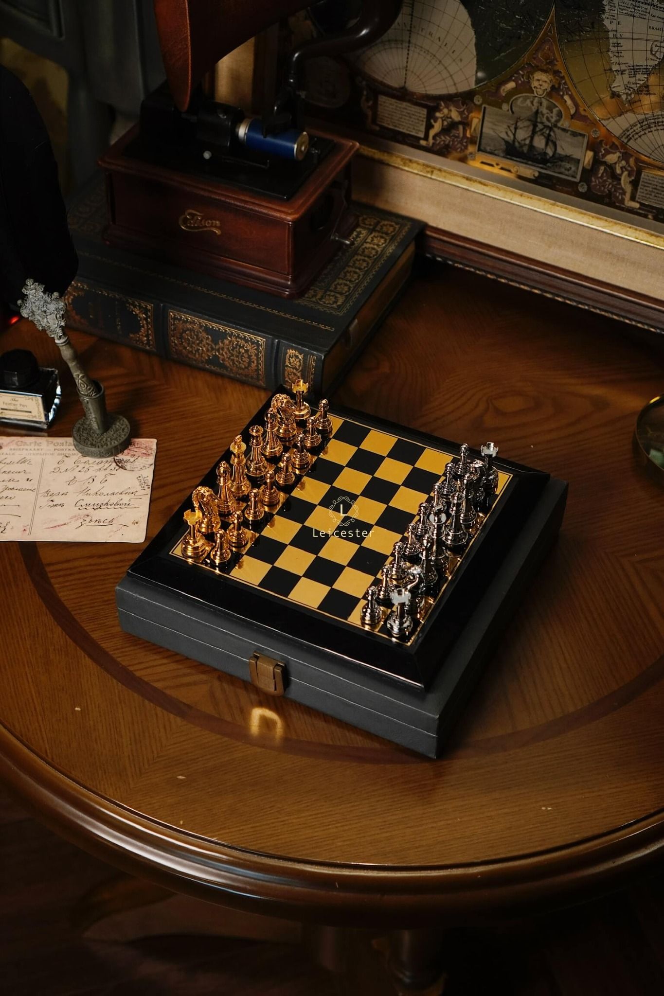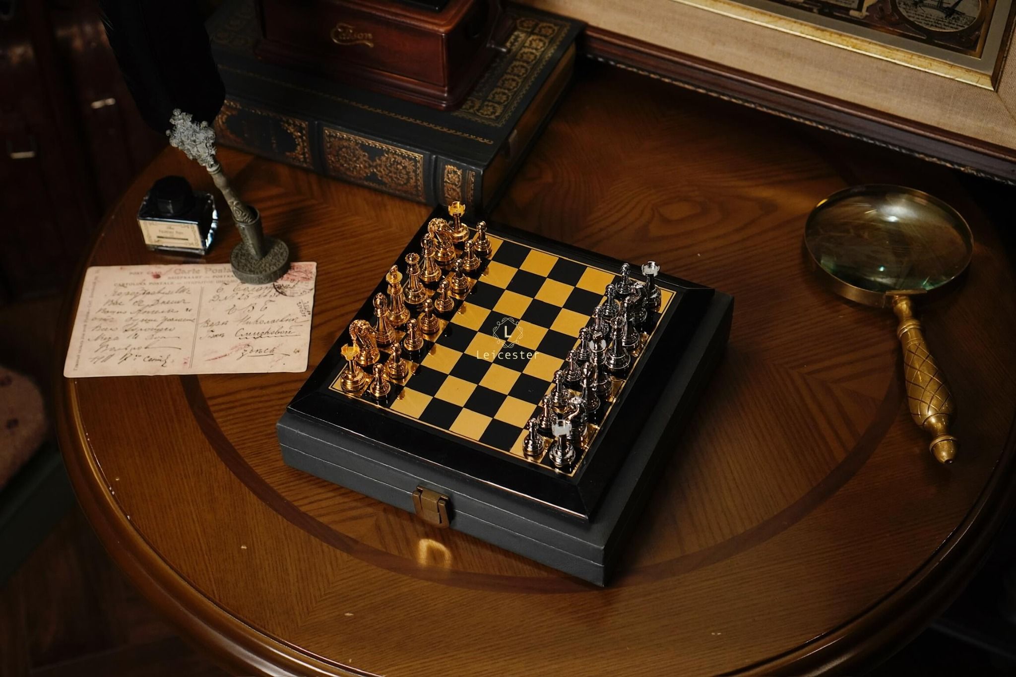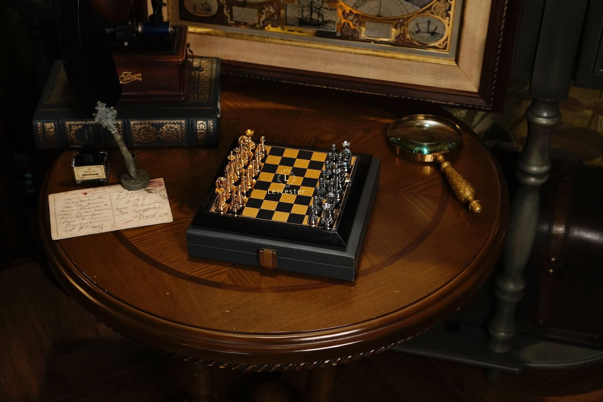 - Quân cờ: kim loại, đế lót nhung