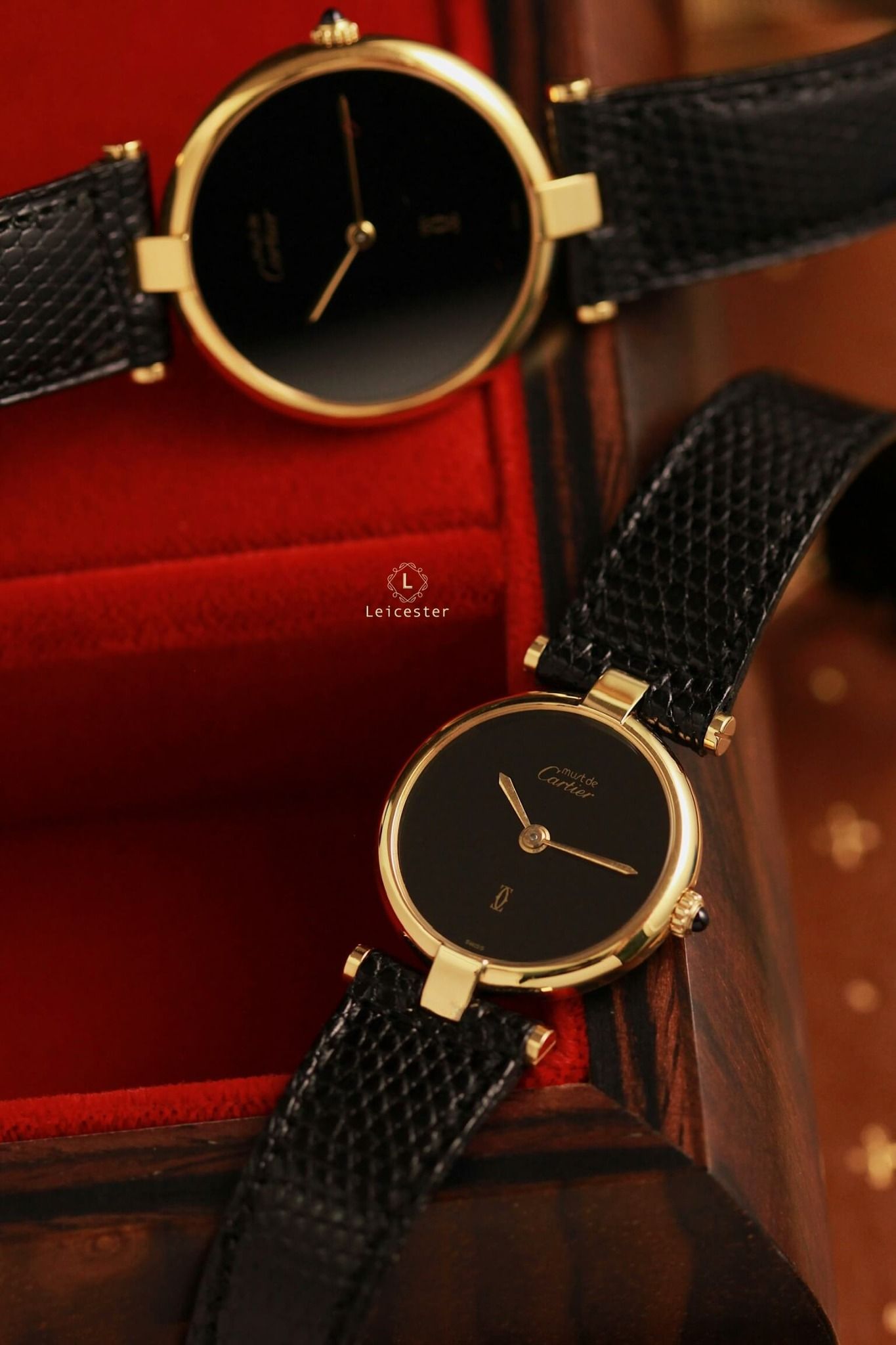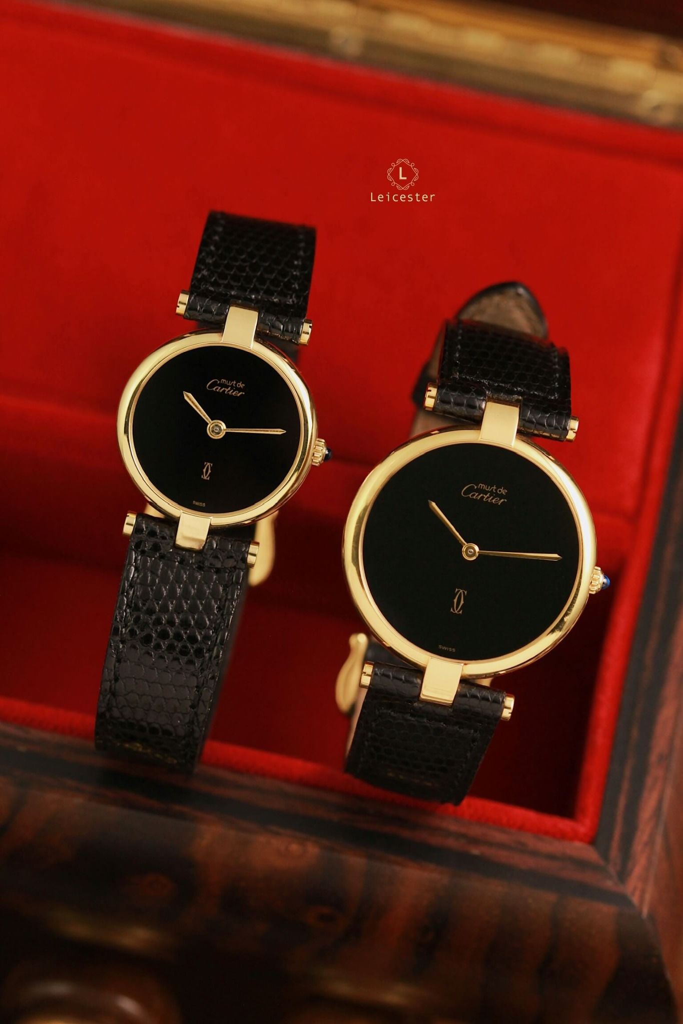 Ref: 17 & 18Cal: 81 Swiss quartzDial: BlackCase: Silver 925/Gold PlatedCrystal: SapphireSize: 30mm & 24mmYear: 1980sStrap and Buckle Original CAR-269 & CAR-270