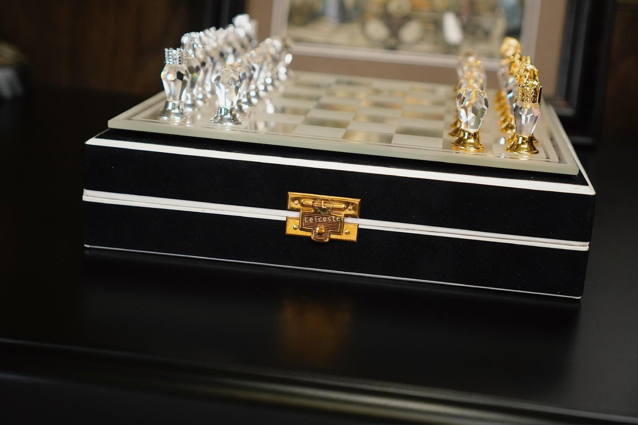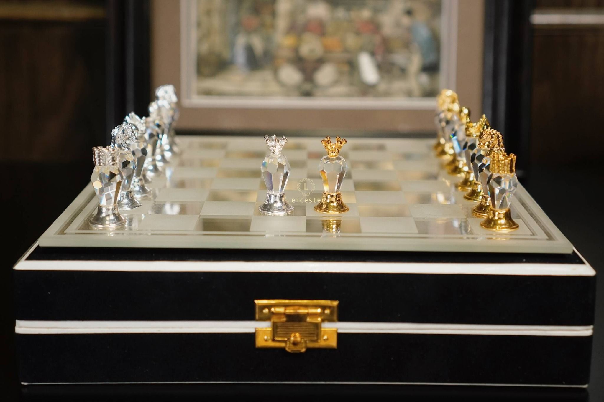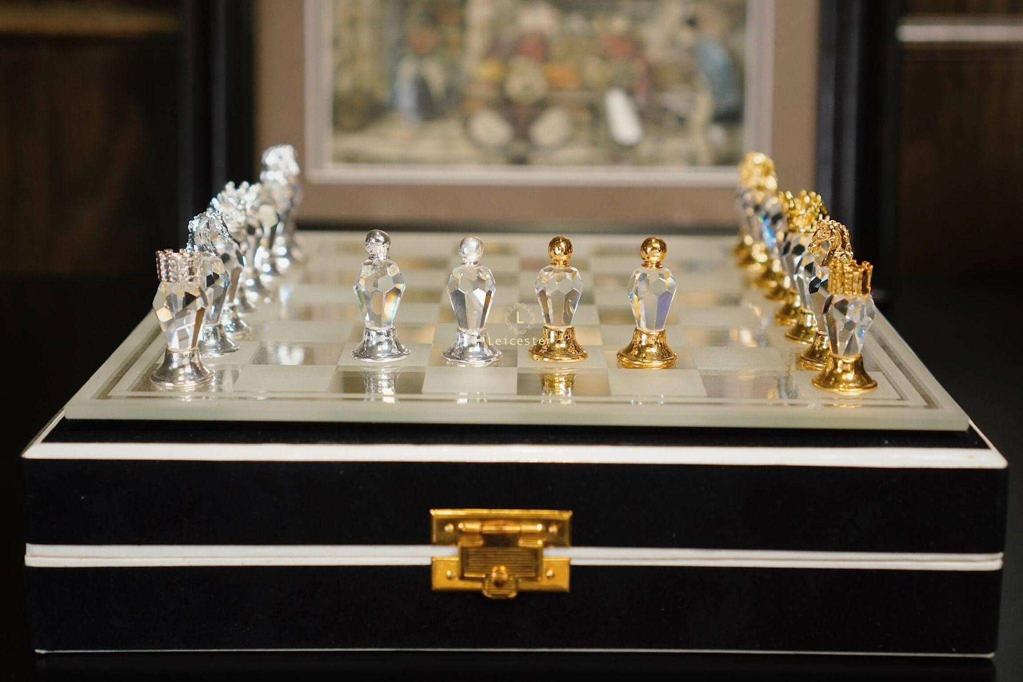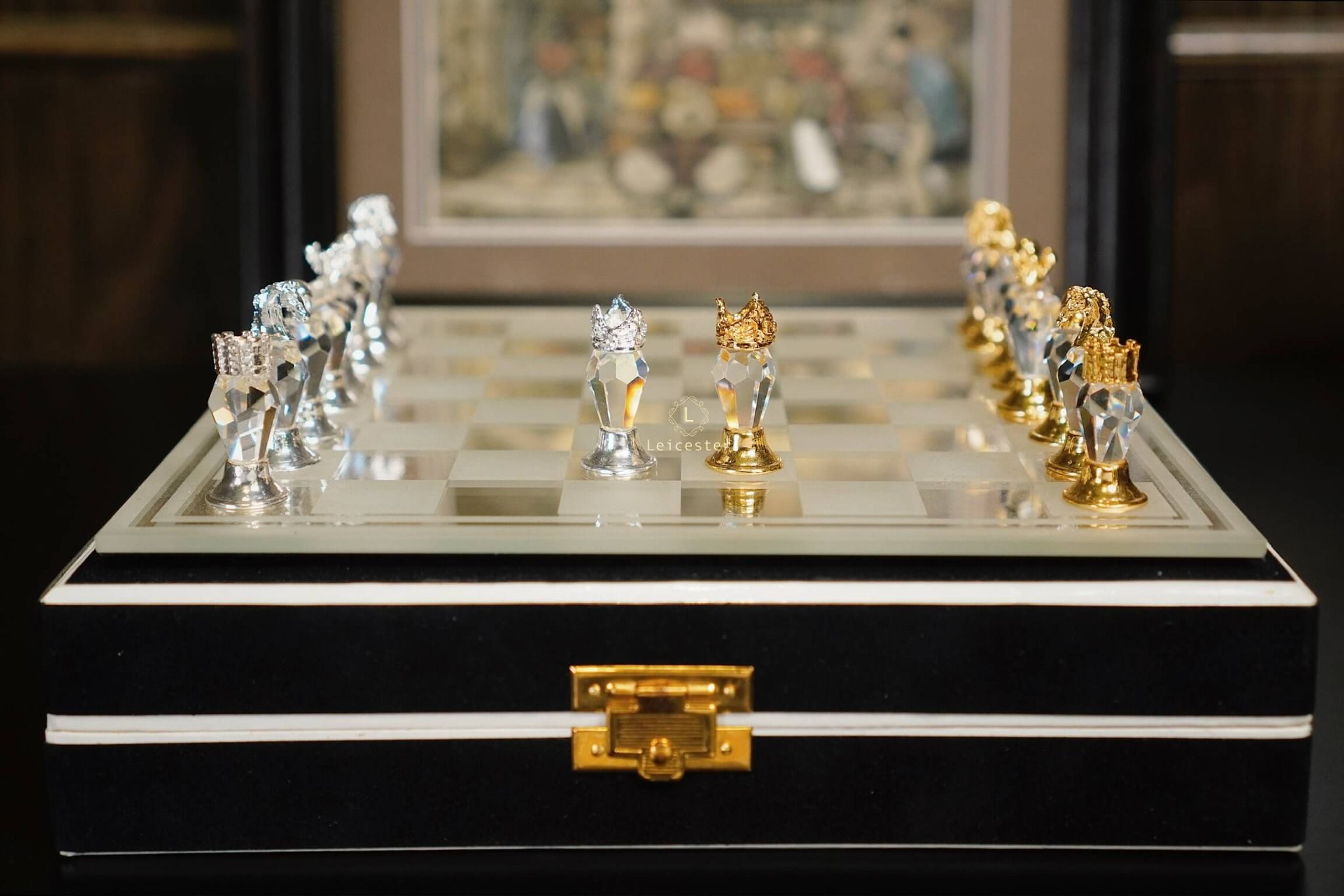 Quân cờ: Pha lê Bohemia, kim loại mạ vàng mạ bạc