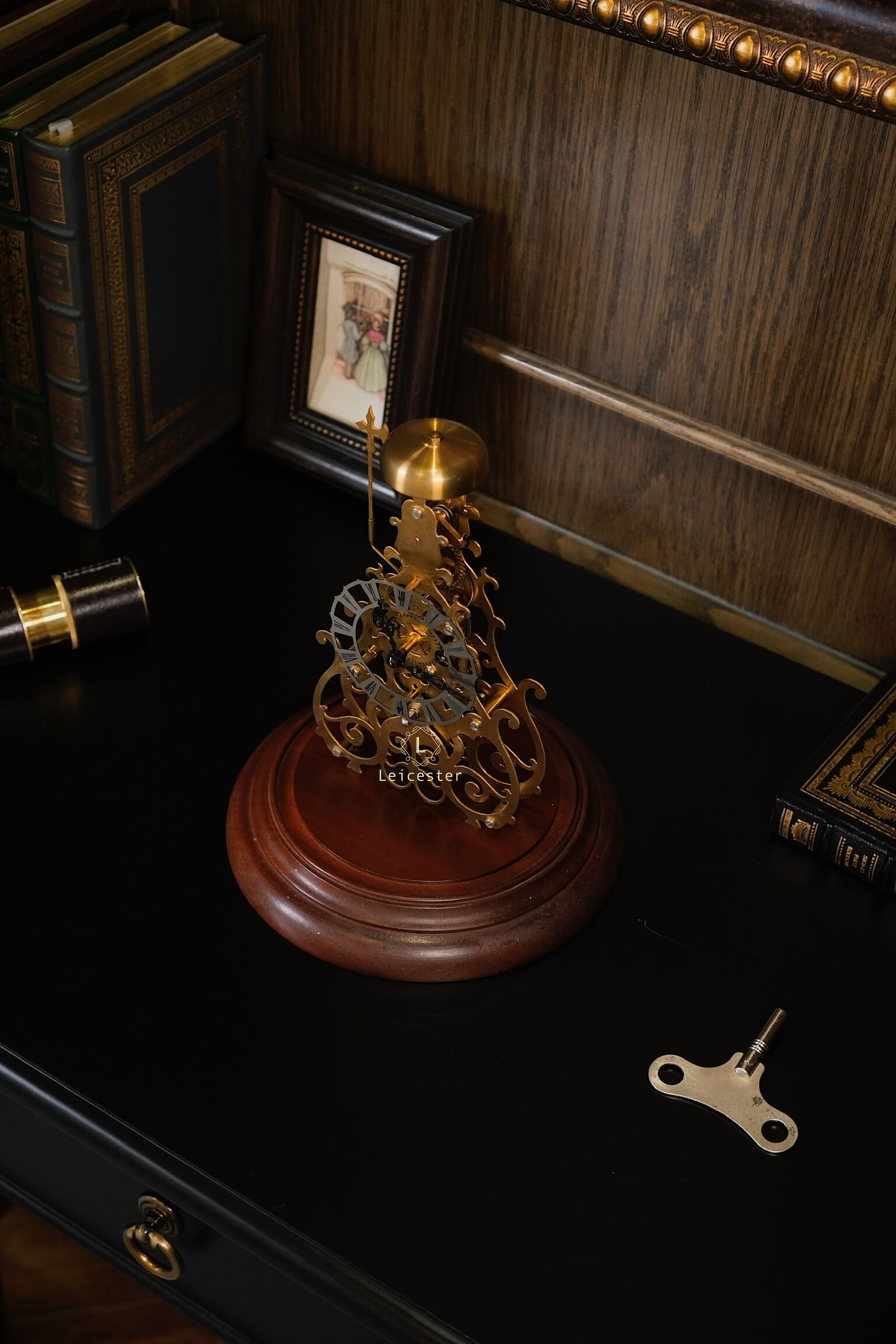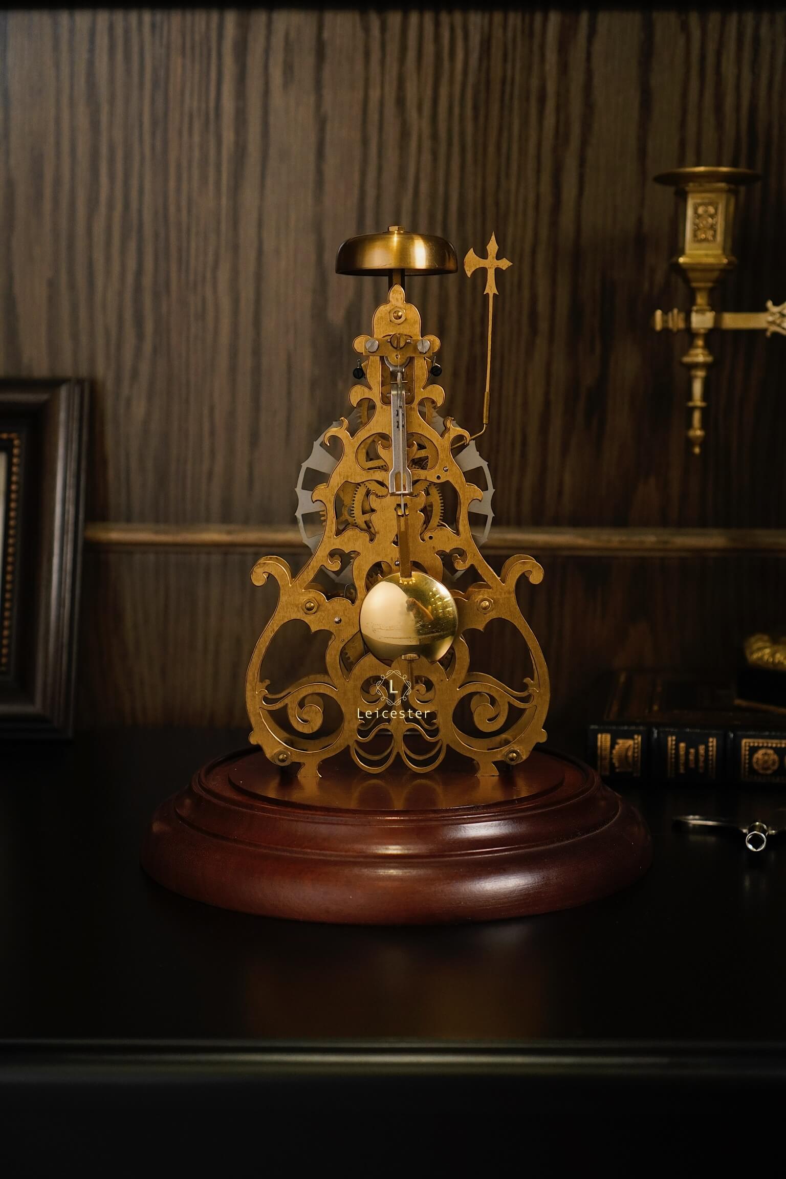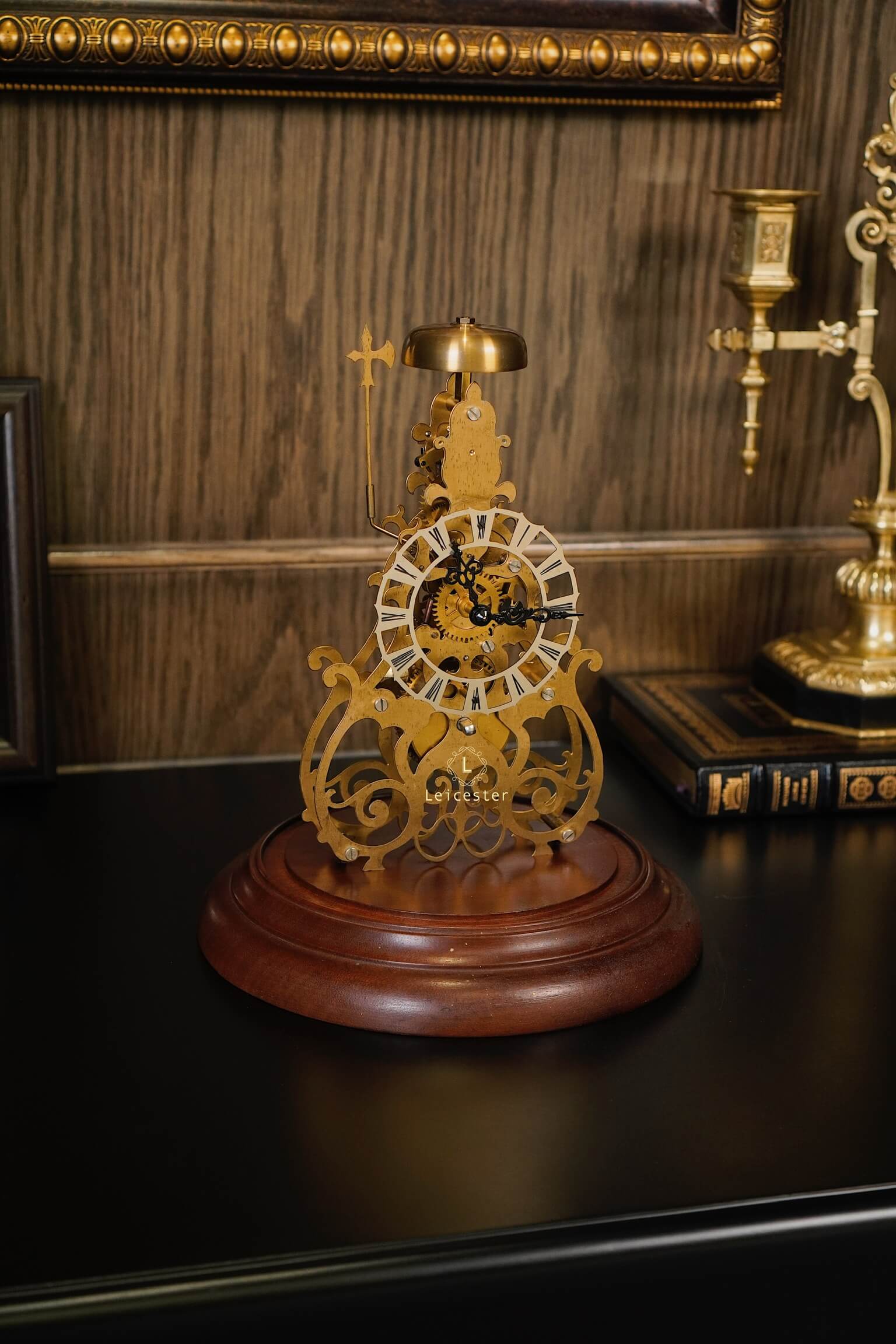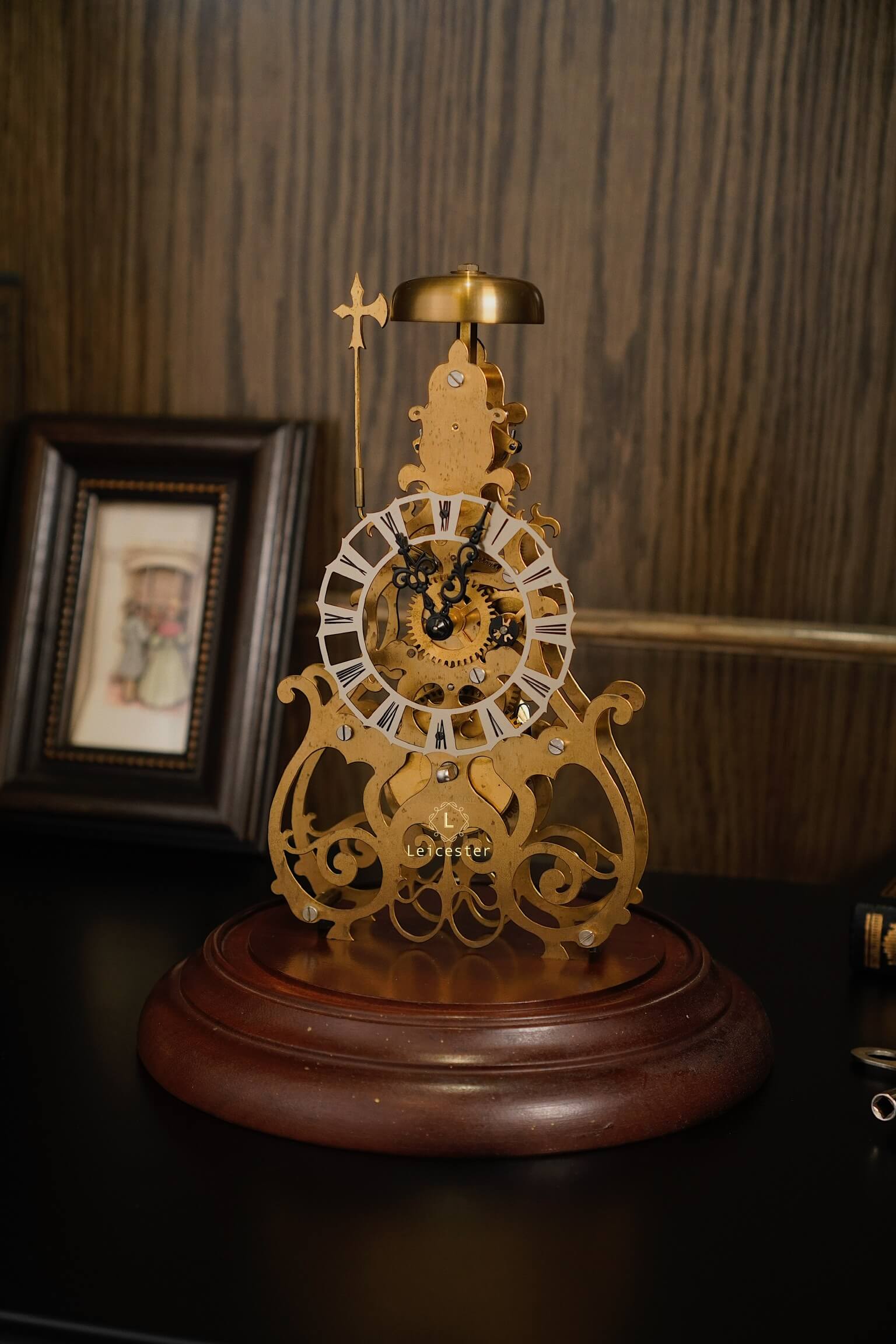 Vận hành bằng cơ cấu cót tay và đi kèm chìa khóa lên dây, phần đế gỗ tự nhiên cùng mặt số mạ kim loại chạm khắc tinh vi càng tôn thêm vẻ sang trọng và đậm chất châu Âu cổ. Chiếc đồng hồ không chỉ là một vật dụng xem giờ, mà còn là biểu thị cho sự tỉ mỉ và giá trị trường tồn của nghệ thuật cơ khí. Một món sưu tầm lý tưởng dành cho những ai trân quý vẻ đẹp cơ học thuần túy.