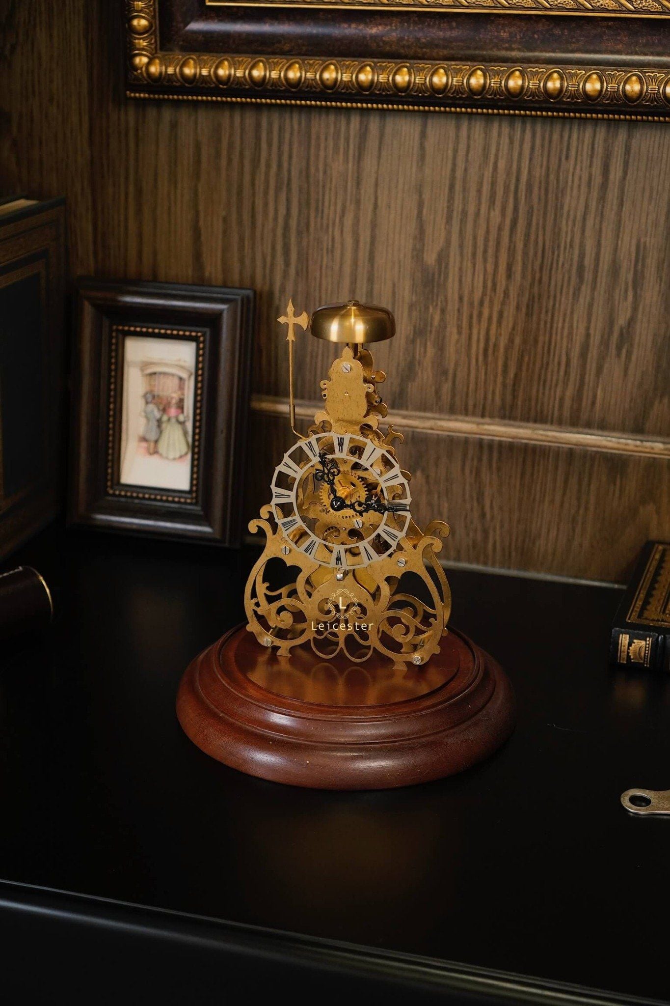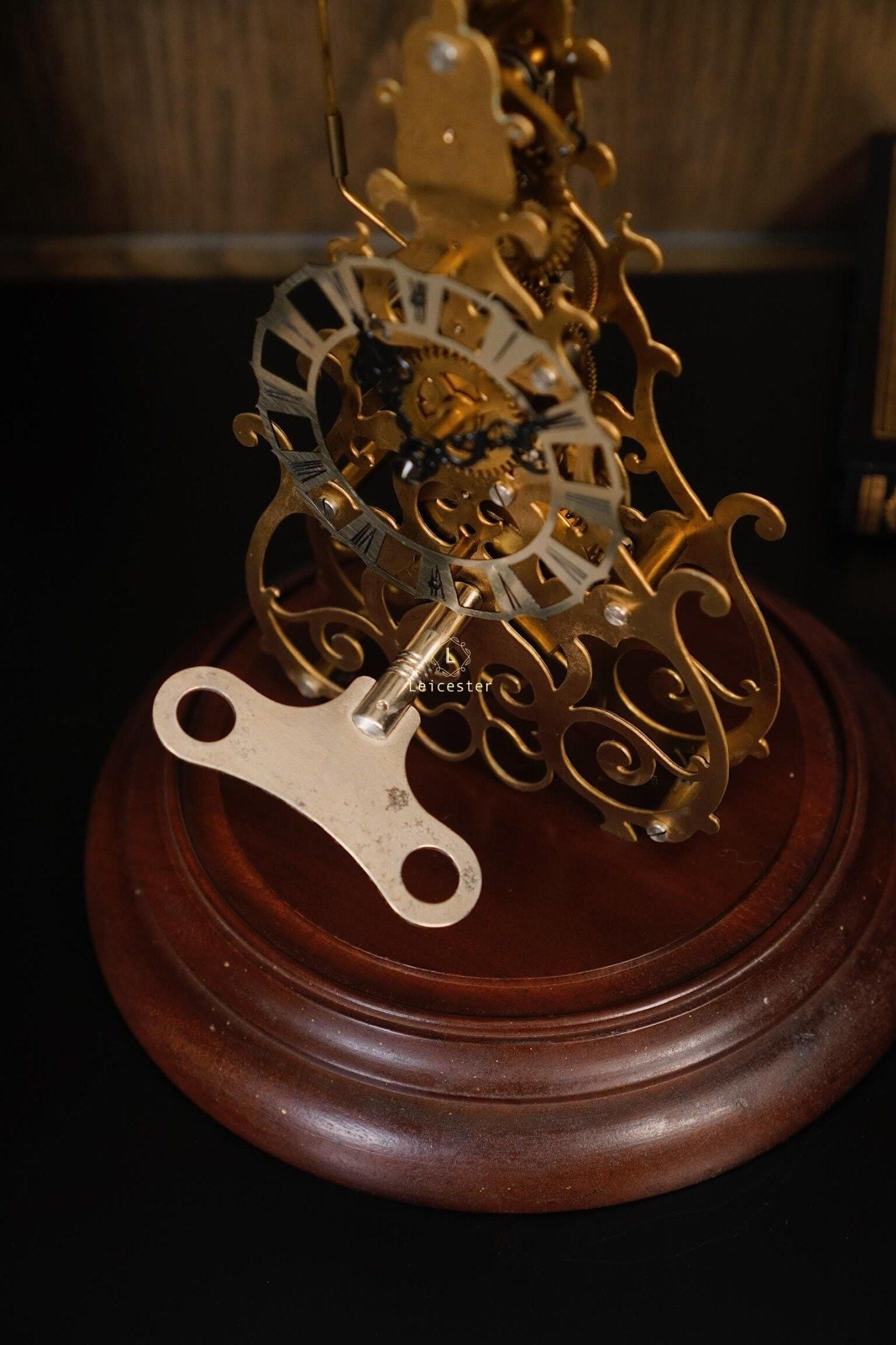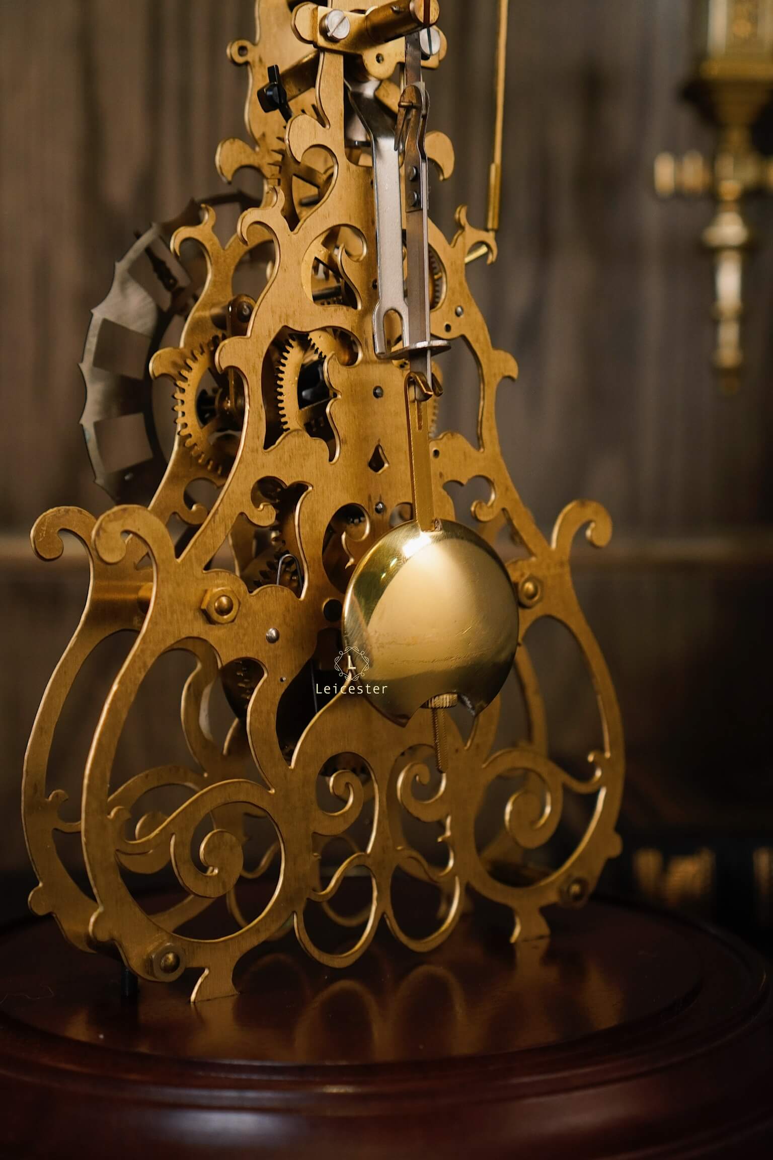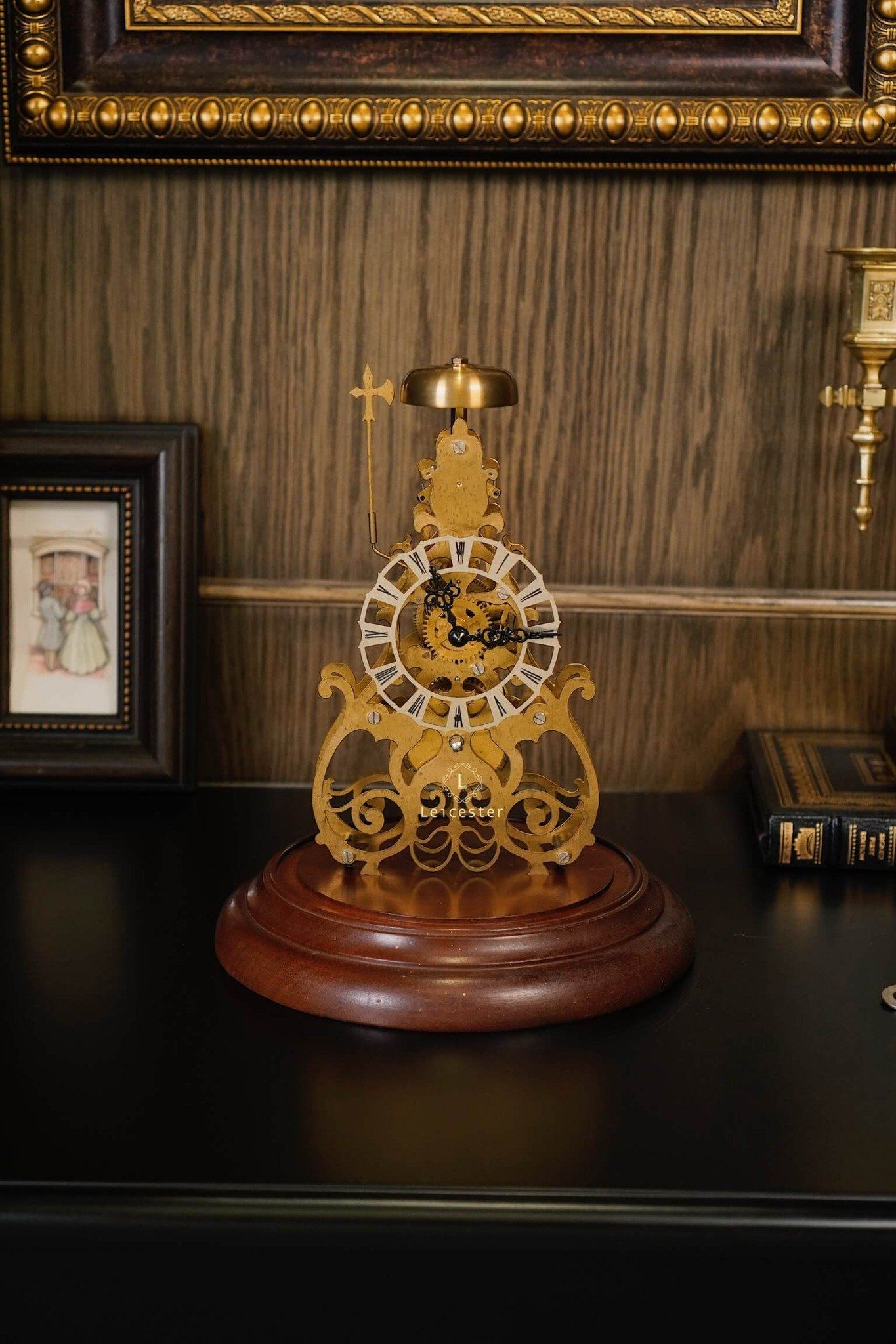 Vận hành bằng cơ cấu cót tay và đi kèm chìa khóa lên dây, phần đế gỗ tự nhiên cùng mặt số mạ kim loại chạm khắc tinh vi càng tôn thêm vẻ sang trọng và đậm chất châu Âu cổ. Chiếc đồng hồ không chỉ là một vật dụng xem giờ, mà còn là biểu thị cho sự tỉ mỉ và giá trị trường tồn của nghệ thuật cơ khí. Một món sưu tầm lý tưởng dành cho những ai trân quý vẻ đẹp cơ học thuần túy.