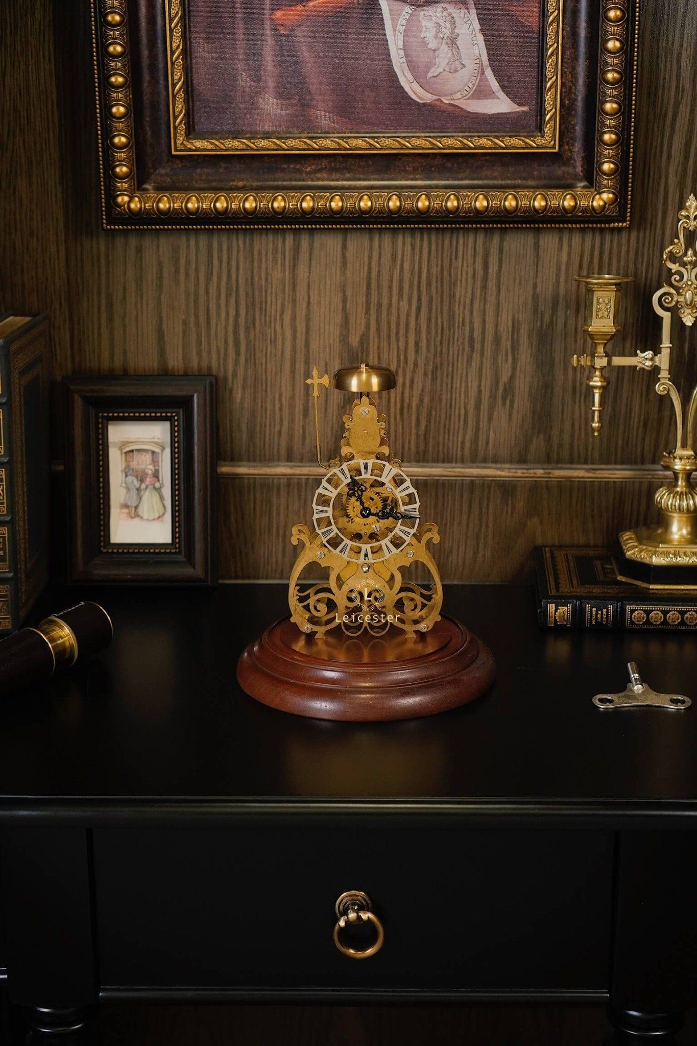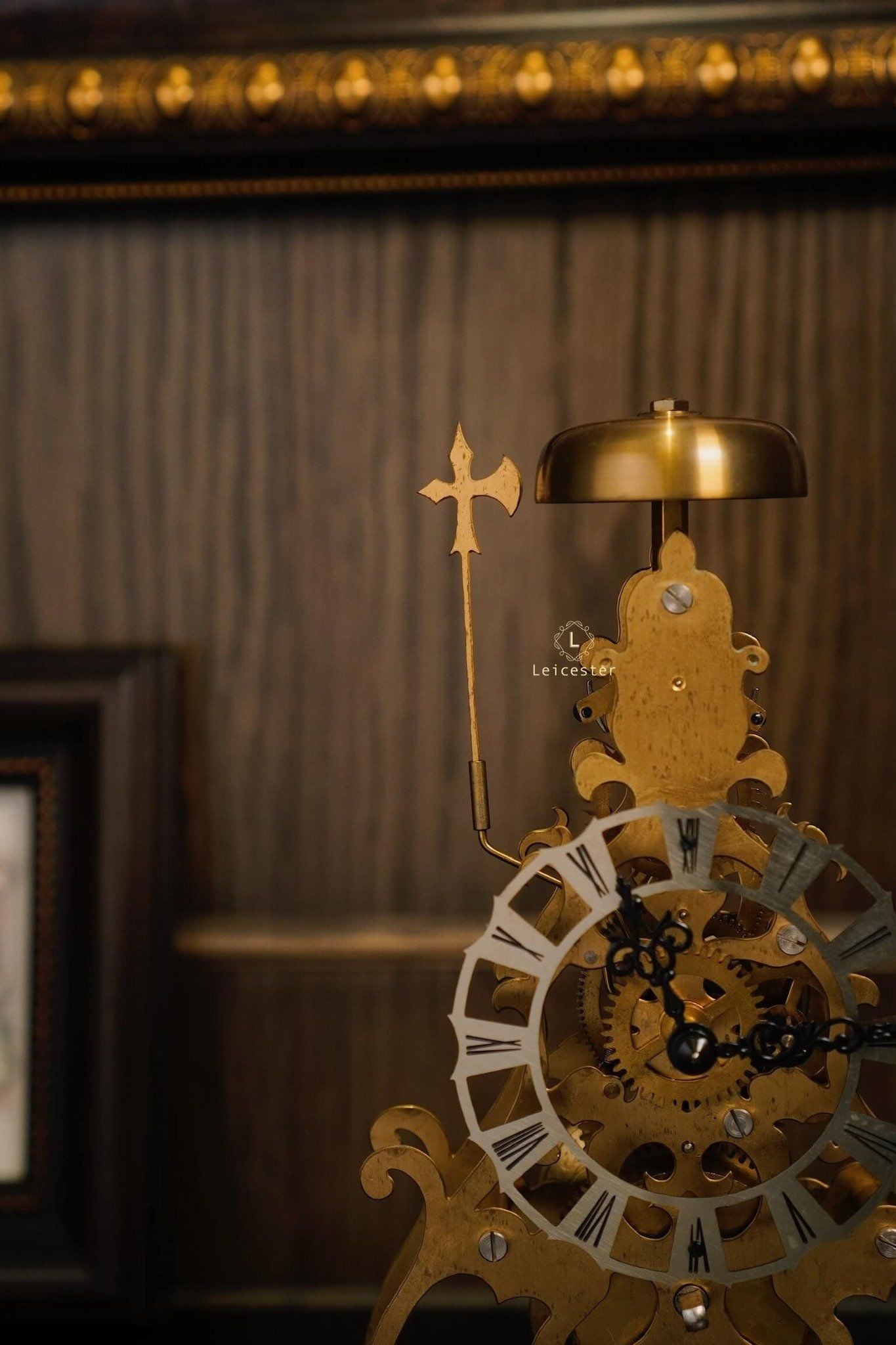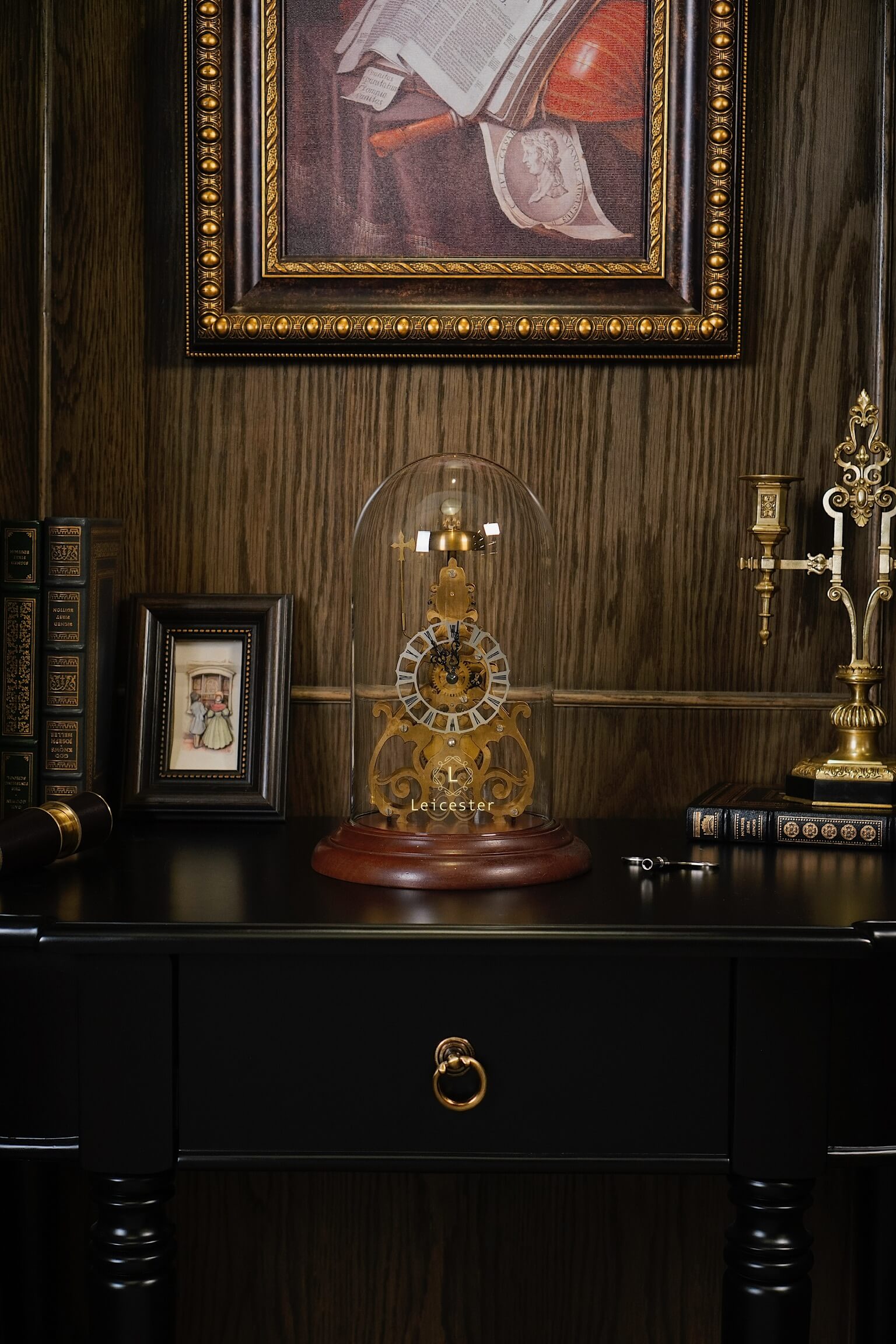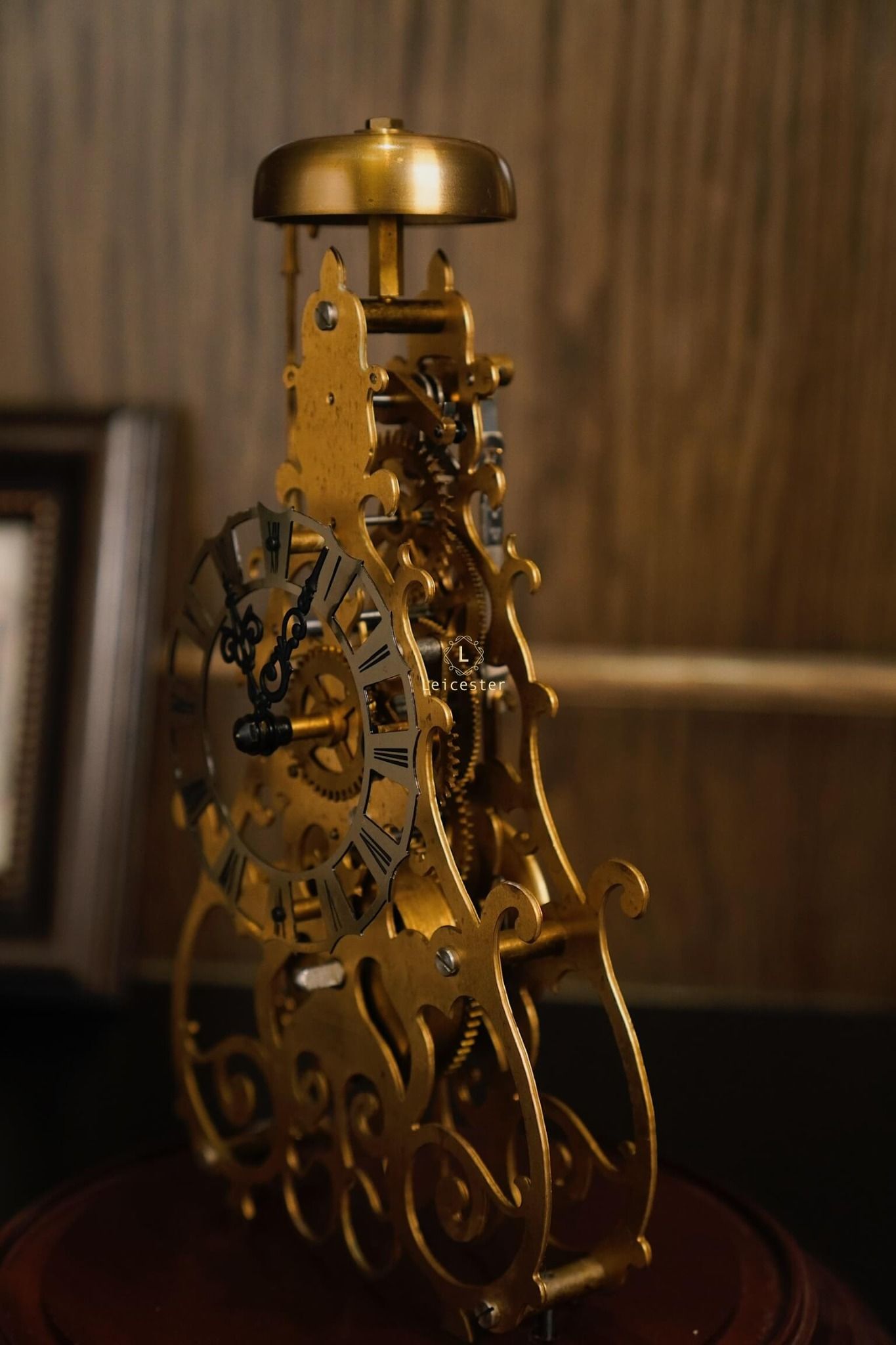Vận hành bằng cơ cấu cót tay và đi kèm chìa khóa lên dây, phần đế gỗ tự nhiên cùng mặt số mạ kim loại chạm khắc tinh vi càng tôn thêm vẻ sang trọng và đậm chất châu Âu cổ. Chiếc đồng hồ không chỉ là một vật dụng xem giờ, mà còn là biểu thị cho sự tỉ mỉ và giá trị trường tồn của nghệ thuật cơ khí. Một món sưu tầm lý tưởng dành cho những ai trân quý vẻ đẹp cơ học thuần túy.