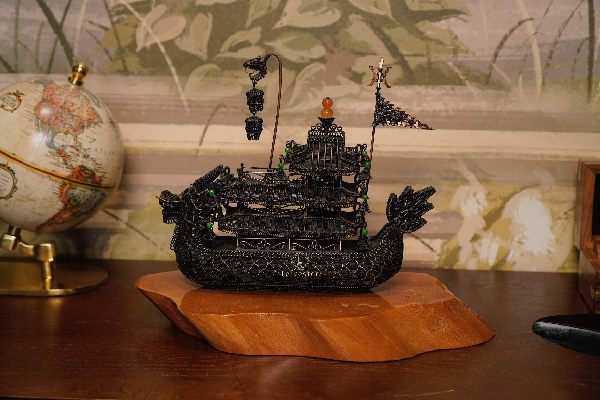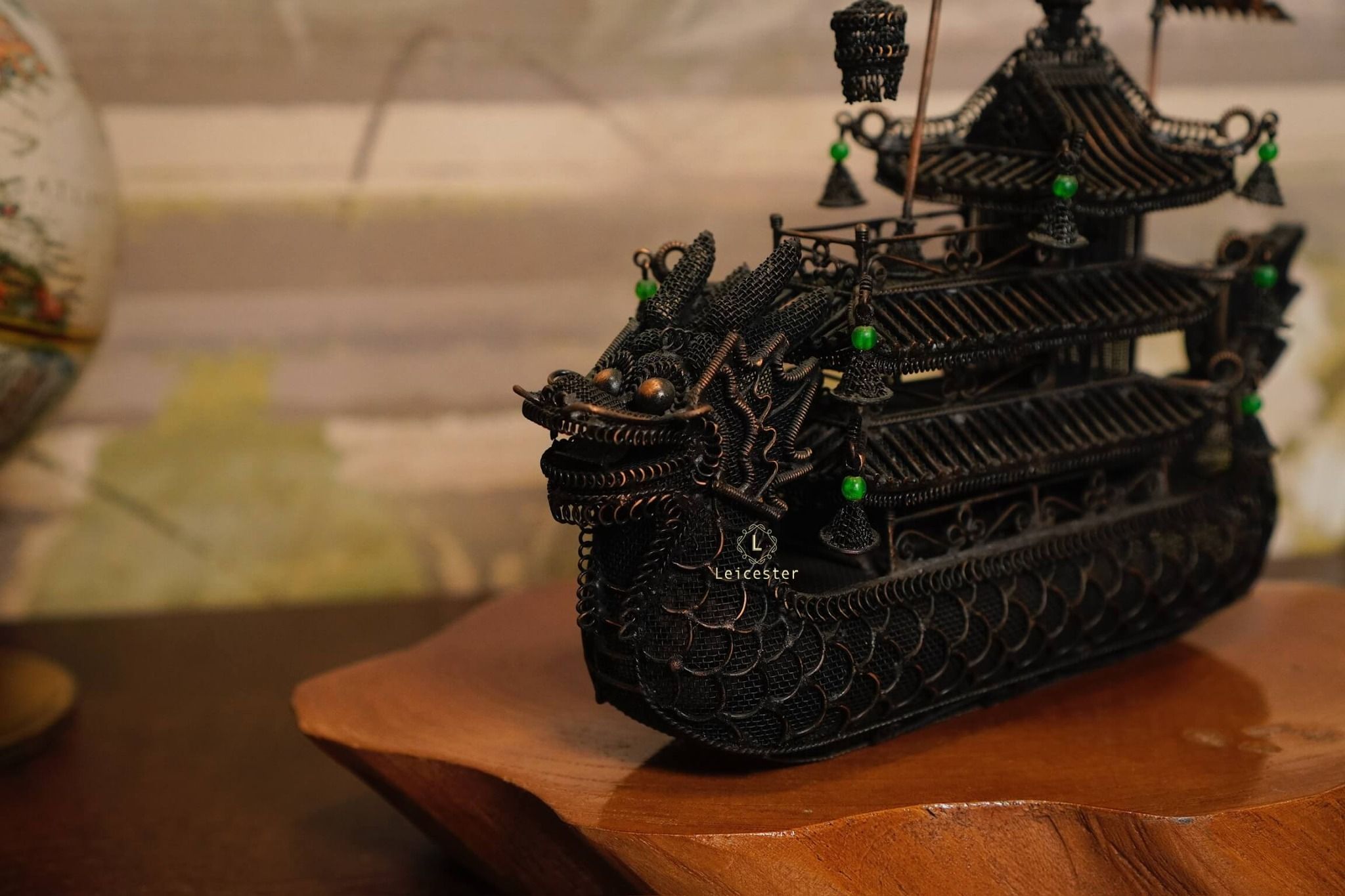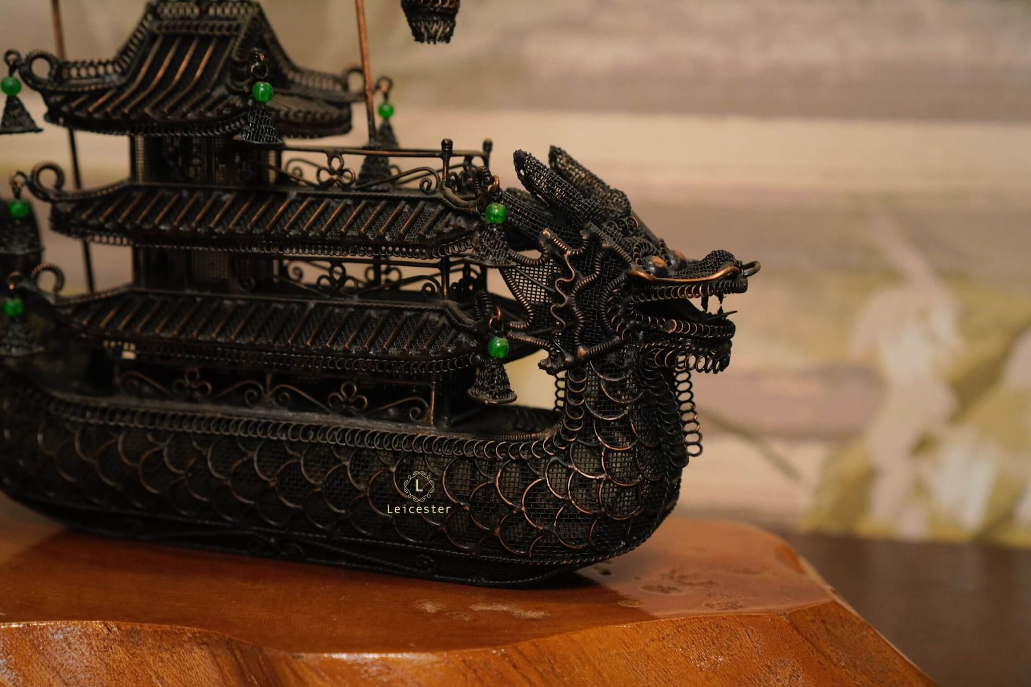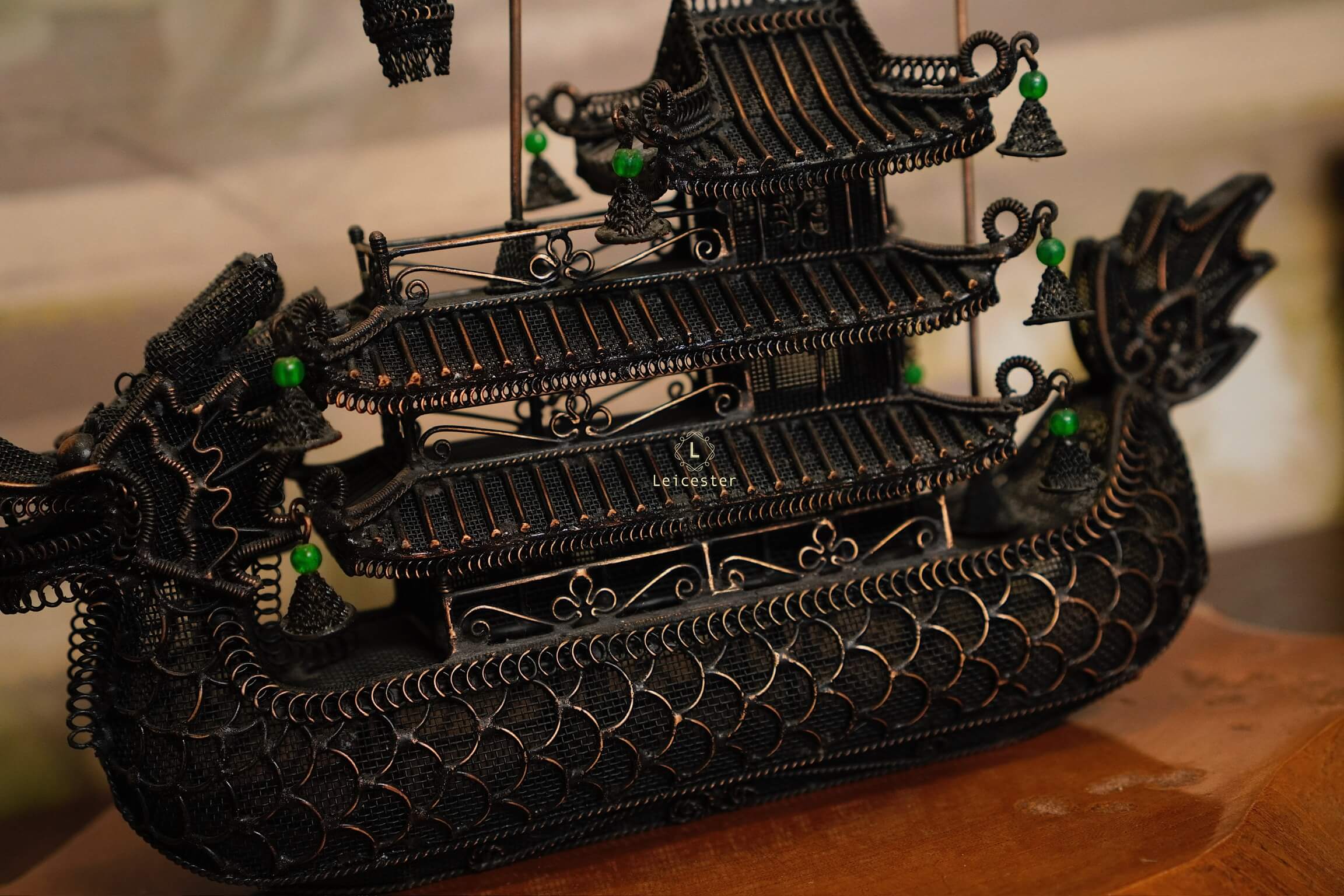 Được mô phỏng theo thuyền rồng hoặc thuyền chiến thời cổ đại Trung Quốc bằng kỹ thuật filigree - một kỹ thuật thủ công truyền thống dùng sợi kim loại rất mảnh uốn lại, sau đó hàn dính với nhau để tạo thành hình hoa văn tinh xảo mong muốn.