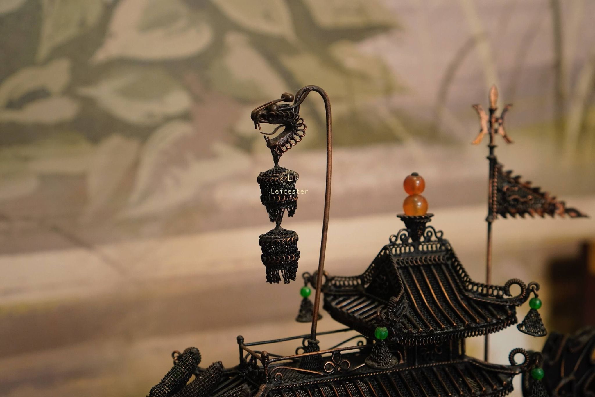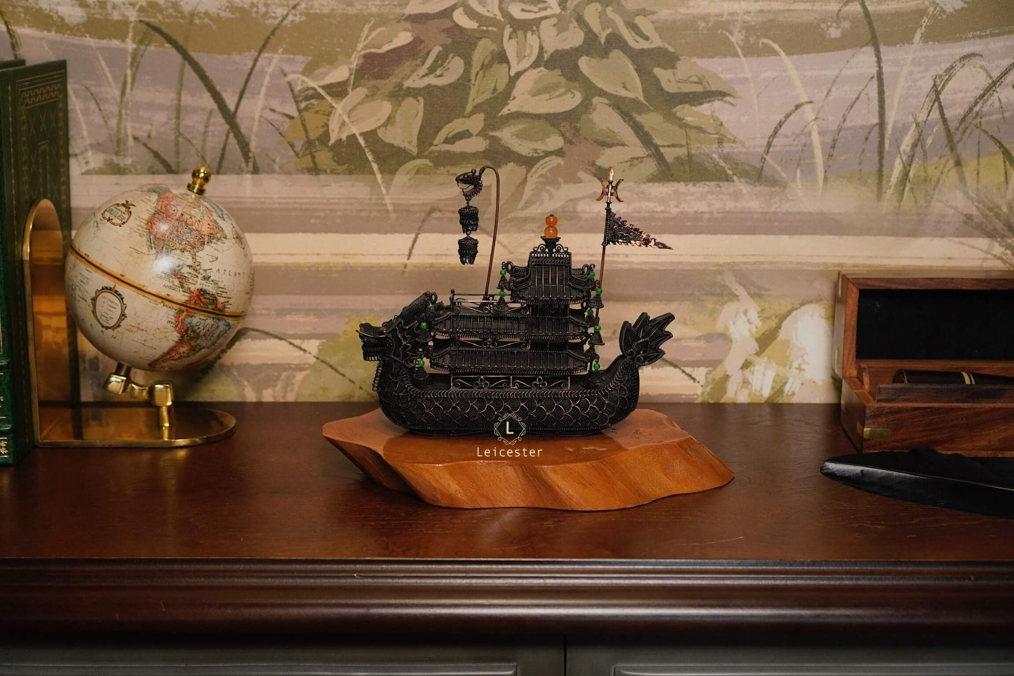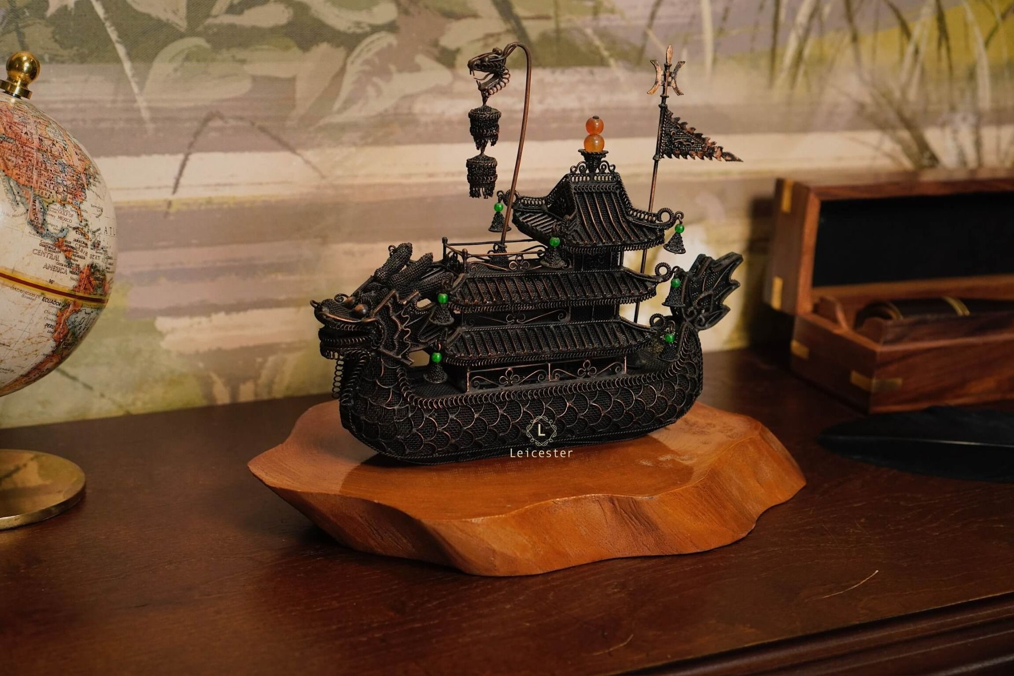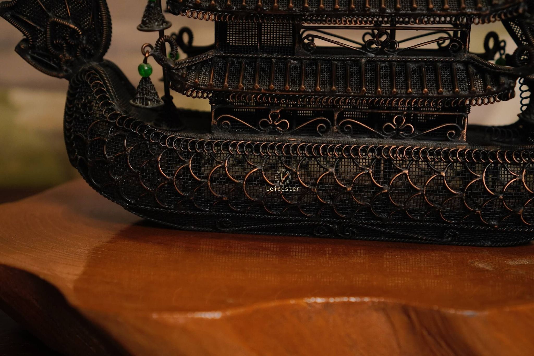 Được mô phỏng theo thuyền rồng hoặc thuyền chiến thời cổ đại Trung Quốc bằng kỹ thuật filigree - một kỹ thuật thủ công truyền thống dùng sợi kim loại rất mảnh uốn lại, sau đó hàn dính với nhau để tạo thành hình hoa văn tinh xảo mong muốn.