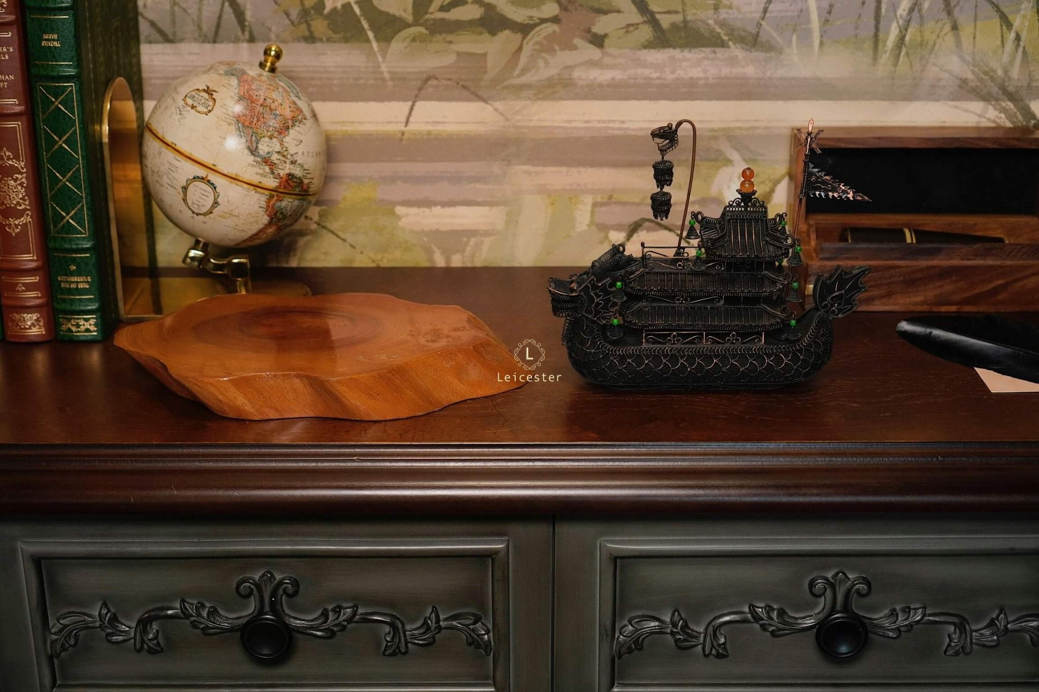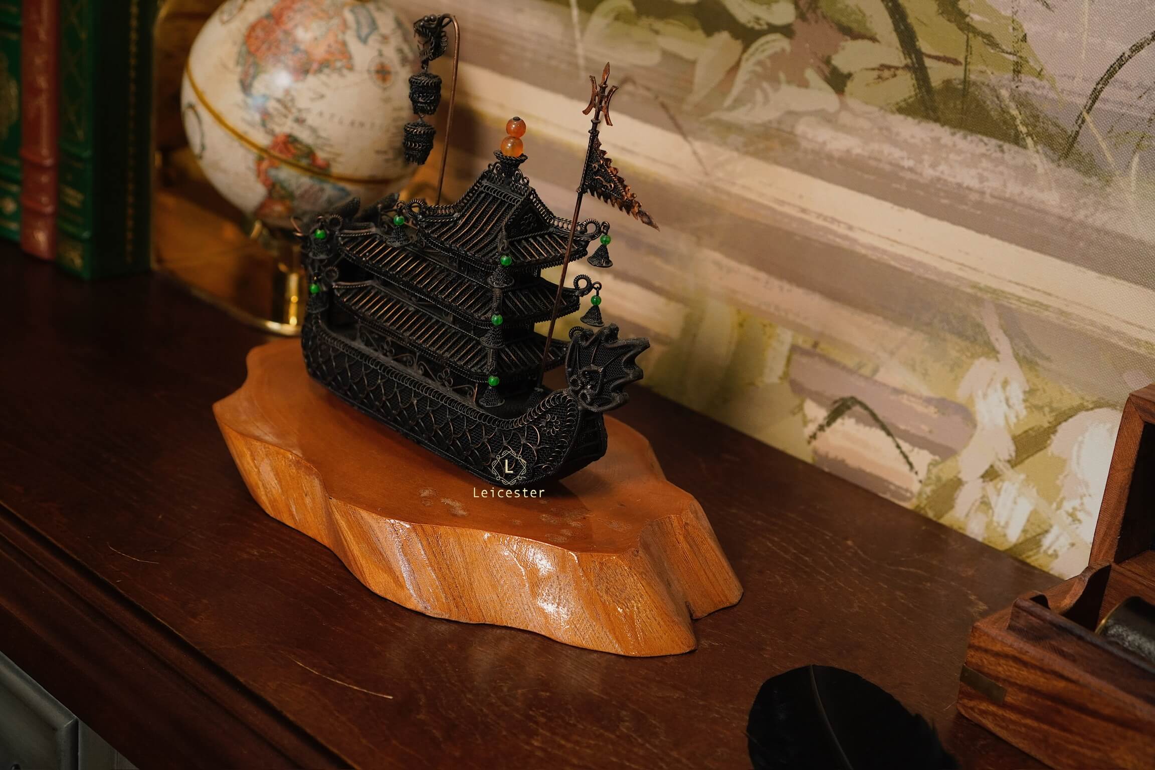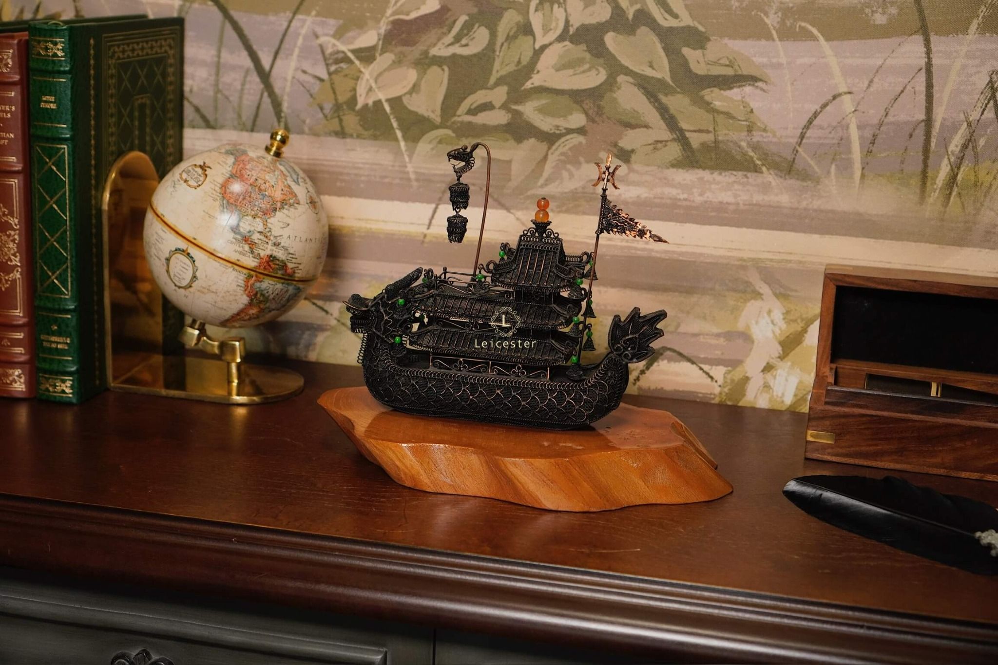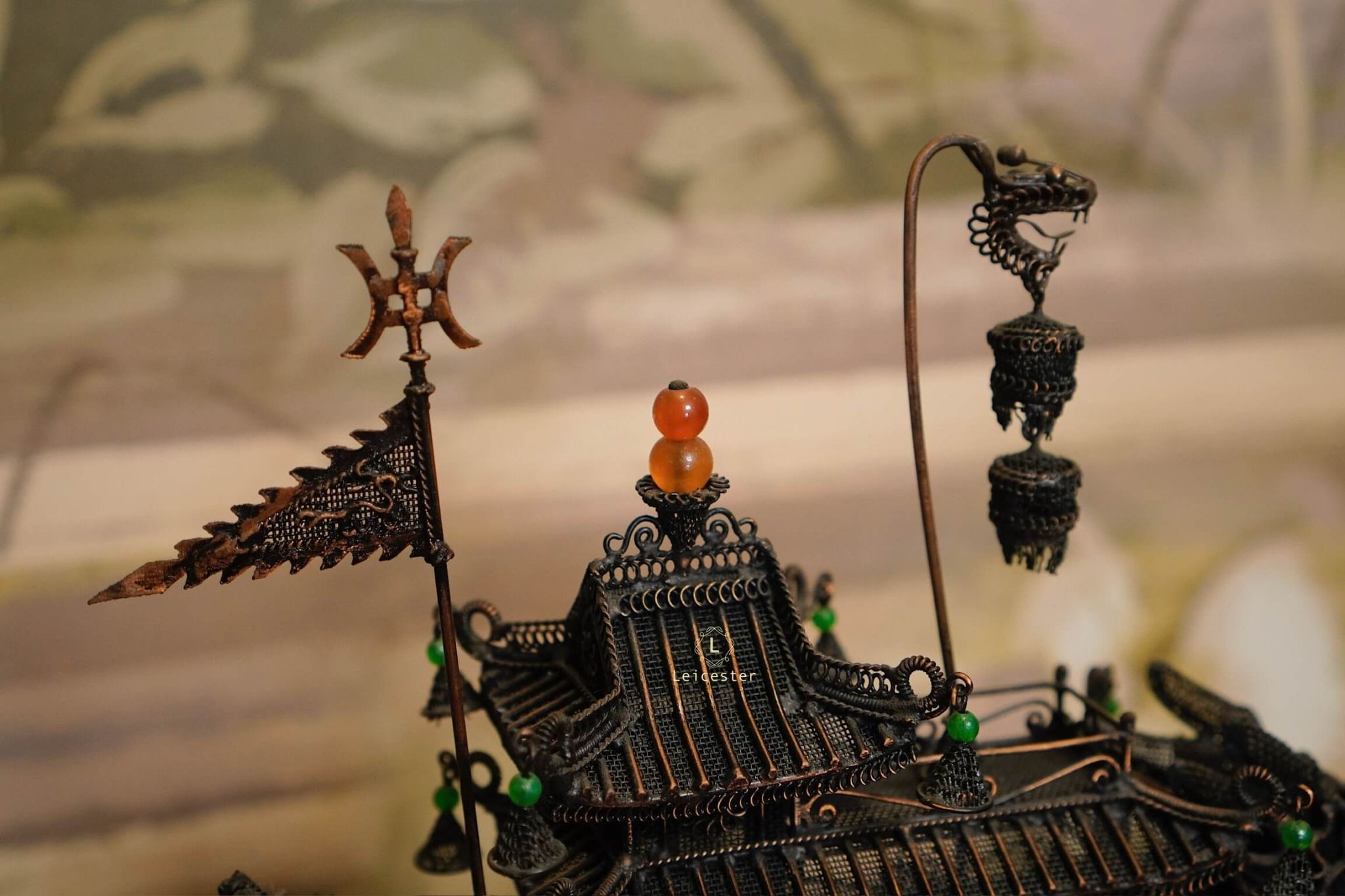 Được mô phỏng theo thuyền rồng hoặc thuyền chiến thời cổ đại Trung Quốc bằng kỹ thuật filigree - một kỹ thuật thủ công truyền thống dùng sợi kim loại rất mảnh uốn lại, sau đó hàn dính với nhau để tạo thành hình hoa văn tinh xảo mong muốn.