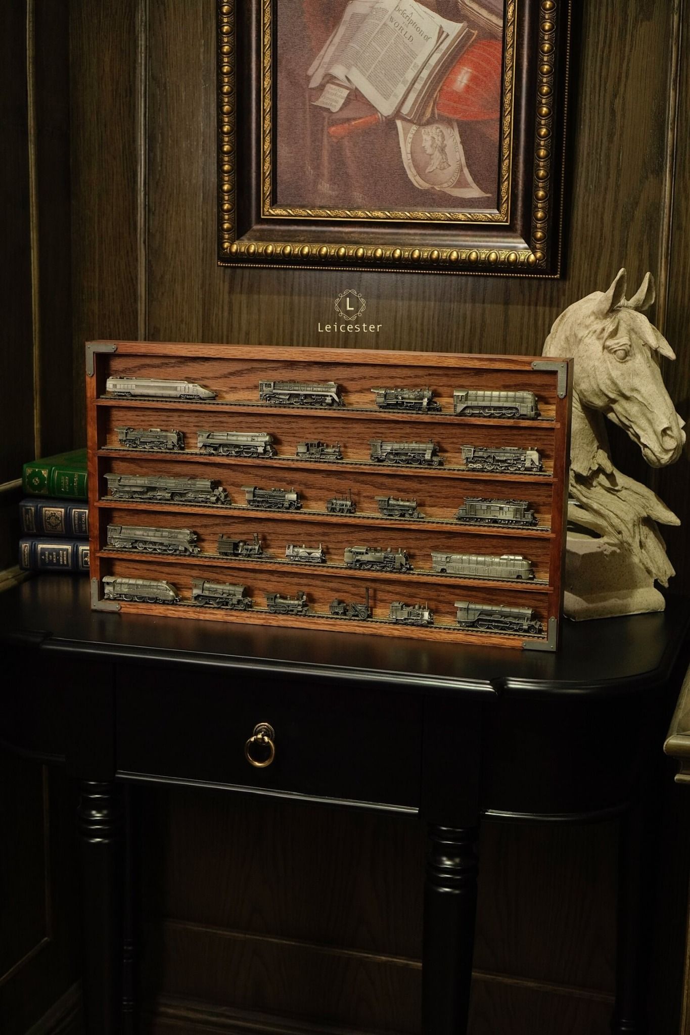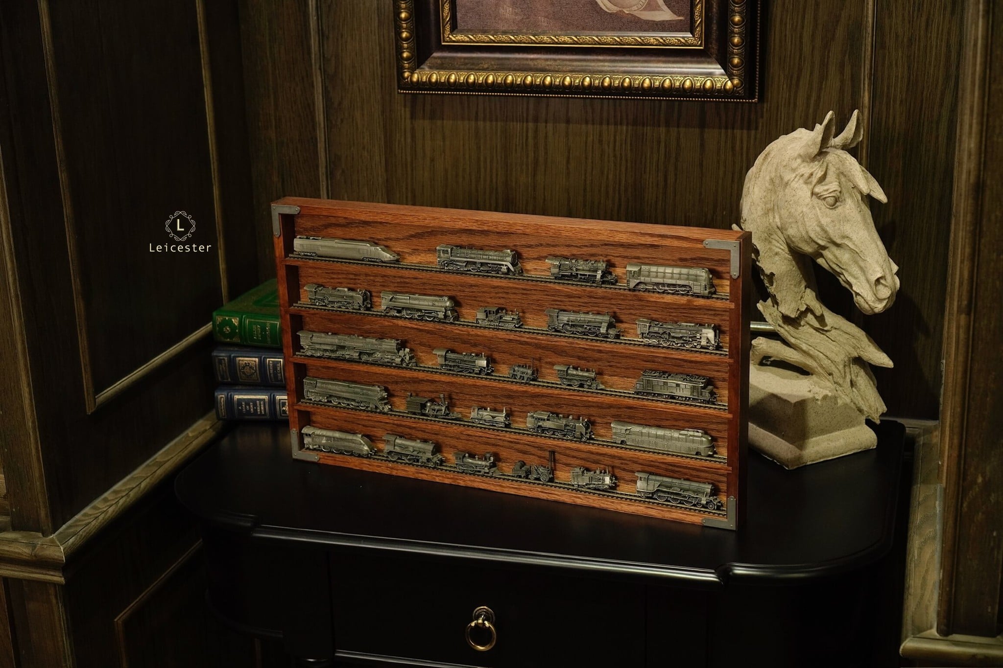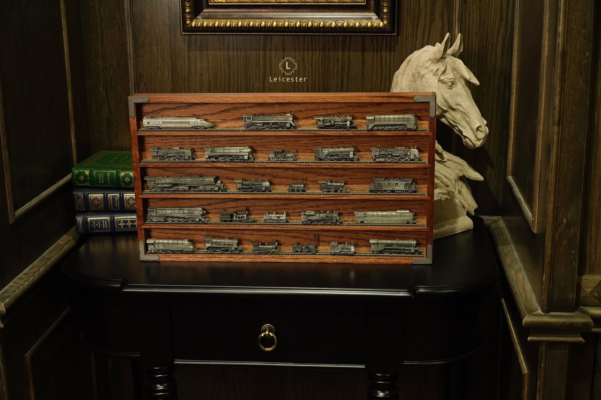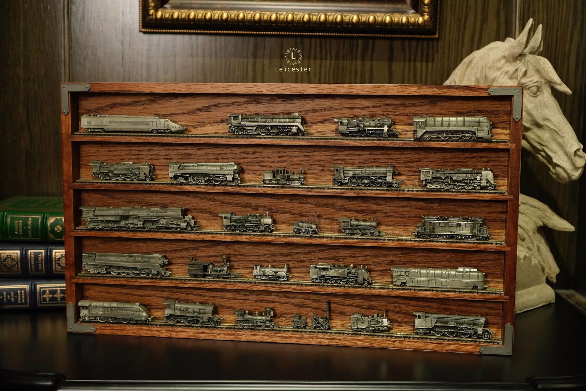 Bao gồm 1 kệ và 25 mô hình xe lửa