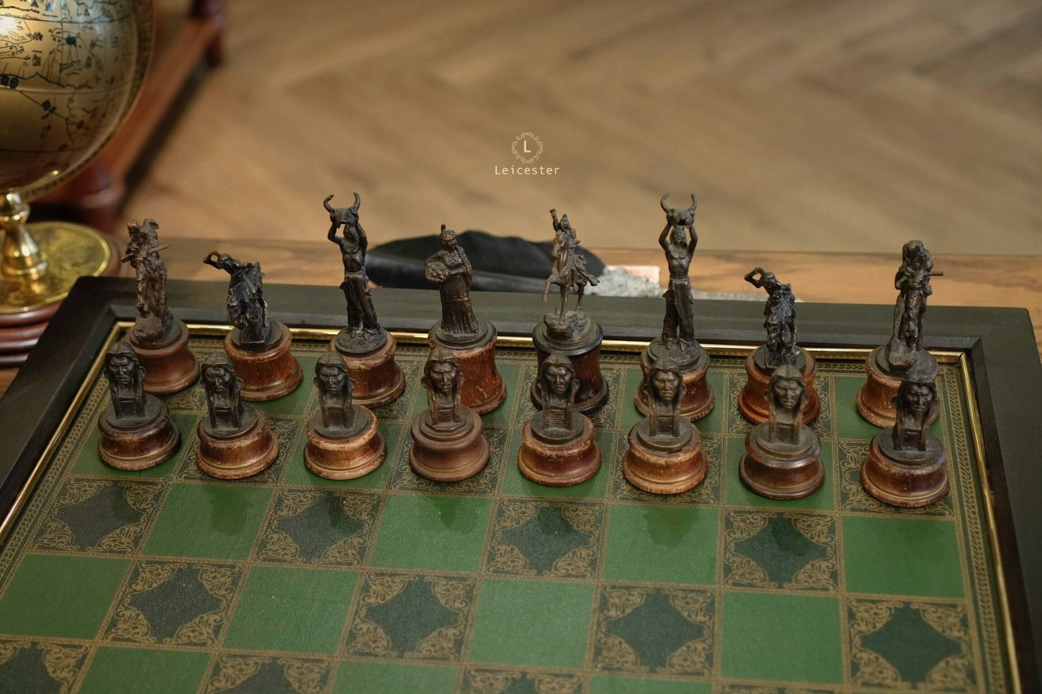 - Bàn cờ: Gỗ, mặt bàn da, chi tiết dát vàng