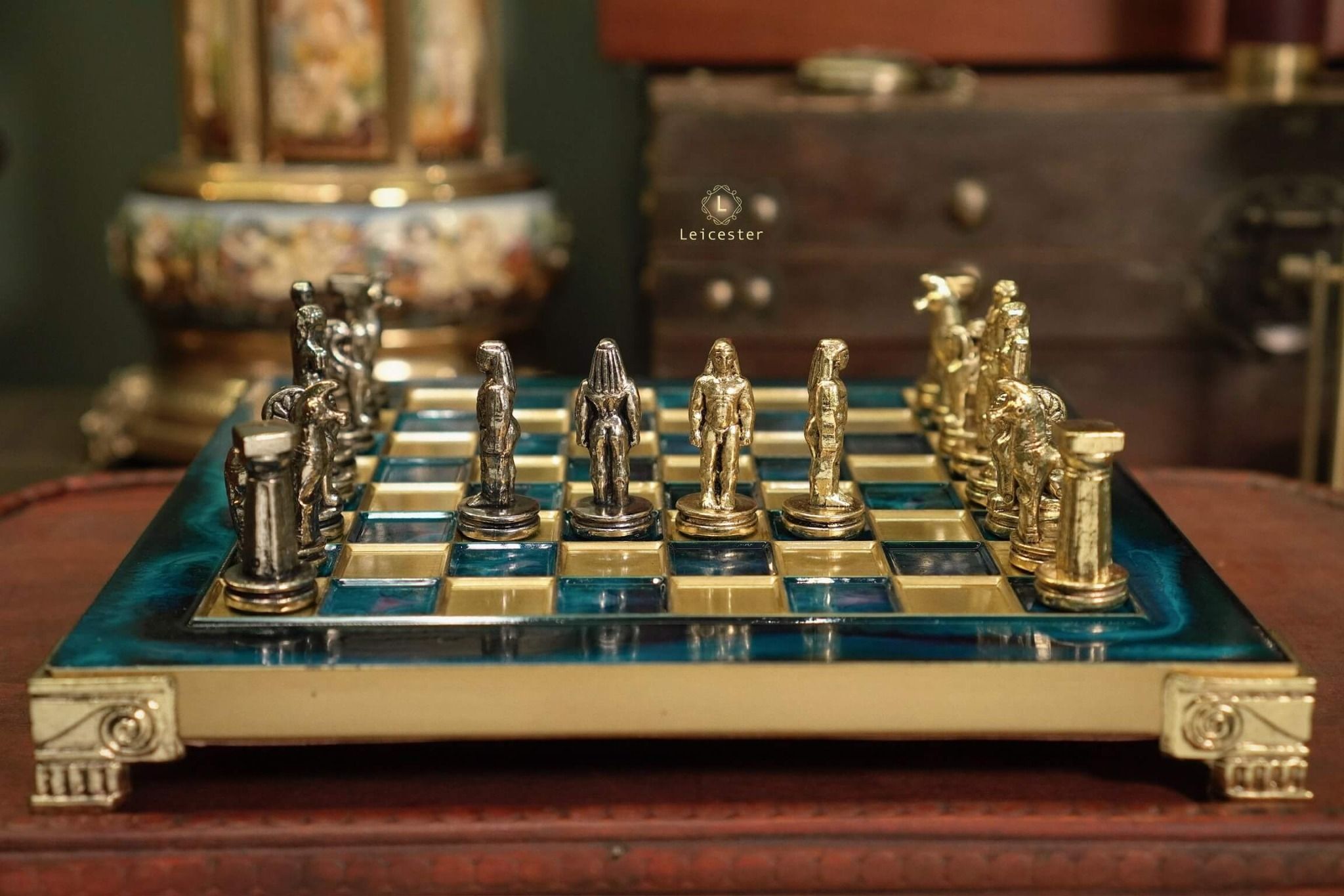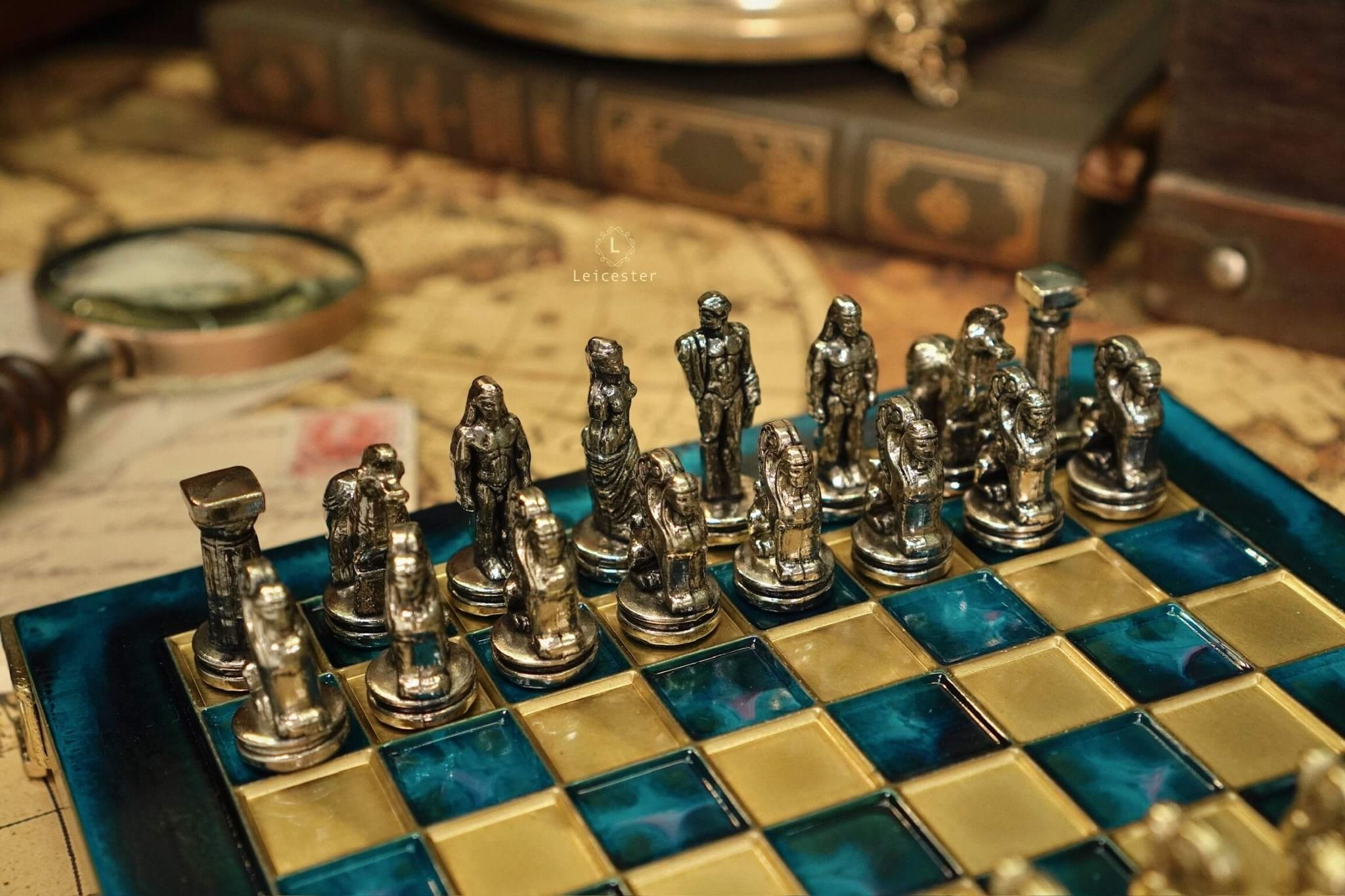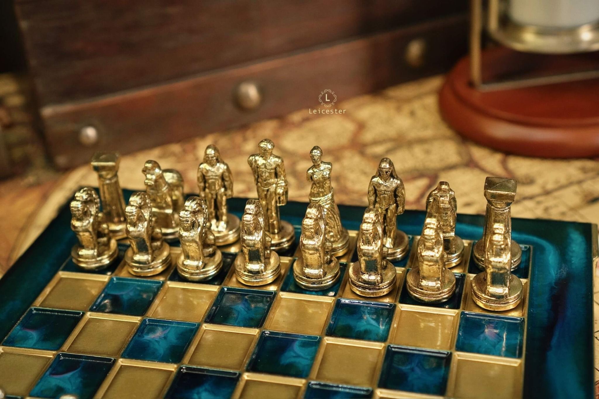 Bộ cờ vua đã tái hiện lịch sử Hy Lạp cổ đại, tất cả đều được sản xuất độc quyền bởi Manopoulos S.A. bao gồm những nhân vật vĩ đại như:
