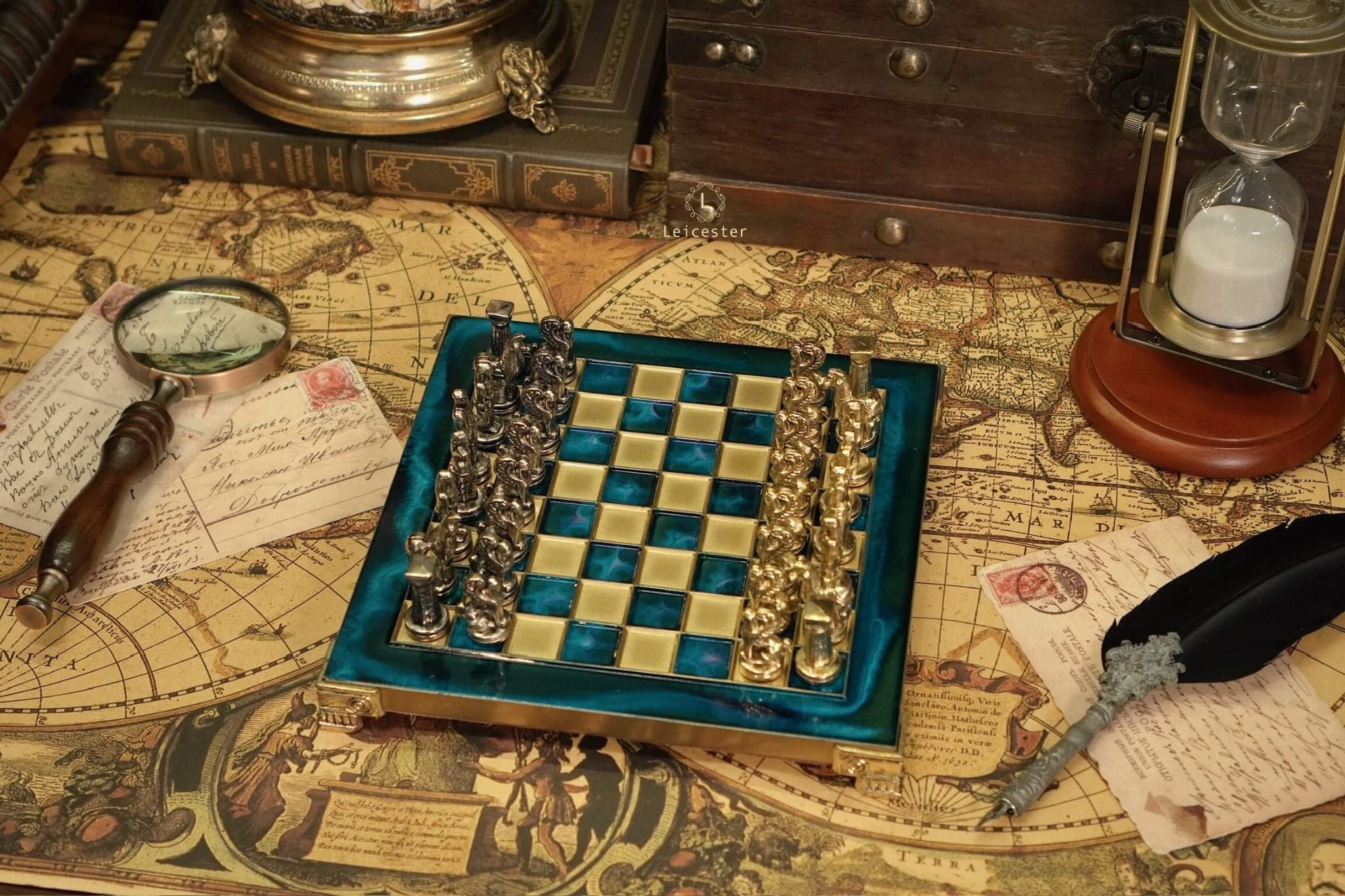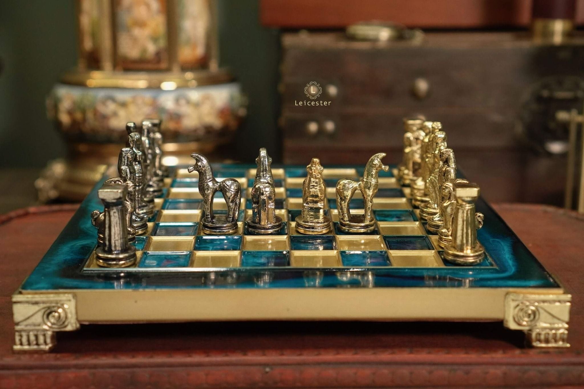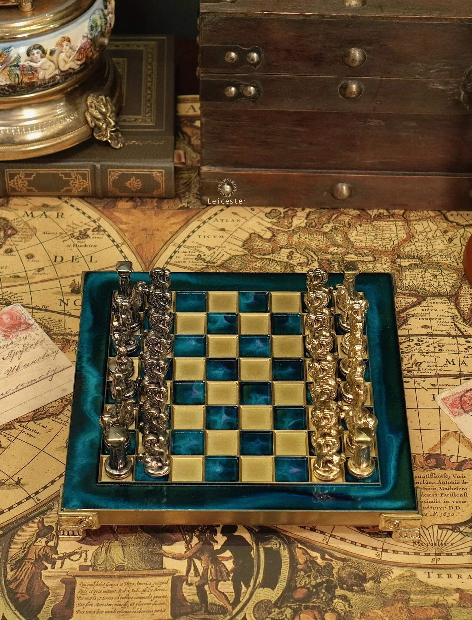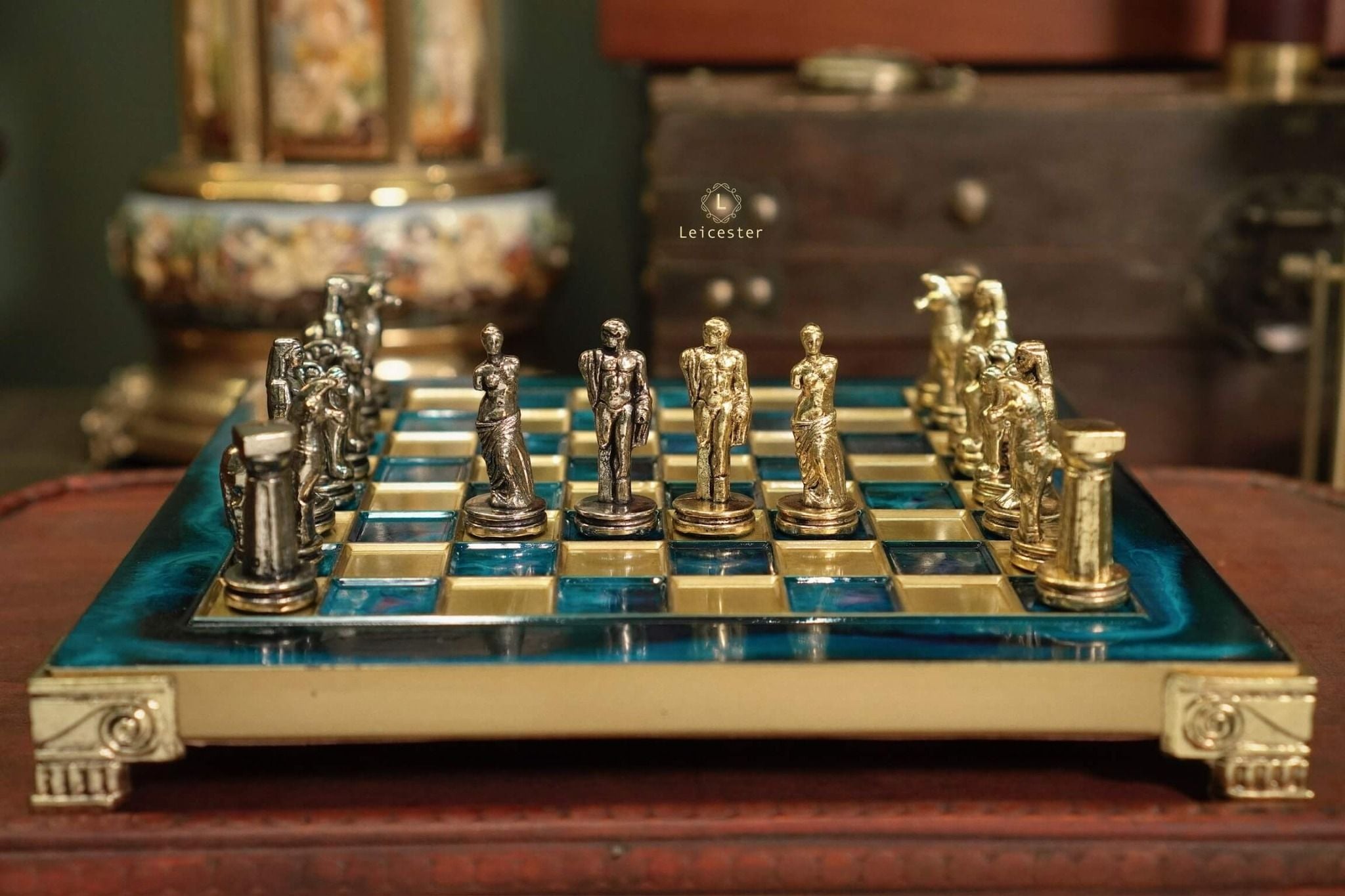 Bộ cờ vua đã tái hiện lịch sử Hy Lạp cổ đại, tất cả đều được sản xuất độc quyền bởi Manopoulos S.A. bao gồm những nhân vật vĩ đại như: