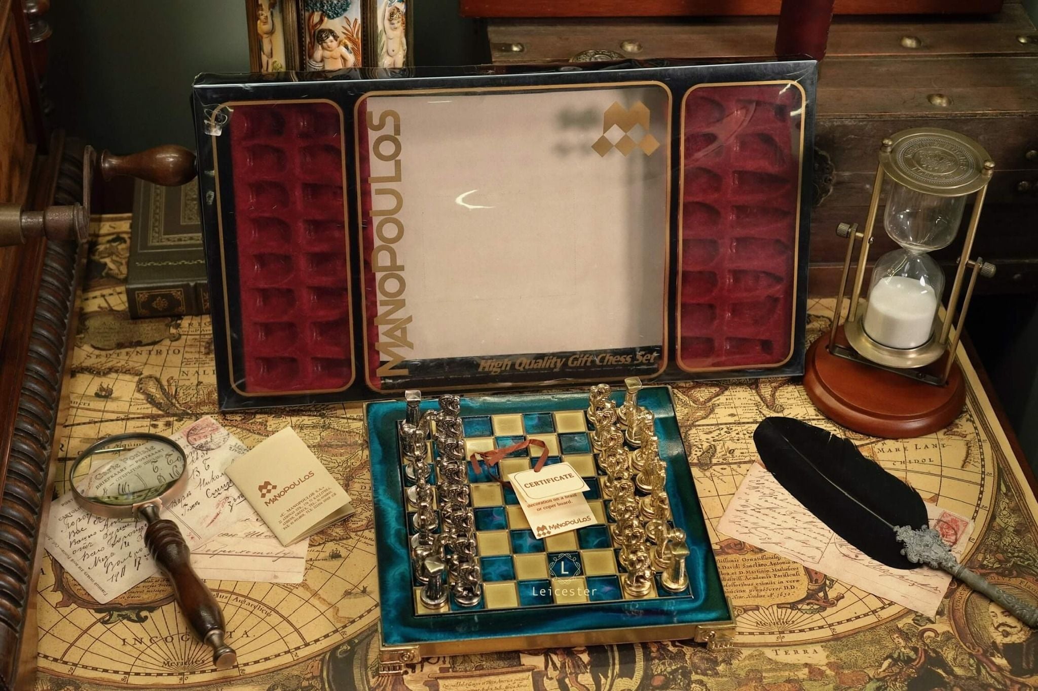 Manopoulos là một công ty danh tiếng tại Hy Lạp, chuyên chế tác thủ công các bộ cờ độc quyền có tính nghệ thuật lịch sử Hy Lạp và có những bộ cờ được sản xuất với số lượng giới hạn.