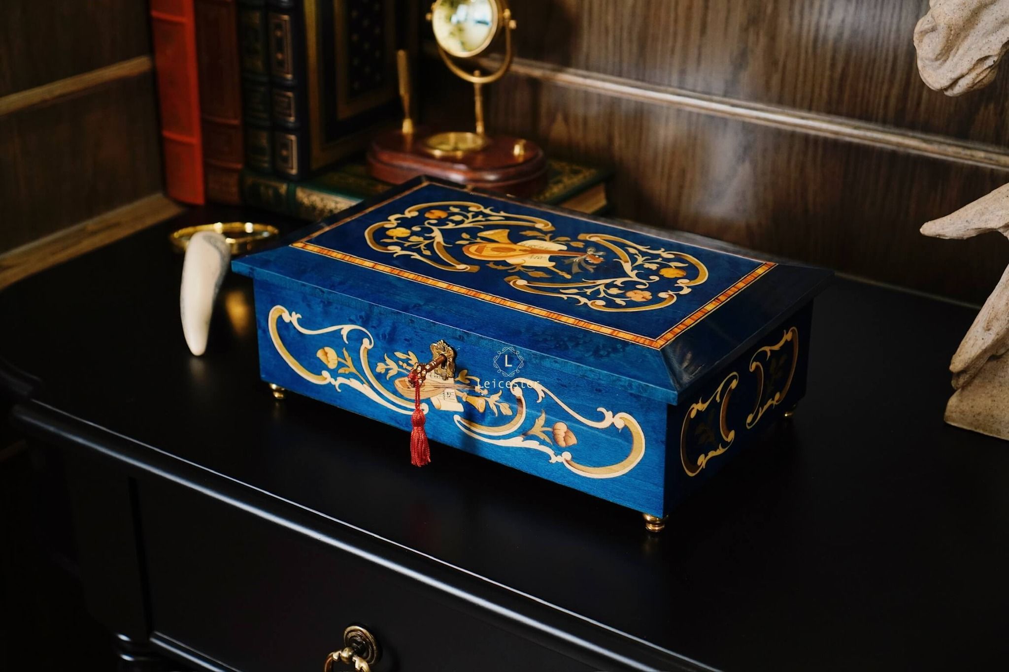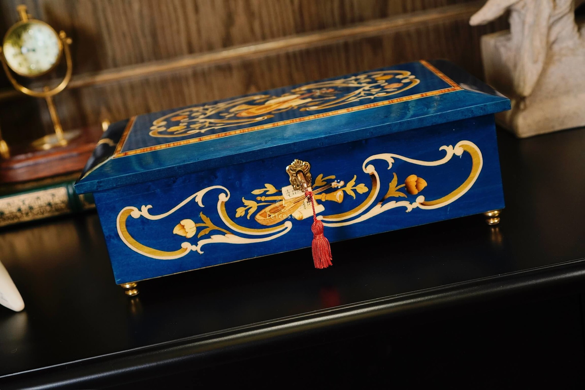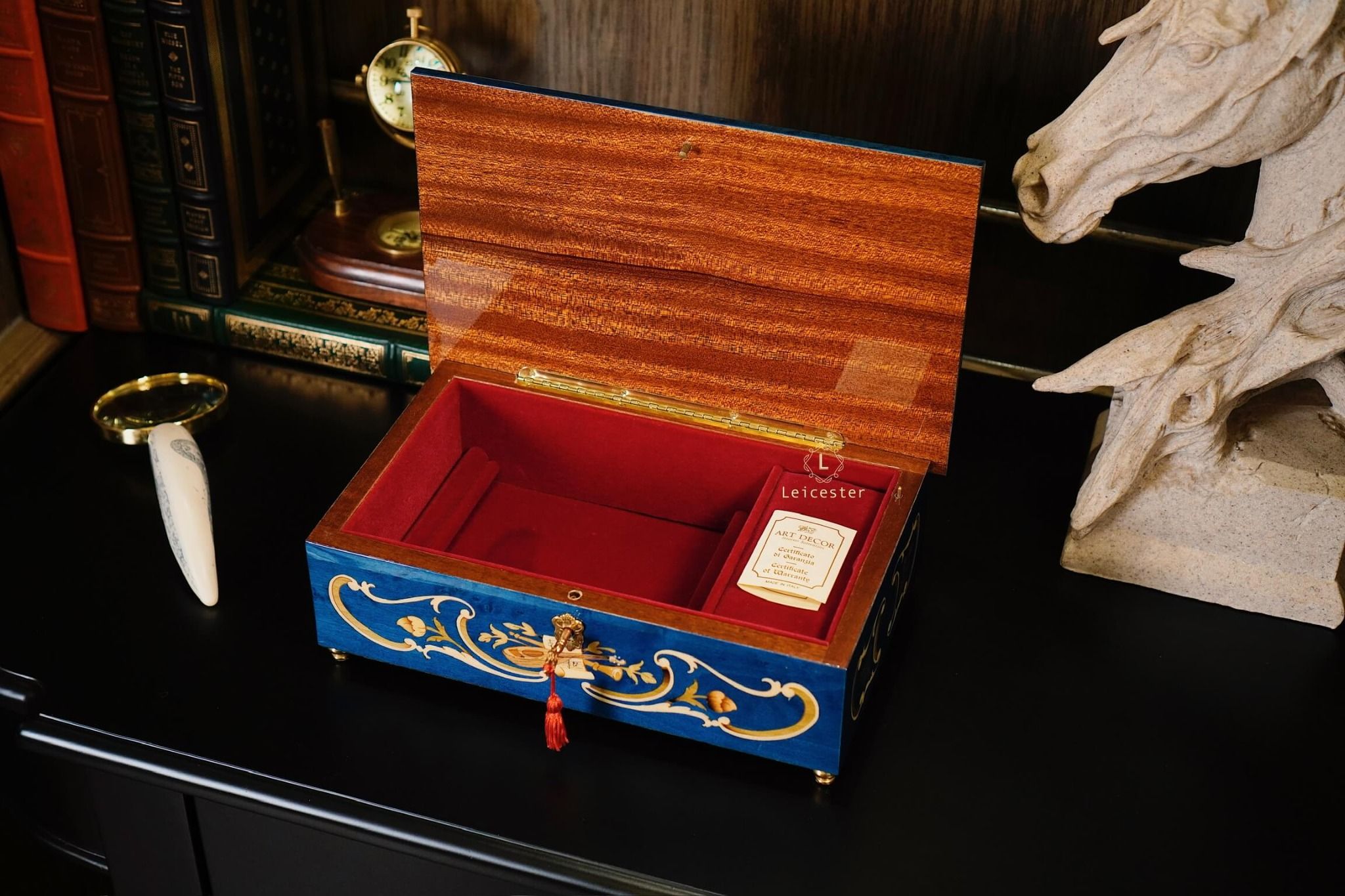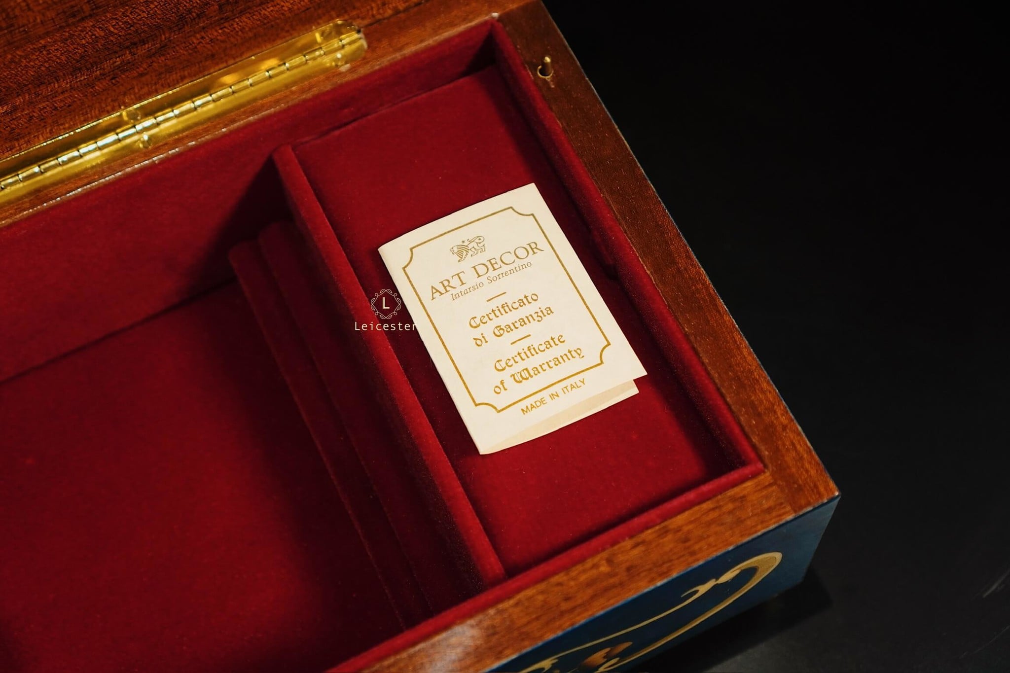 Chất liệu: Gỗ khảm Italy, bên trong lót nhung