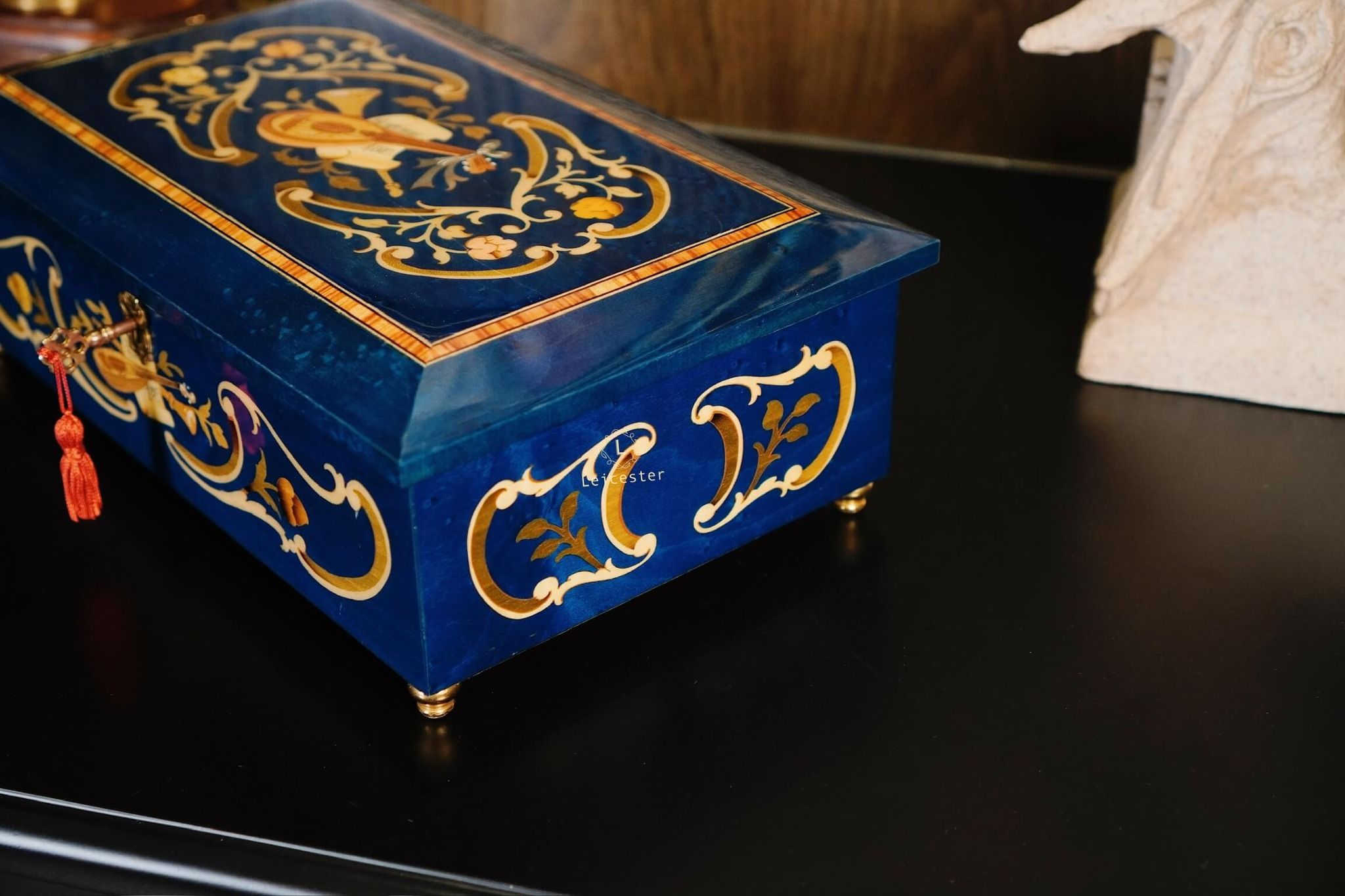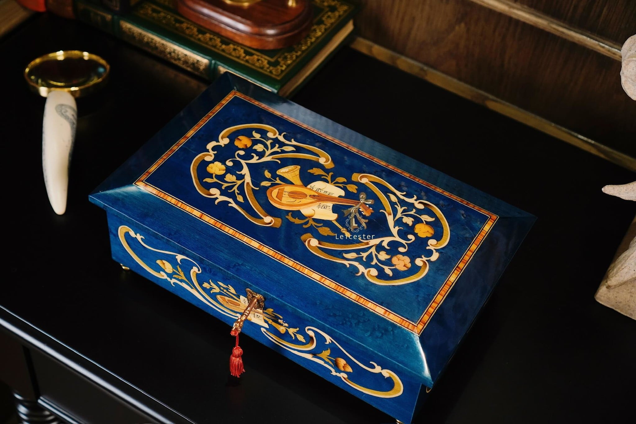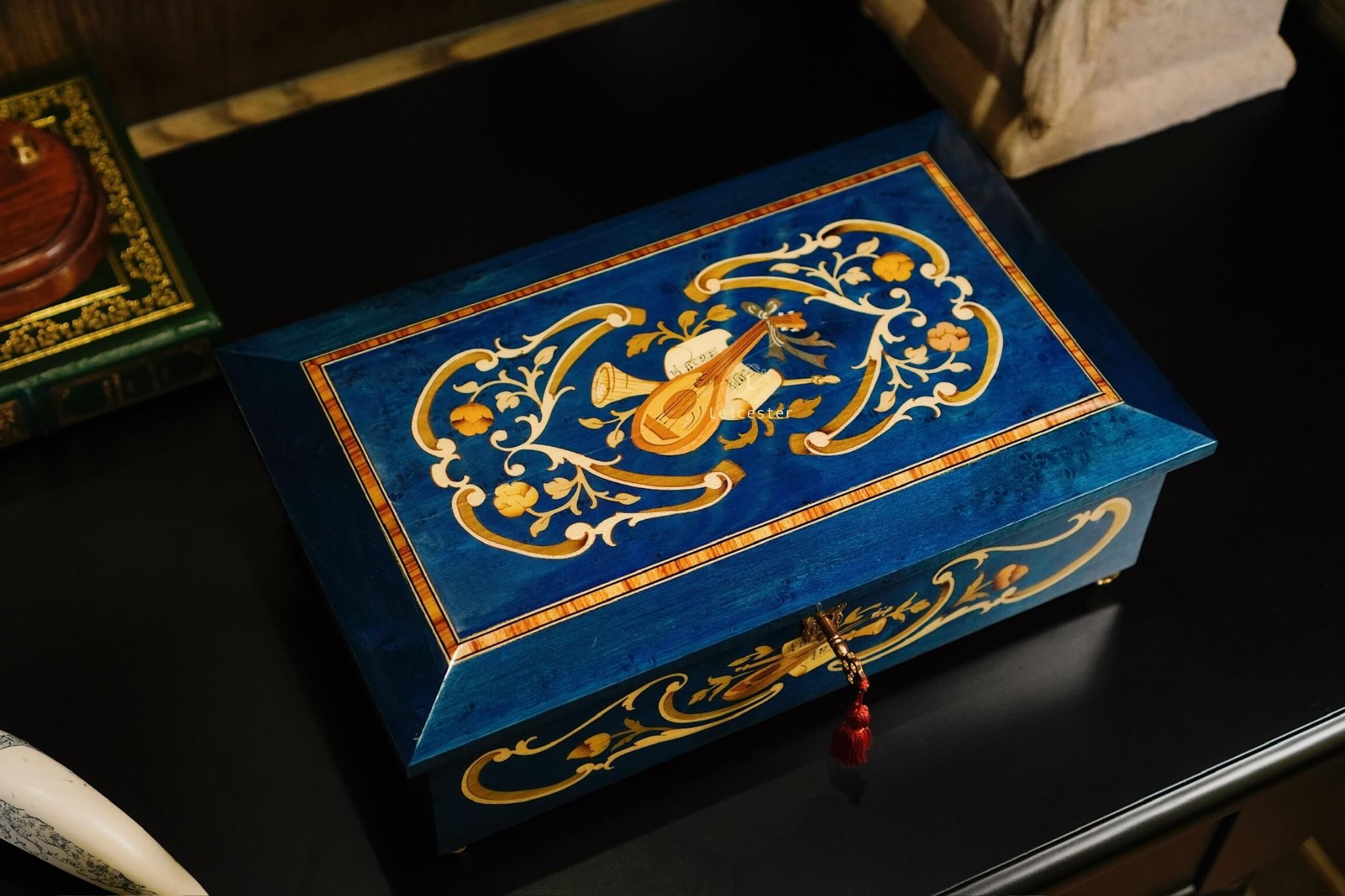 Chất liệu: Gỗ khảm Italy, bên trong lót nhung