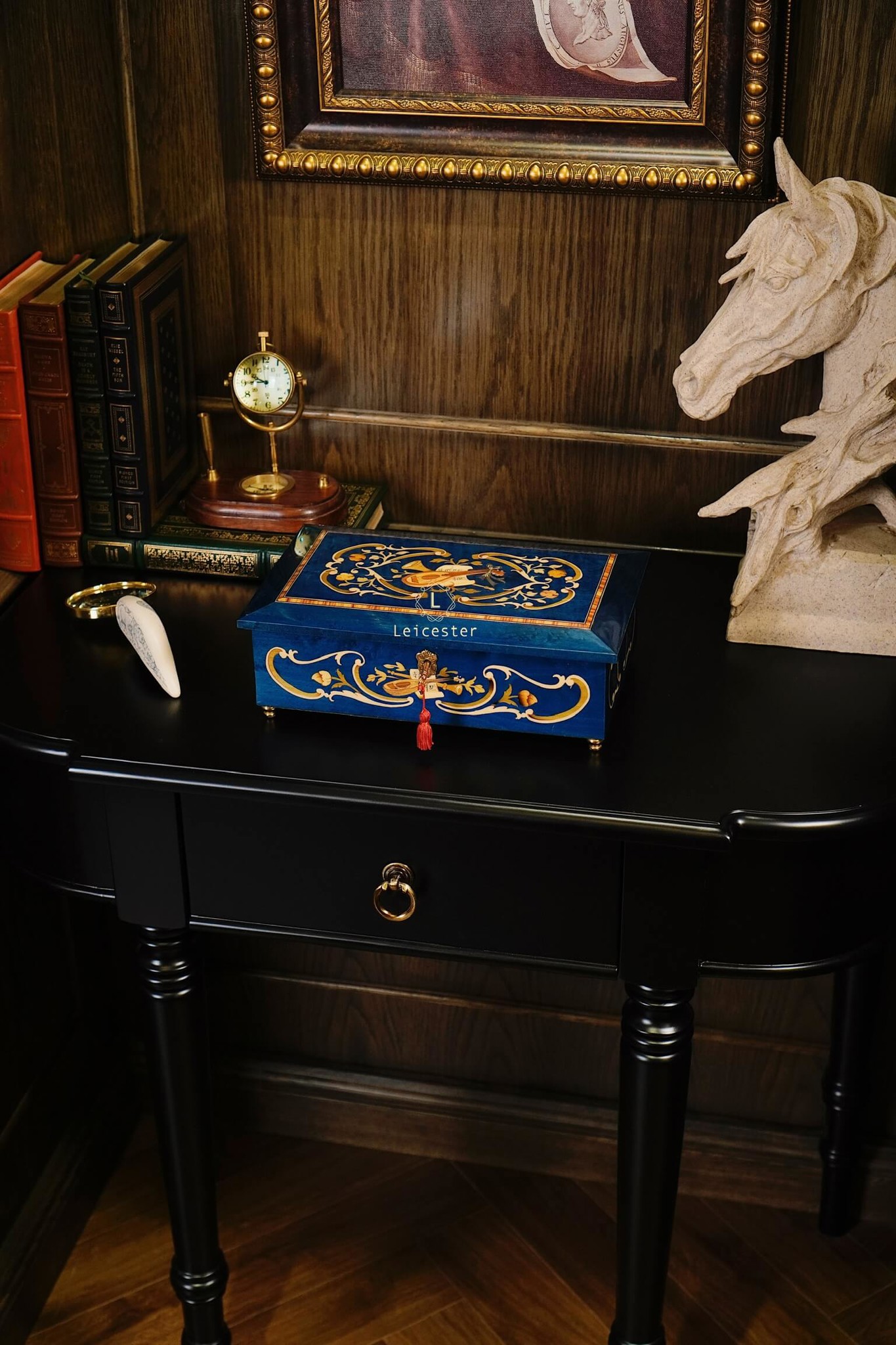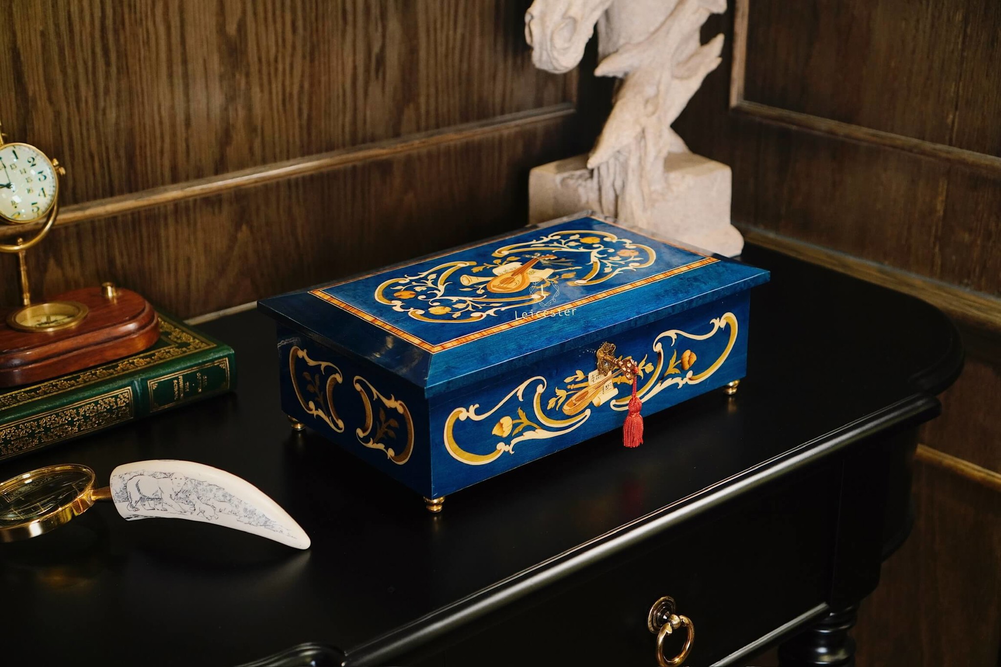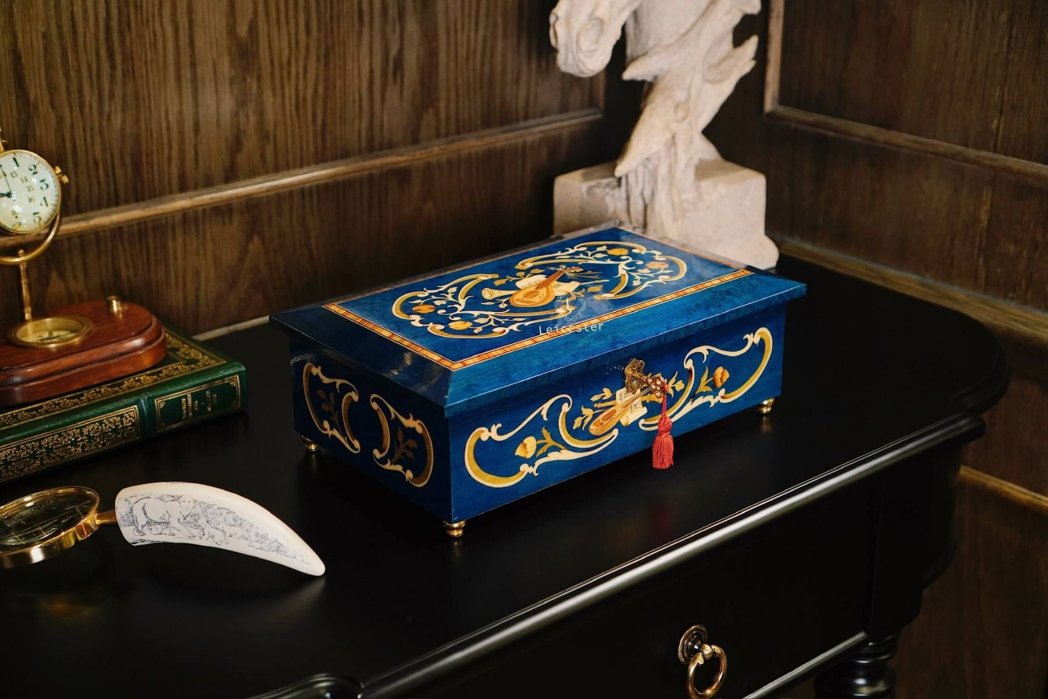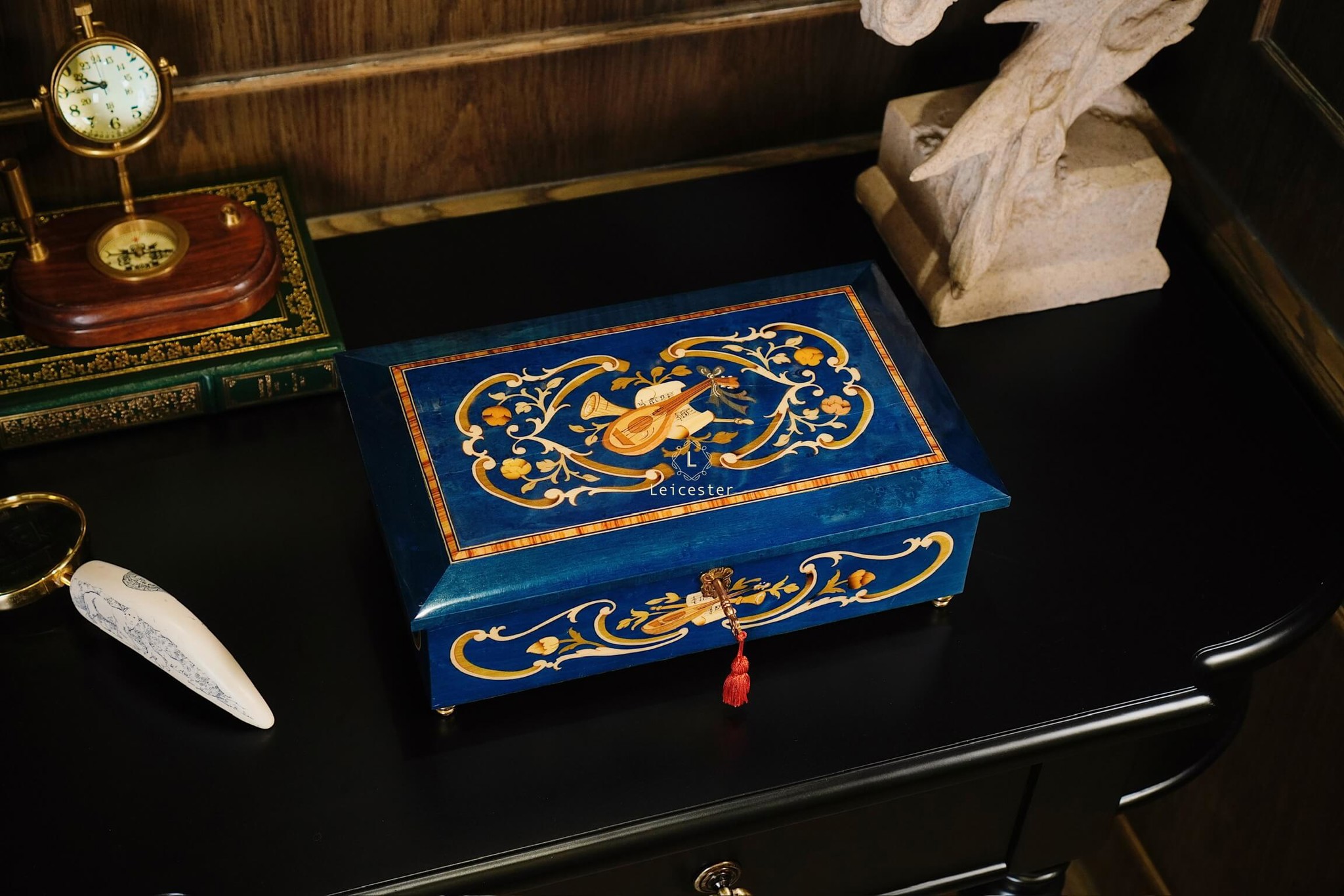 Chất liệu: Gỗ khảm Italy, bên trong lót nhung