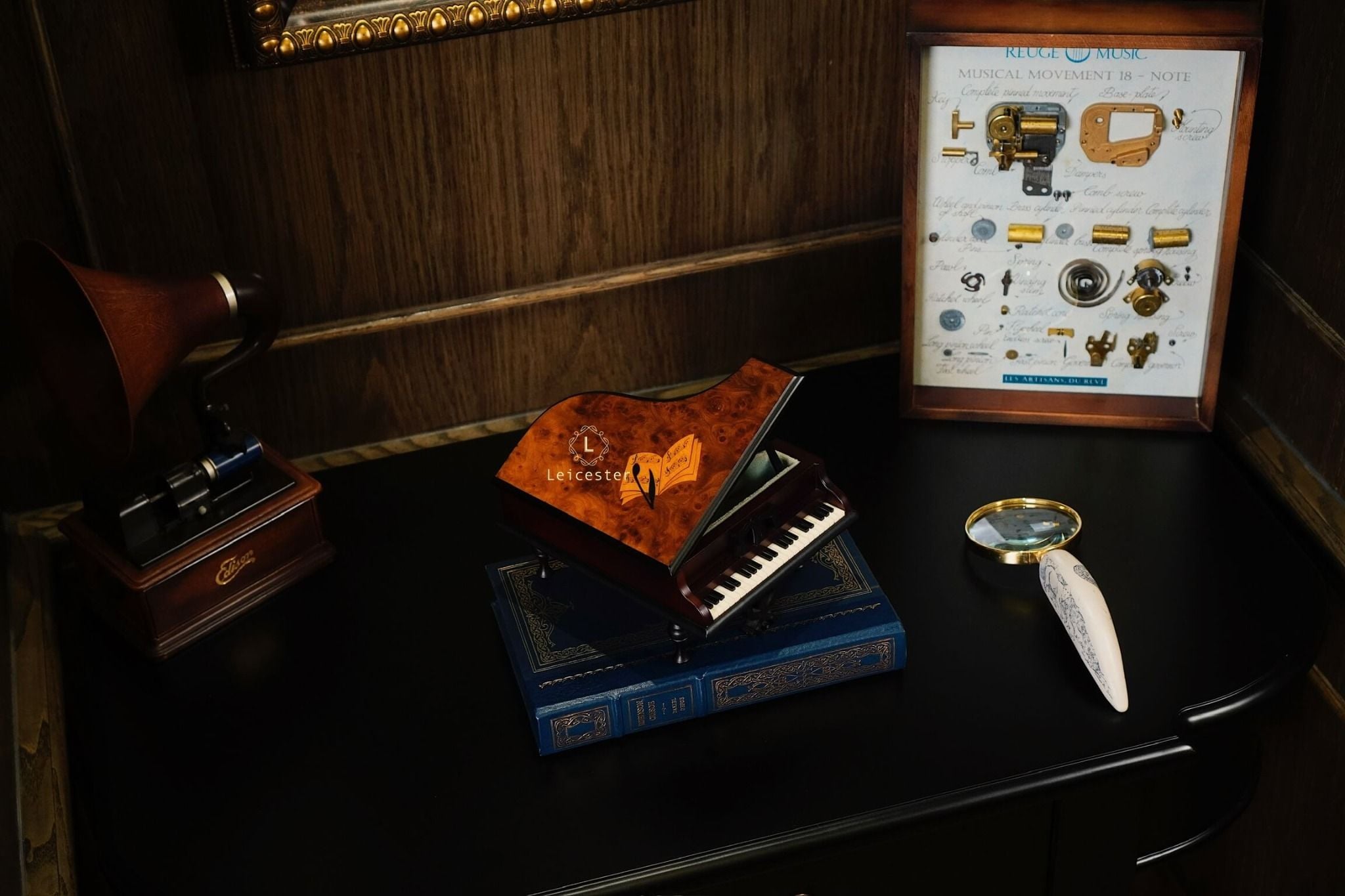 Được chế tác bởi bàn tay cẩn thận của những người thợ thủ công của REUGE, mỗi hộp nhạc bằng gỗ và bộ tự động phát nhạc đều bộc lộ những giai điệu mê hoặc và thế giới kỳ diệu của riêng mình.