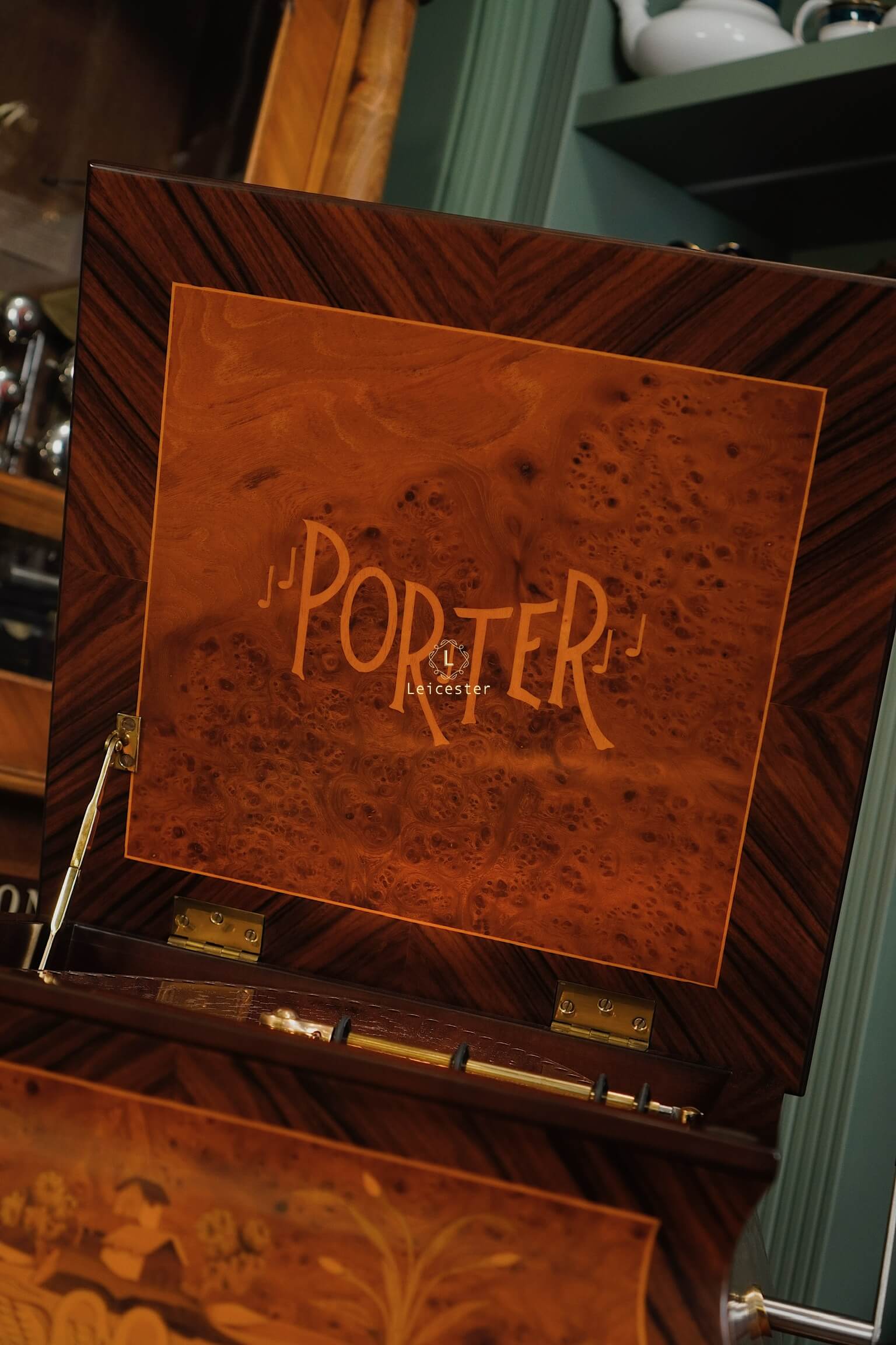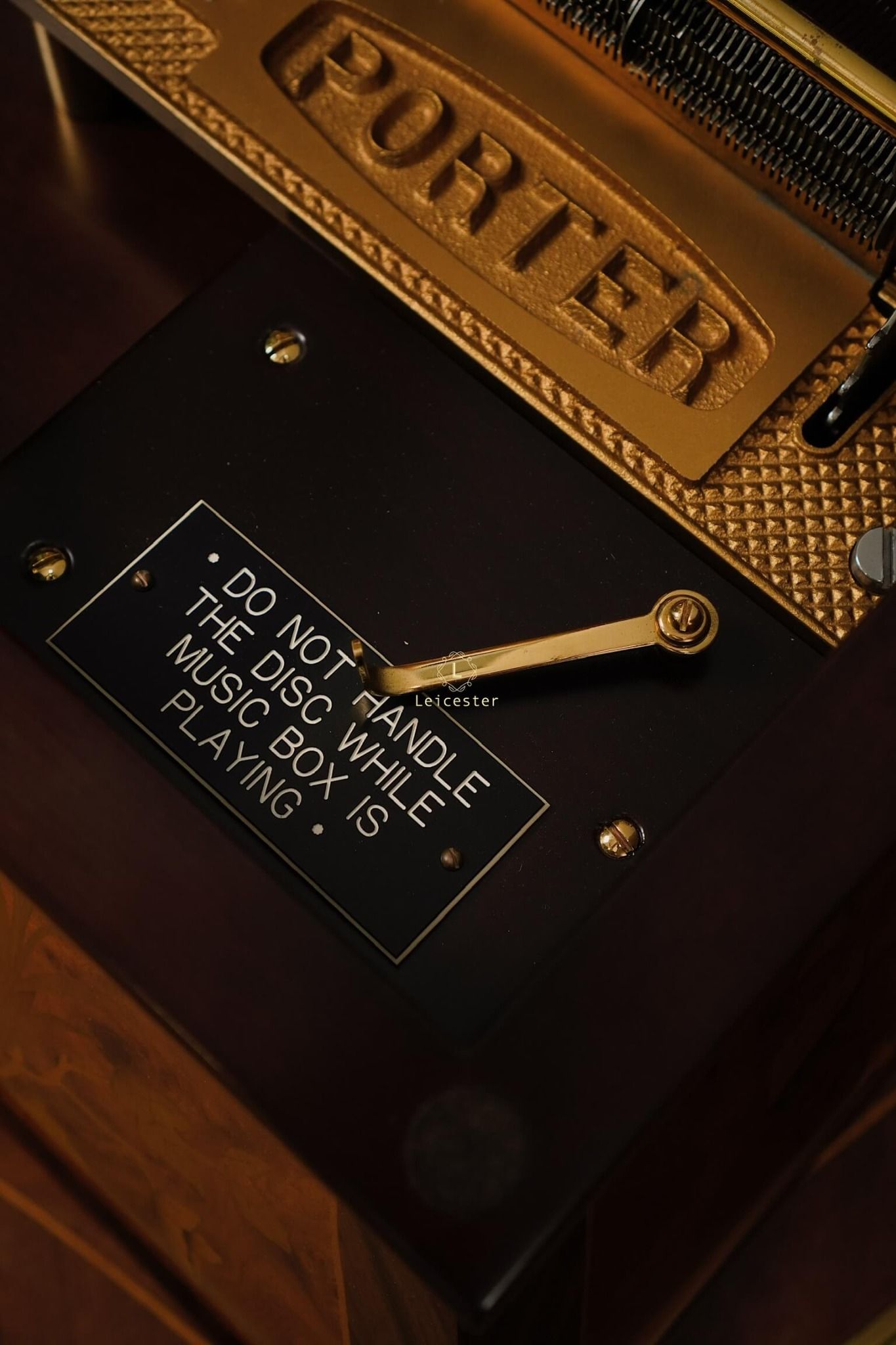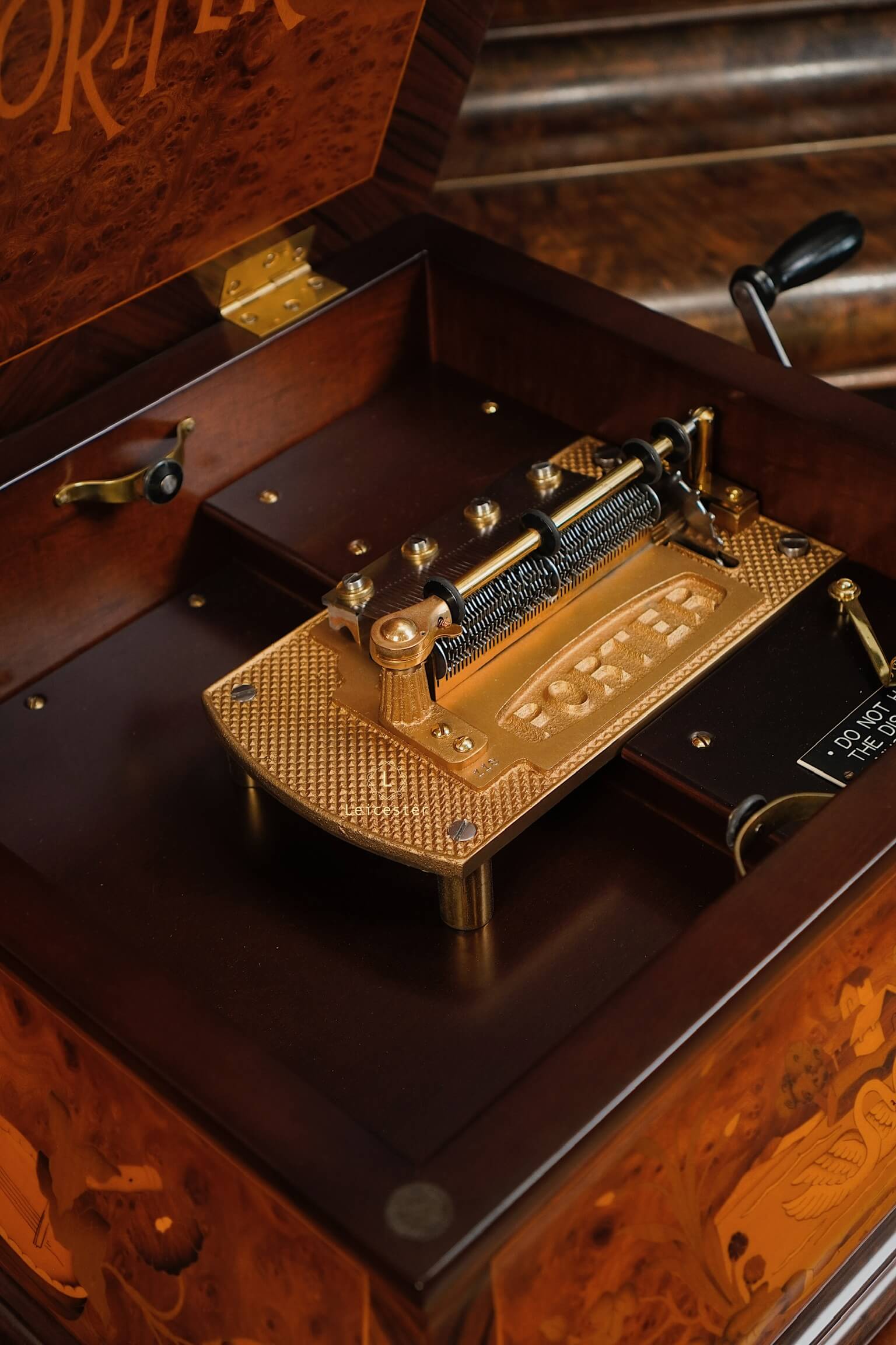 Hộp Nhạc Porter Swan Elite đây là mẫu đĩa 12/ 1/4, với hai lược nhạc 54 răng trên mỗi lược với tổng số 108 răng. Có phạm vi 5 quãng tám và sẽ phát trong hơn 15 phút khi lên gần đầy cót. Động cơ cuộn dây là loại dây quấn lò xo và được làm từ gang và bánh răng bằng đồng thau.