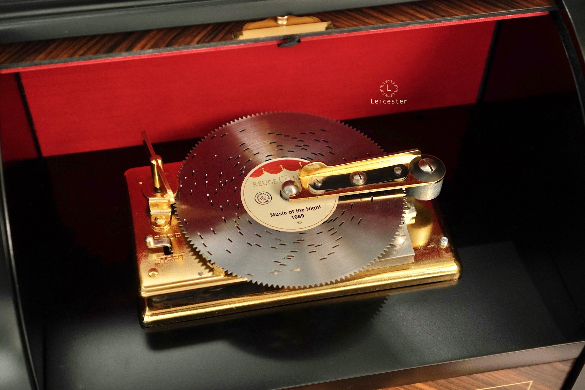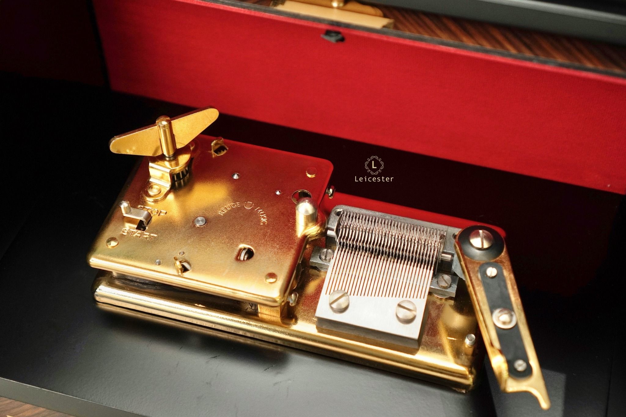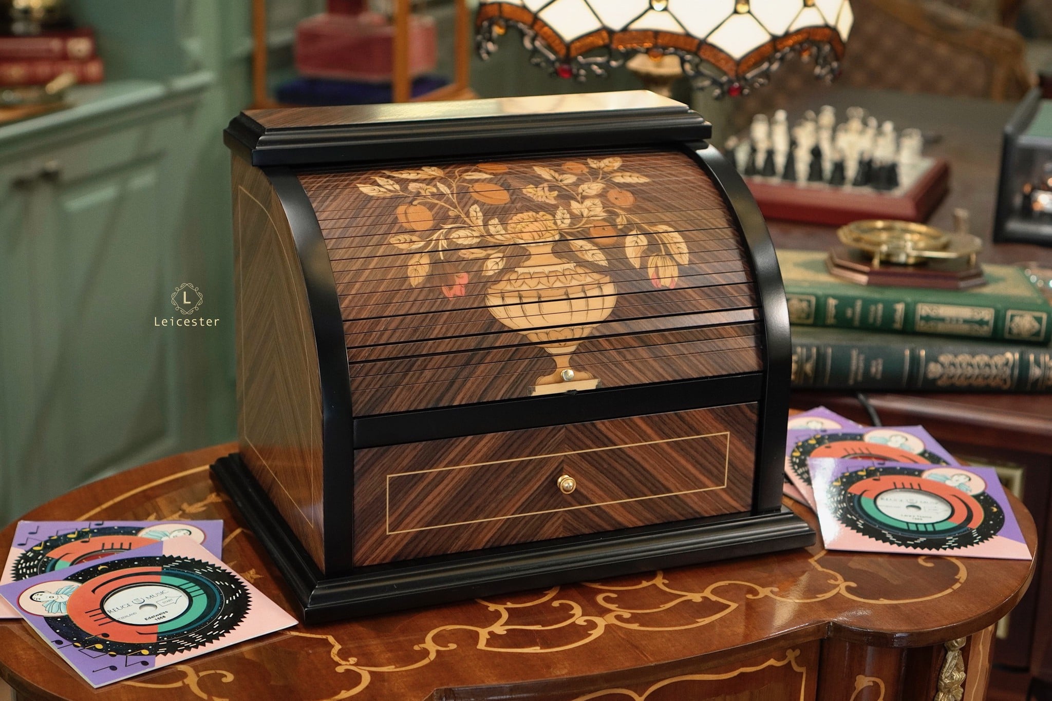 Hộp Marquetry sản xuất tại Ý, hộp nhạc đĩa sản xuất tại Thụy Sĩ.