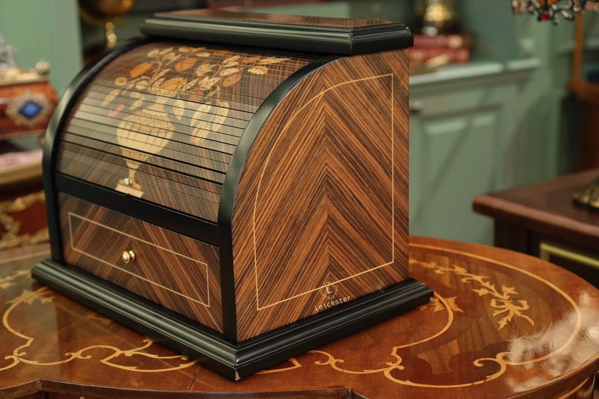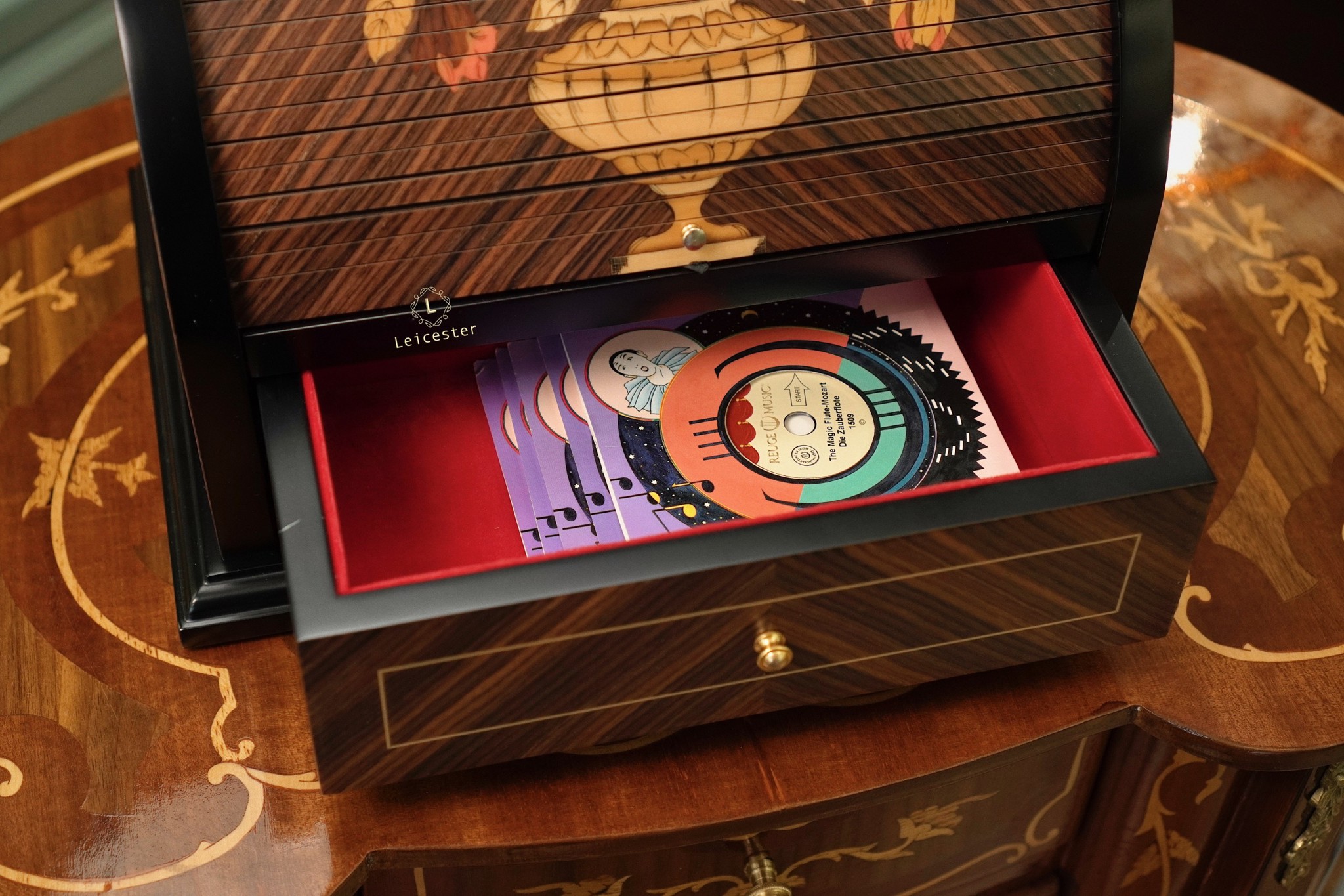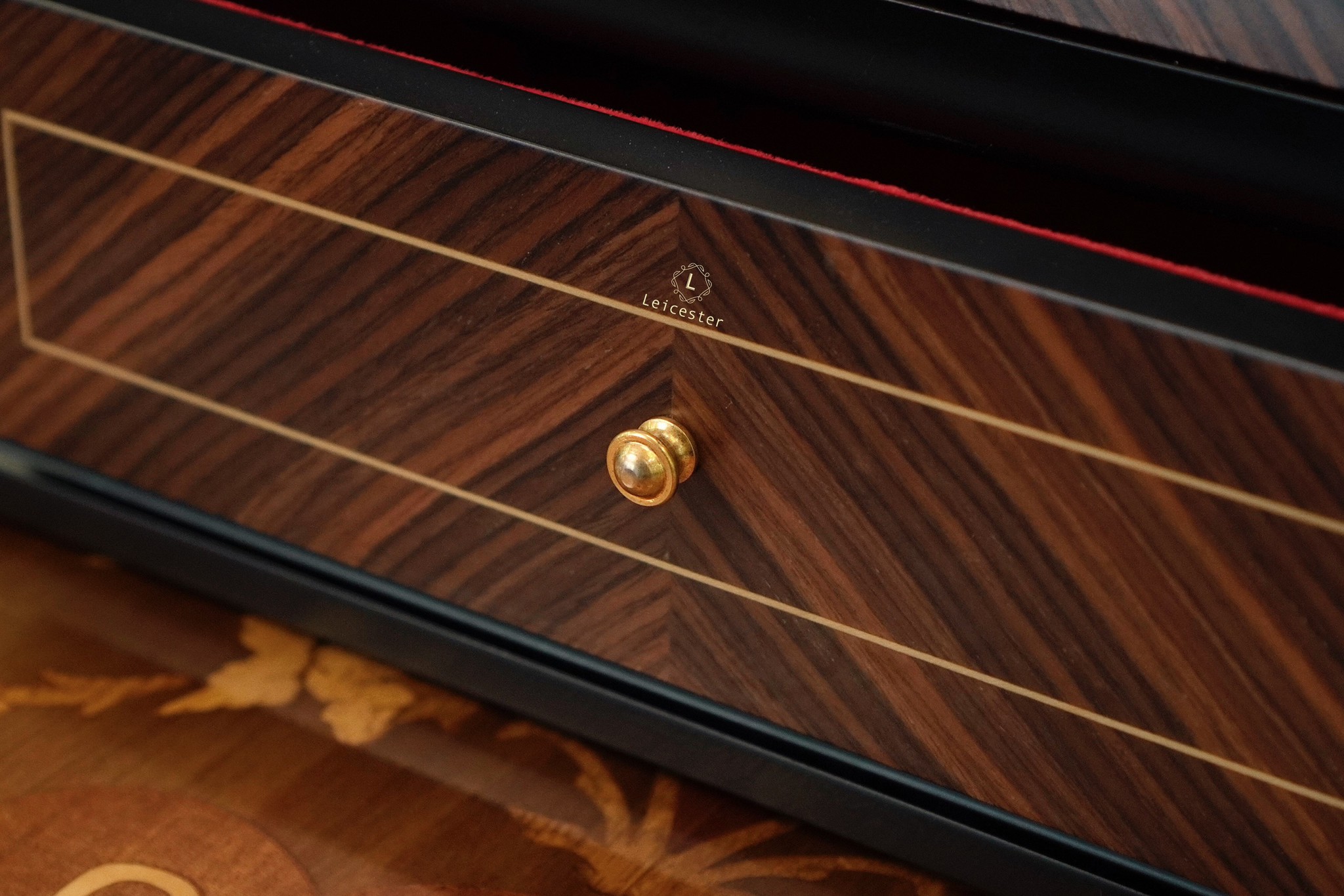 Hộp Marquetry sản xuất tại Ý, hộp nhạc đĩa sản xuất tại Thụy Sĩ.