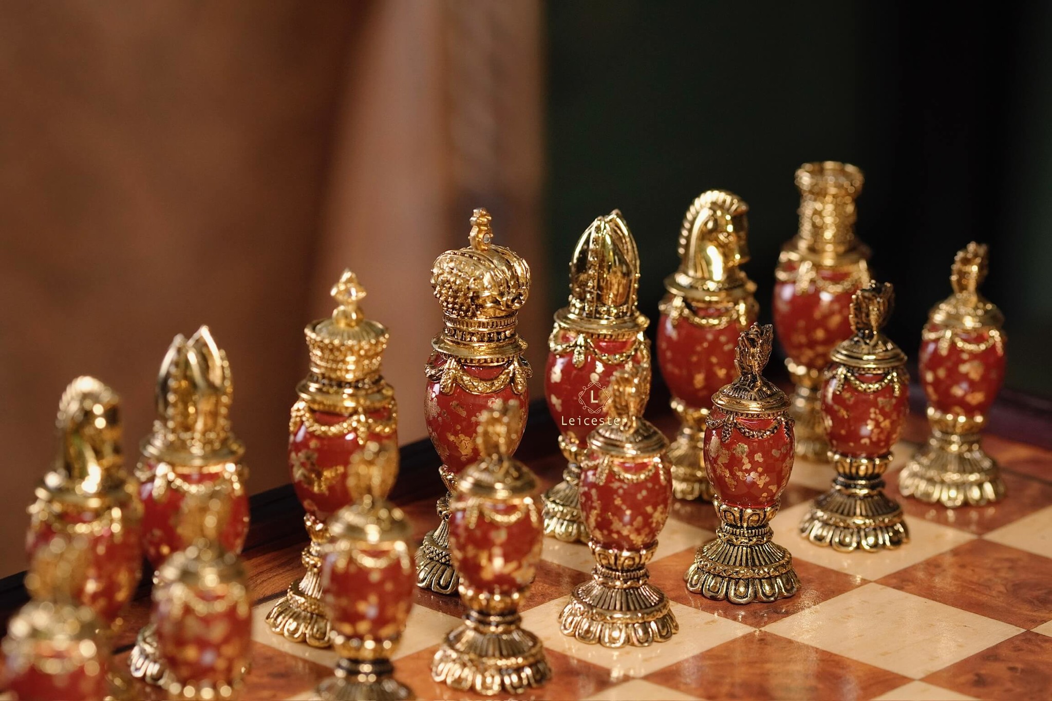 Bộ cờ vua tuyệt đẹp này được lấy cảm hứng từ quả trứng Farberge, được tạo ra dành cho House of Faberge và sau đó được phân phối độc quyền bởi Franklin Mint.