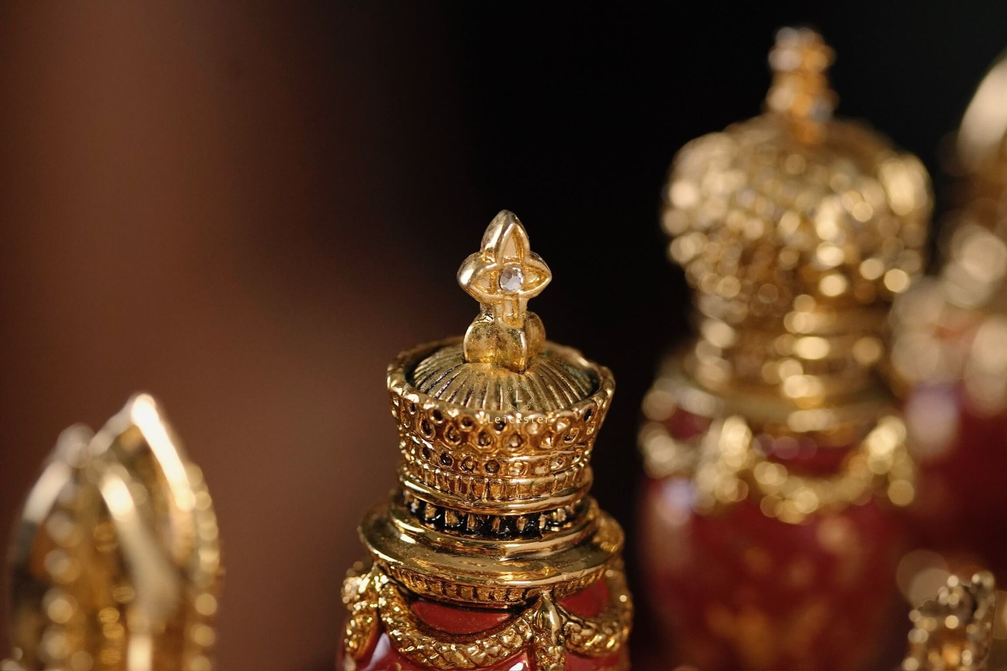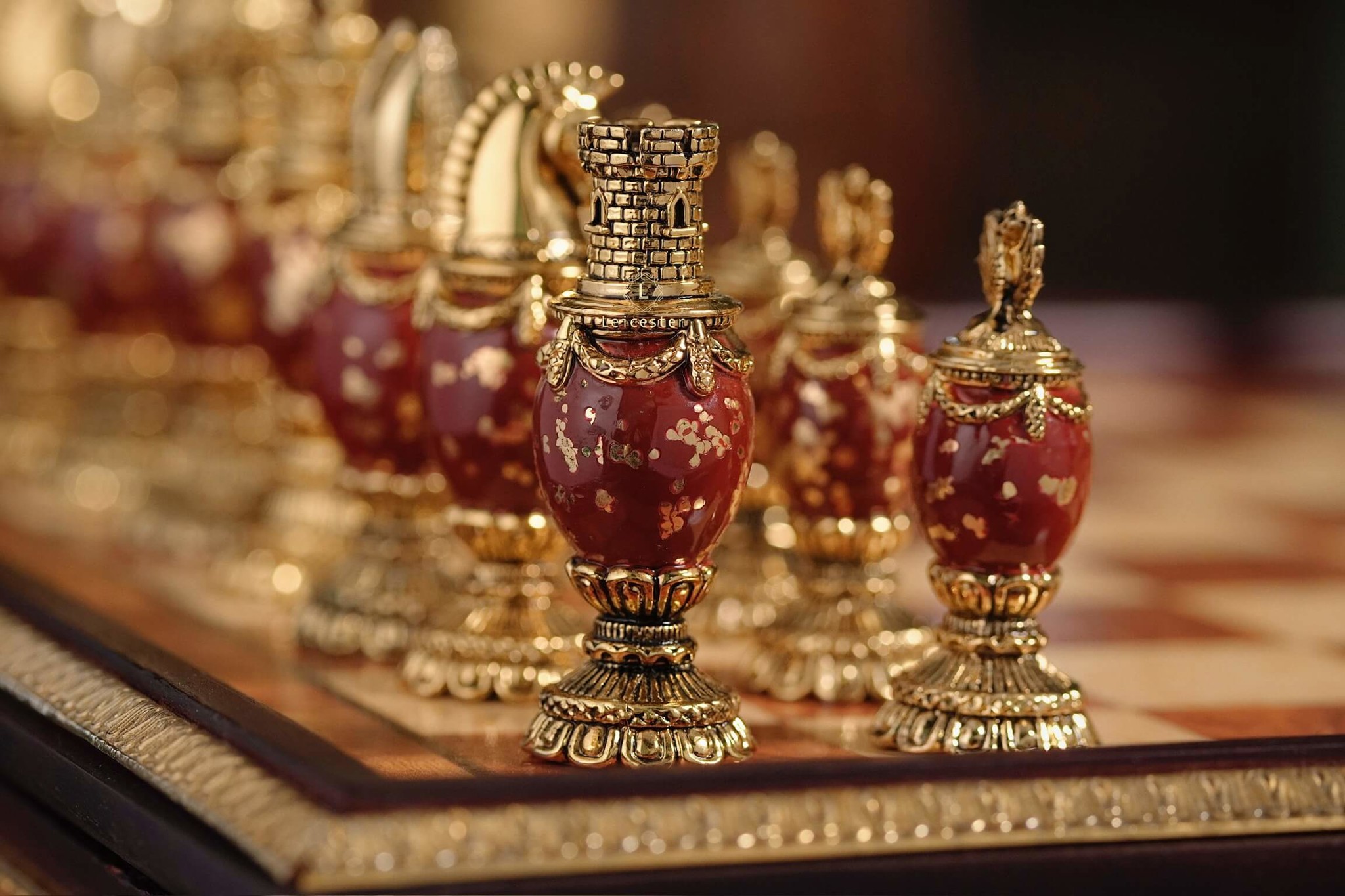 Đây là phiên bản giới hạn từ năm 1990, bản sao chính thức của Carl Peter Fabergé dành cho Hoàng đế Nga Nicholas II. Ông ra lệnh tặng bộ cờ vua cho vợ vào cuối thế kỷ 19.