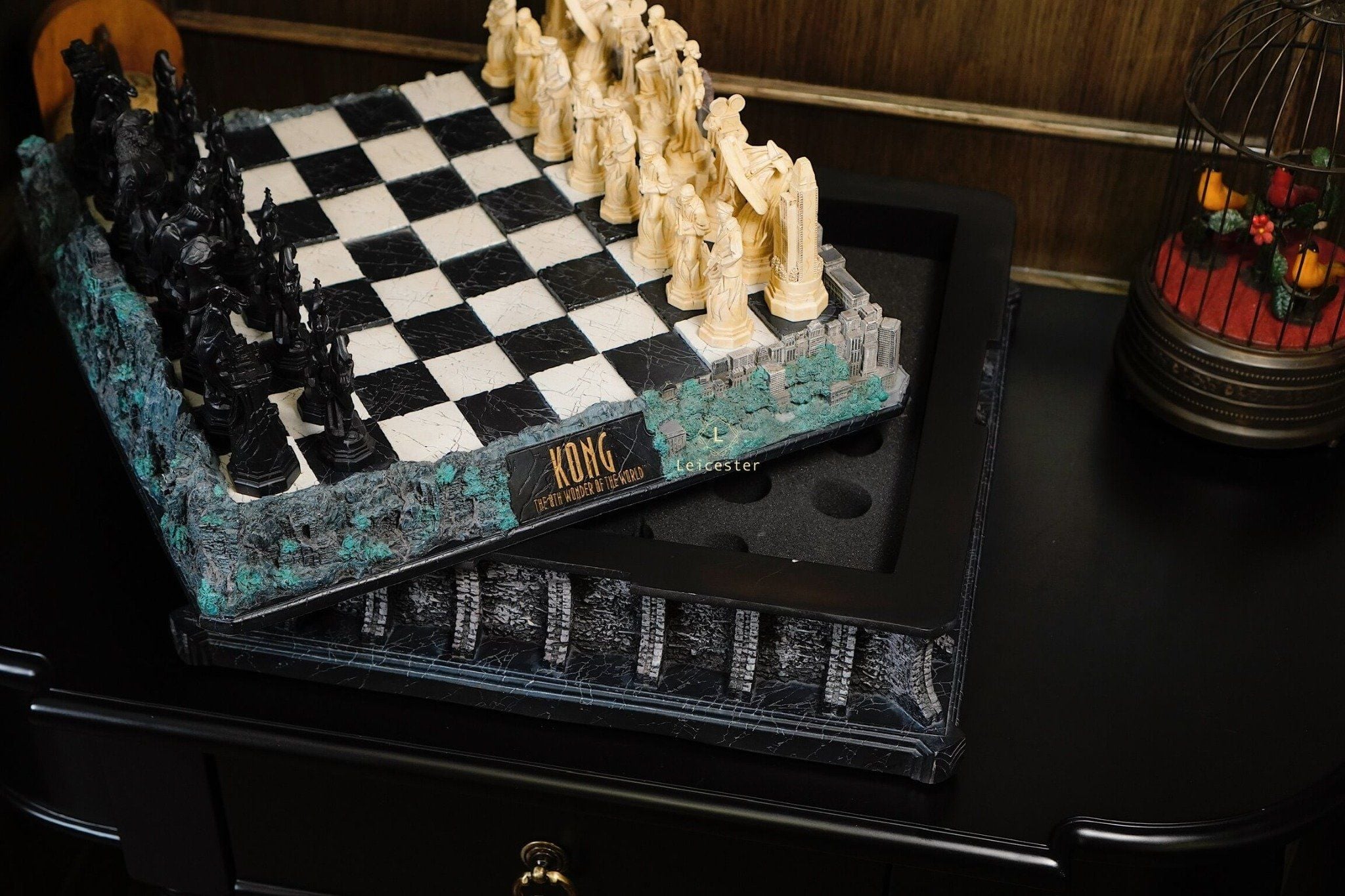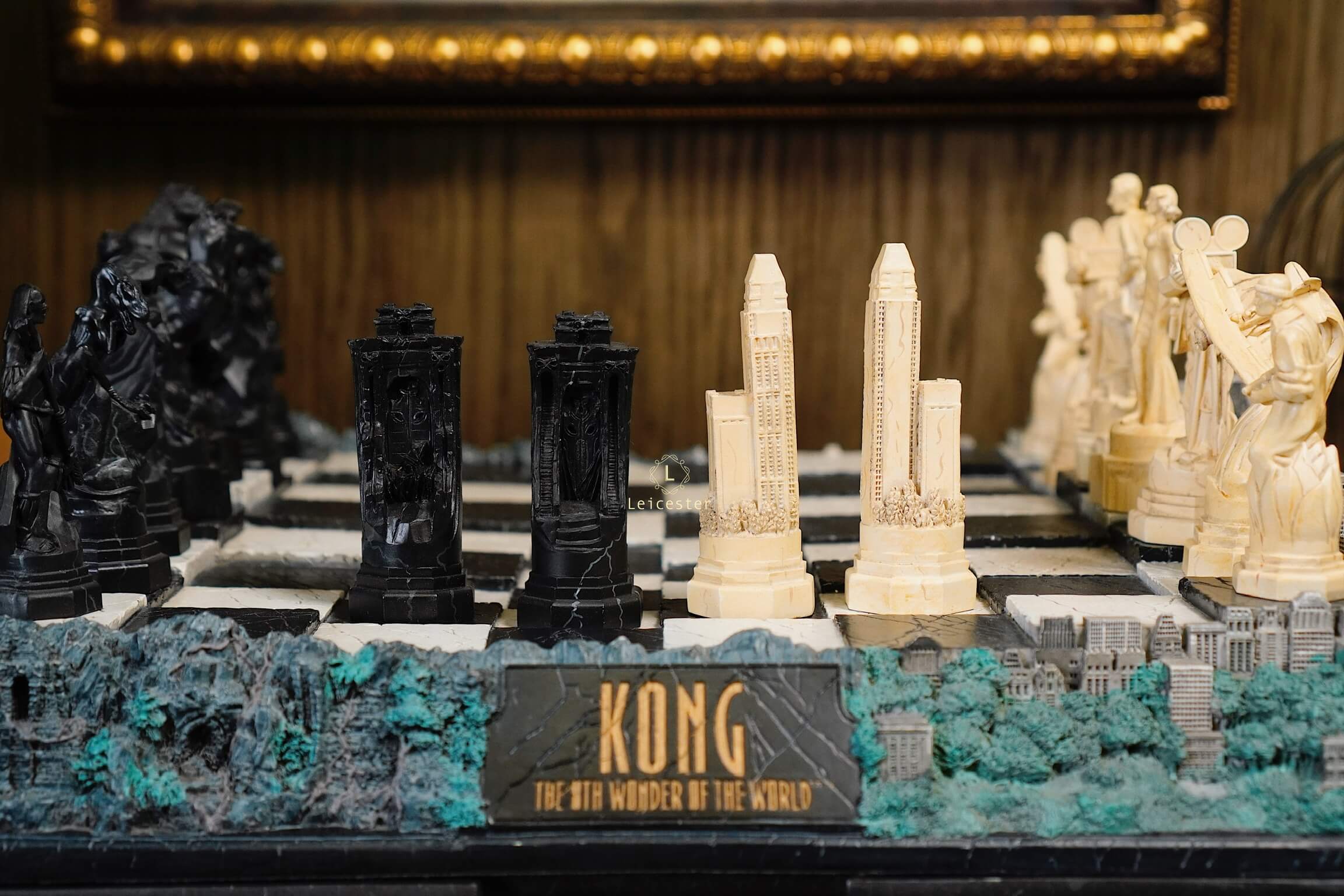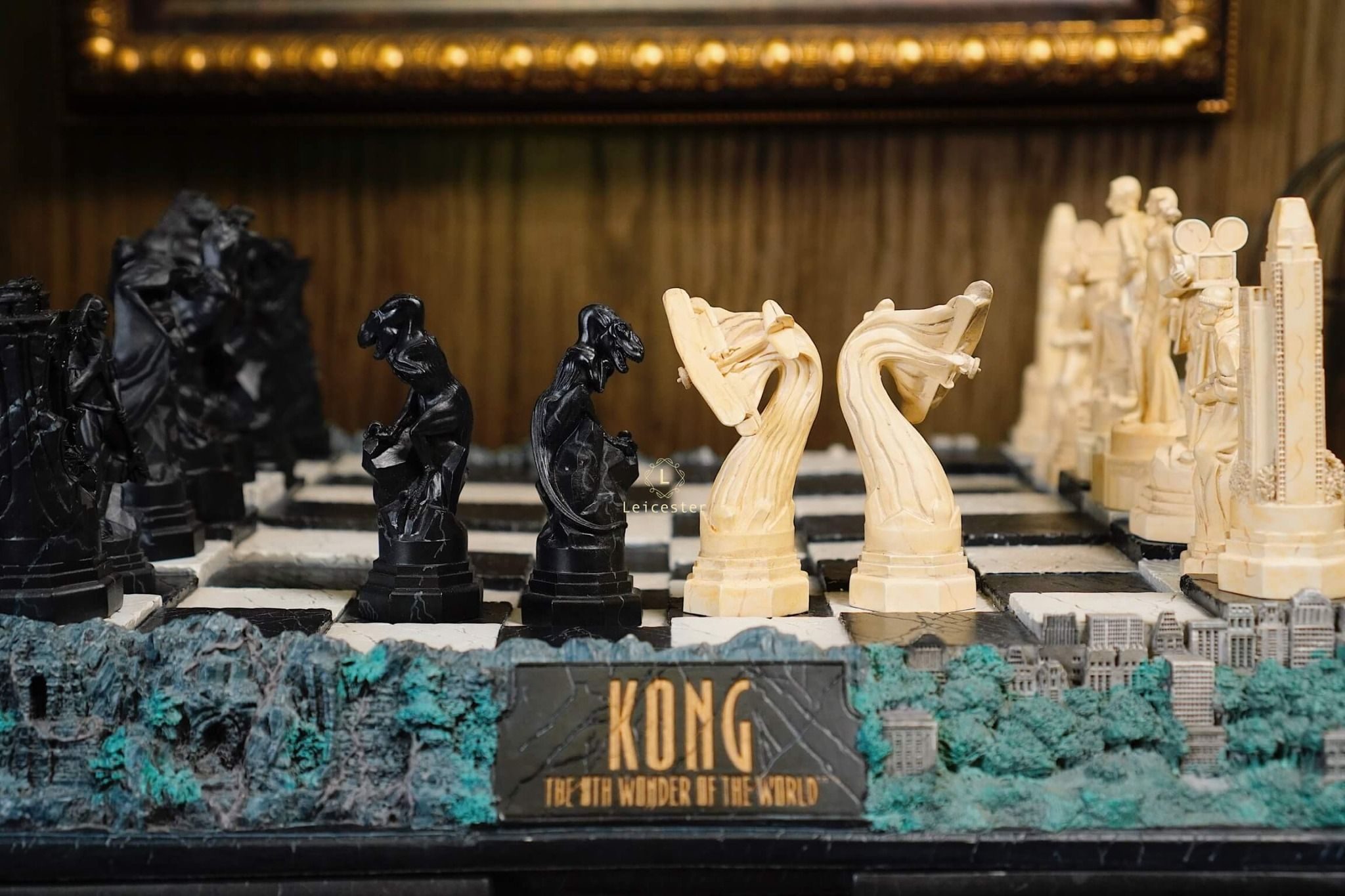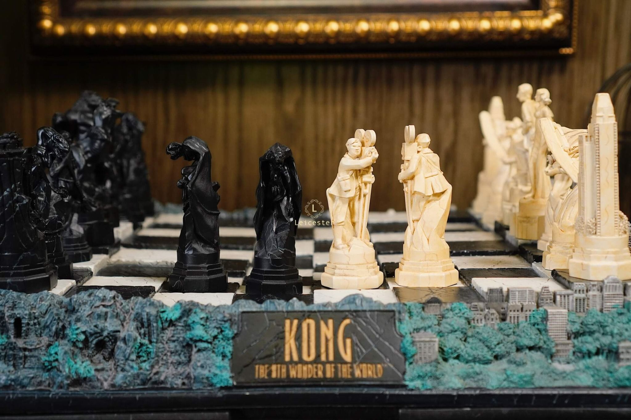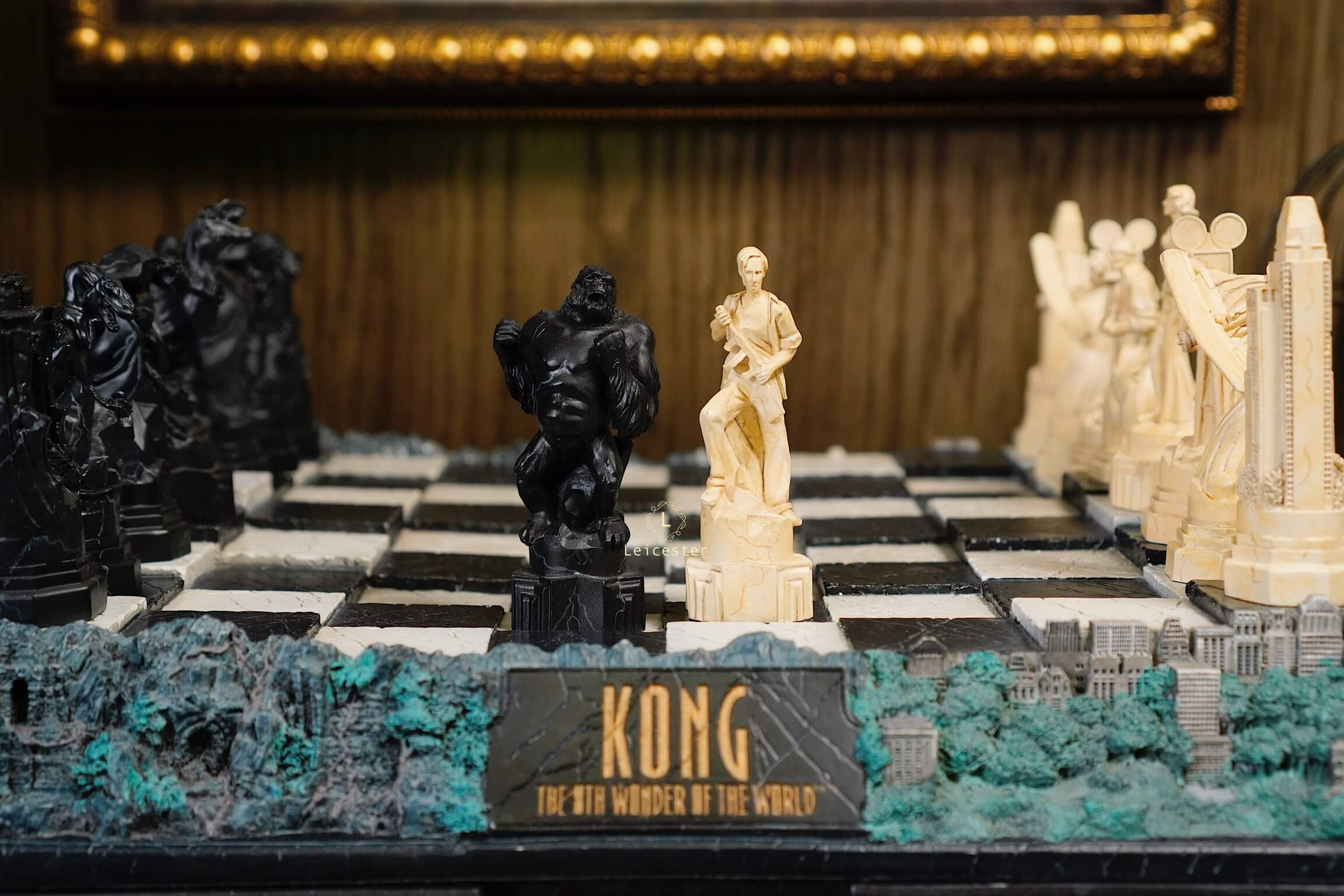 Bộ cờ vua “Kong: The 8th Wonder of the World” là một tuyệt phẩm sưu tầm phiên bản giới hạn do Weta Collectibles thiết kế và phân phối bởi Dark Horse Comic. Tái hiện cuộc đối đầu mang tính biểu tượng giữa Kong và Đảo Đầu Lâu với New York năm 1933, mang lại không khí hùng vĩ của bộ phim. Toàn bộ quân cờ được chế tác thủ công bằng polystone cao cấp vừa chắc chắn vừa sang trọng. Thiết kế được thực hiện bởi các nghệ nhân Weta nổi tiếng như Mary Maclachlan, Gary Hunt và Ben Hawker, mang đến những chi tiết tinh xảo, sống động.