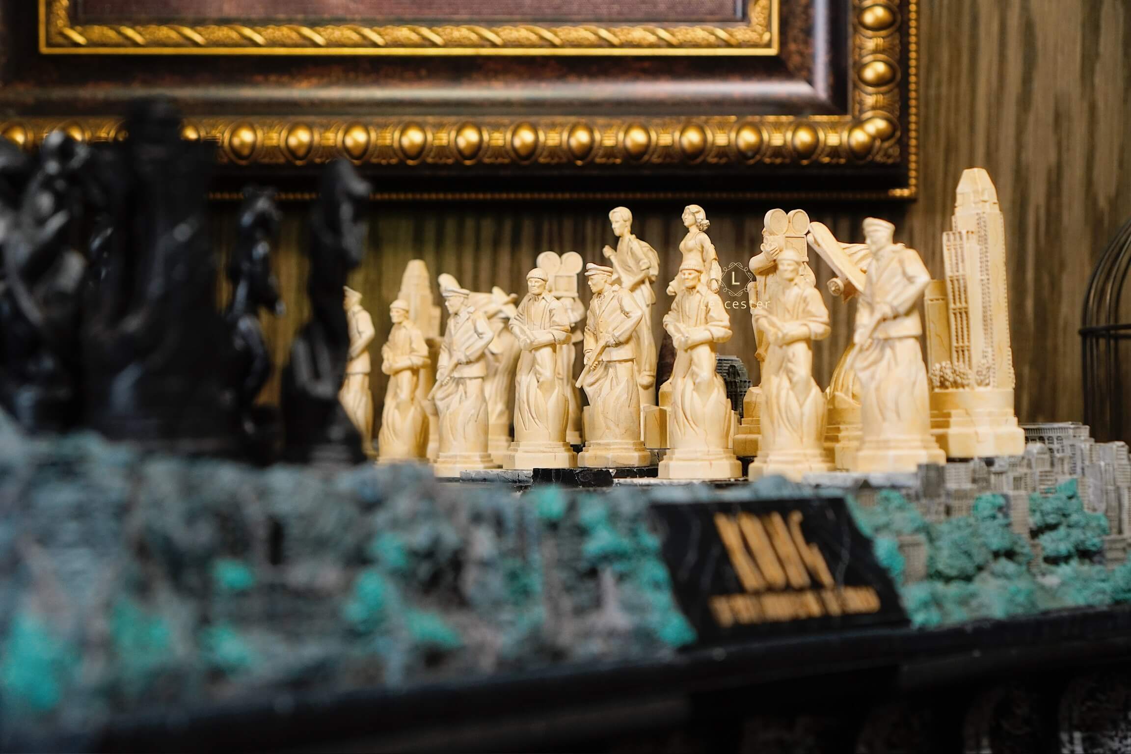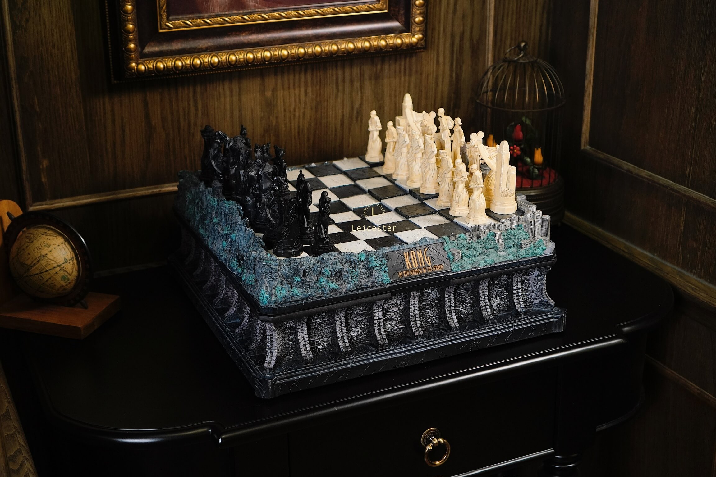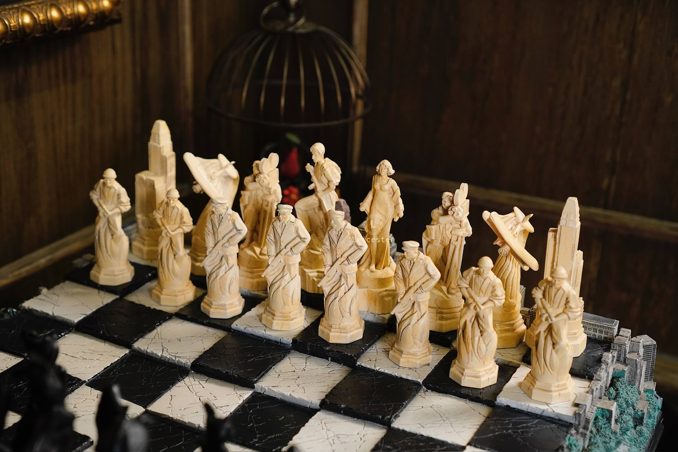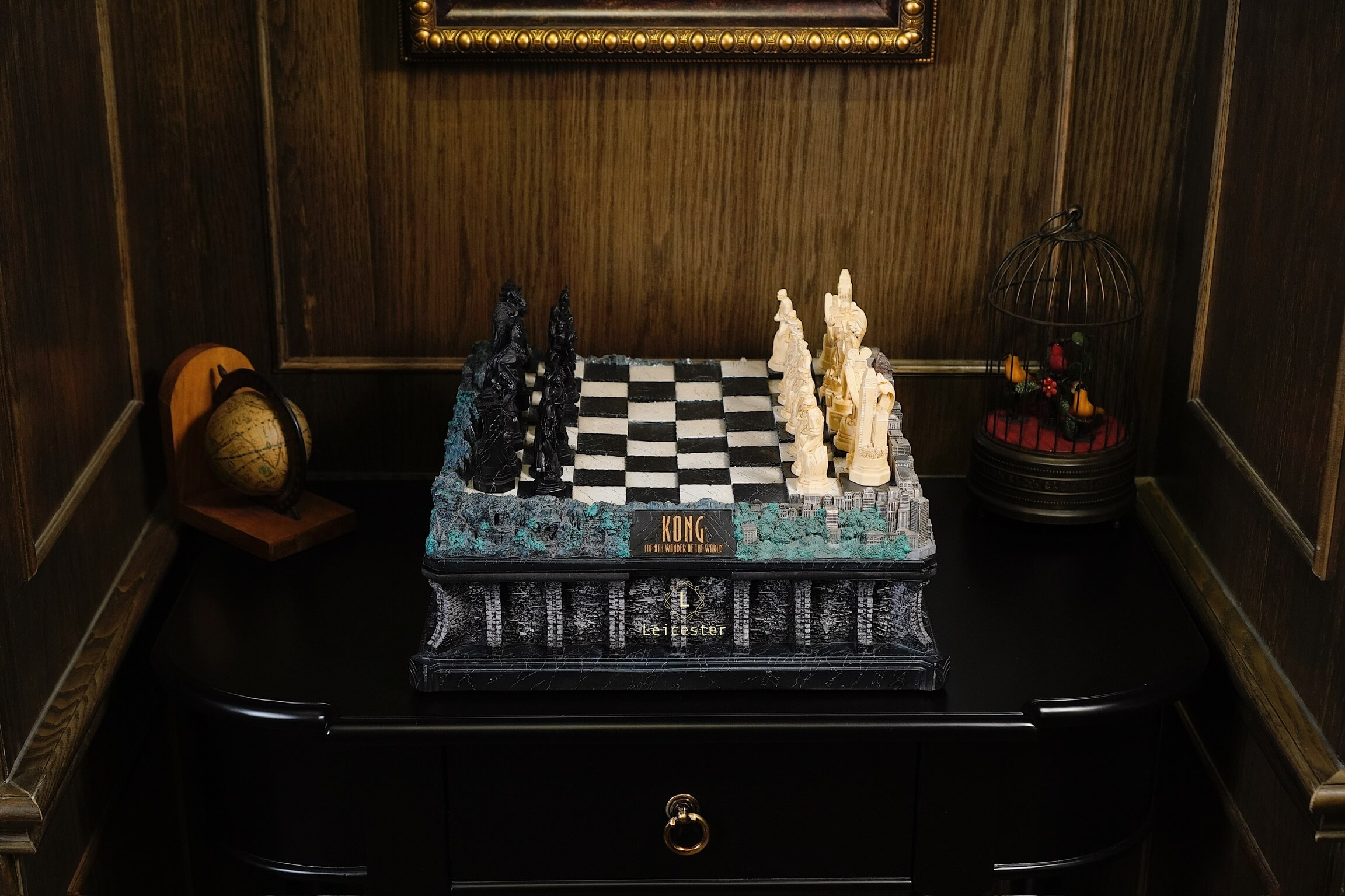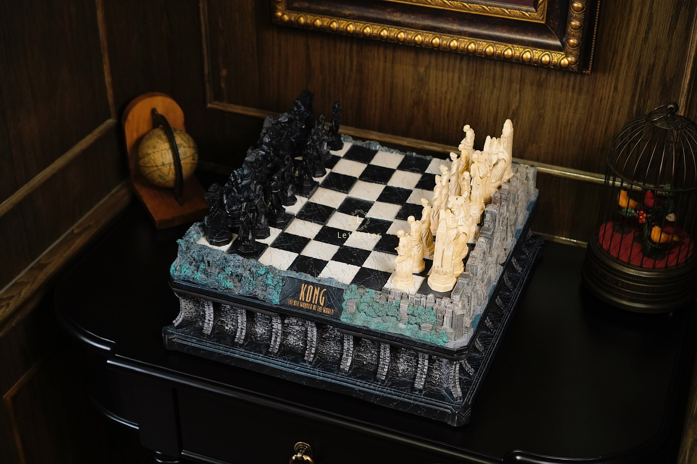 Bộ cờ vua “Kong: The 8th Wonder of the World” là một tuyệt phẩm sưu tầm phiên bản giới hạn do Weta Collectibles thiết kế và phân phối bởi Dark Horse Comic. Tái hiện cuộc đối đầu mang tính biểu tượng giữa Kong và Đảo Đầu Lâu với New York năm 1933, mang lại không khí hùng vĩ của bộ phim. Toàn bộ quân cờ được chế tác thủ công bằng polystone cao cấp vừa chắc chắn vừa sang trọng. Thiết kế được thực hiện bởi các nghệ nhân Weta nổi tiếng như Mary Maclachlan, Gary Hunt và Ben Hawker, mang đến những chi tiết tinh xảo, sống động.