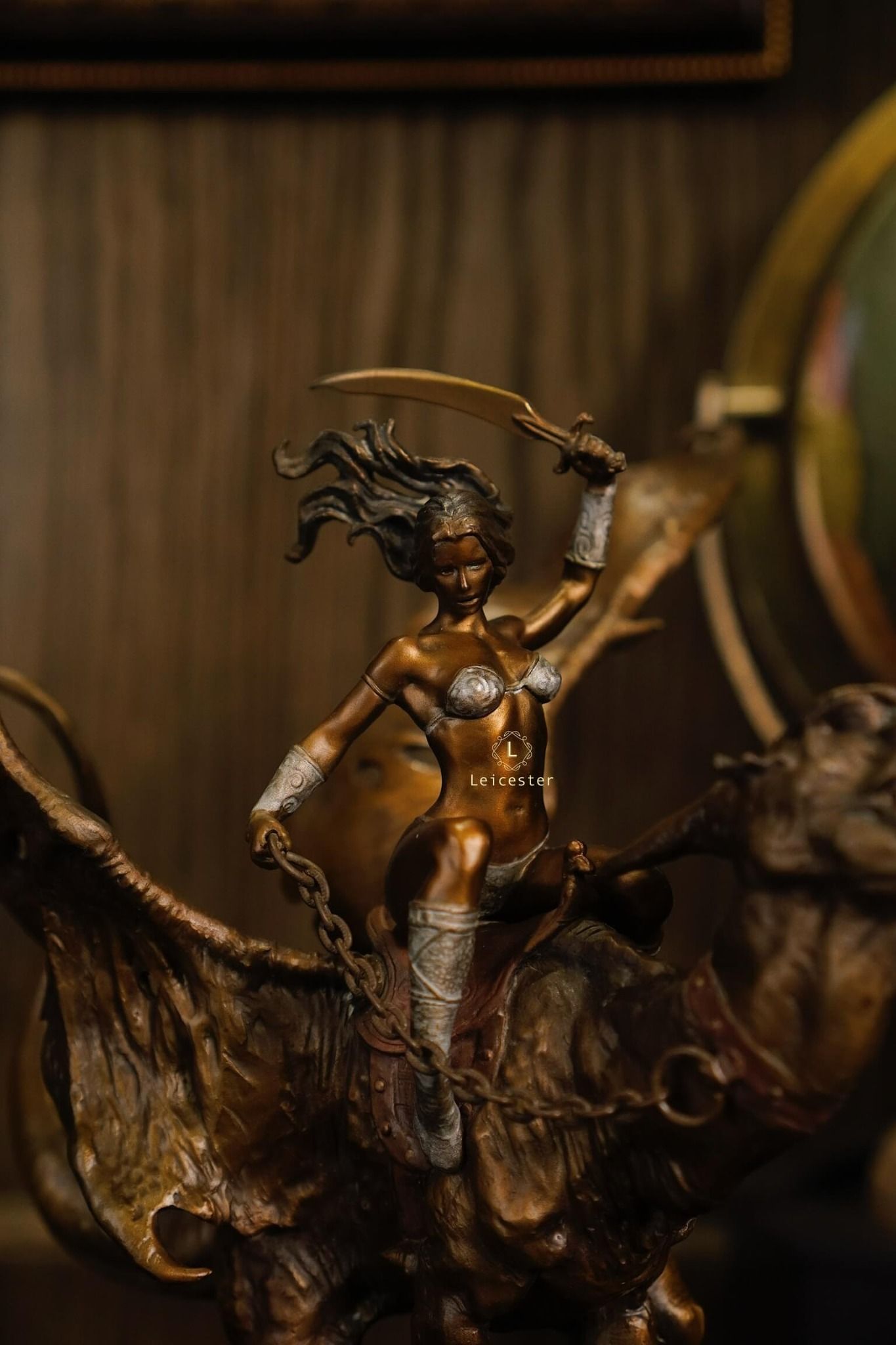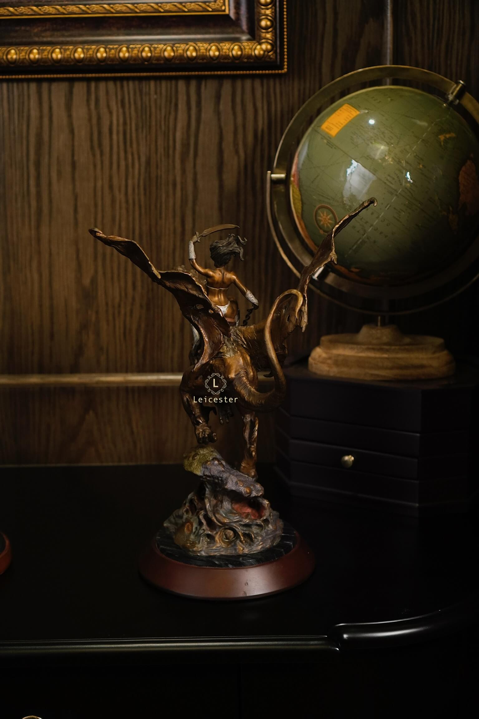 Maiden of the Golden Sword mô tả hình ảnh nữ chiến binh trong trang phục cổ điển, trên tay cầm một thanh kiếm hoàng kim, cưỡi trên lưng một con rồng tạo nên một hình ảnh đầy quyền lực. Kiệt tác nghệ thuật này là biểu tượng của lòng dũng cảm, chính nghĩa và niềm tin rằng ánh sáng sẽ luôn chiến thắng bóng tối.