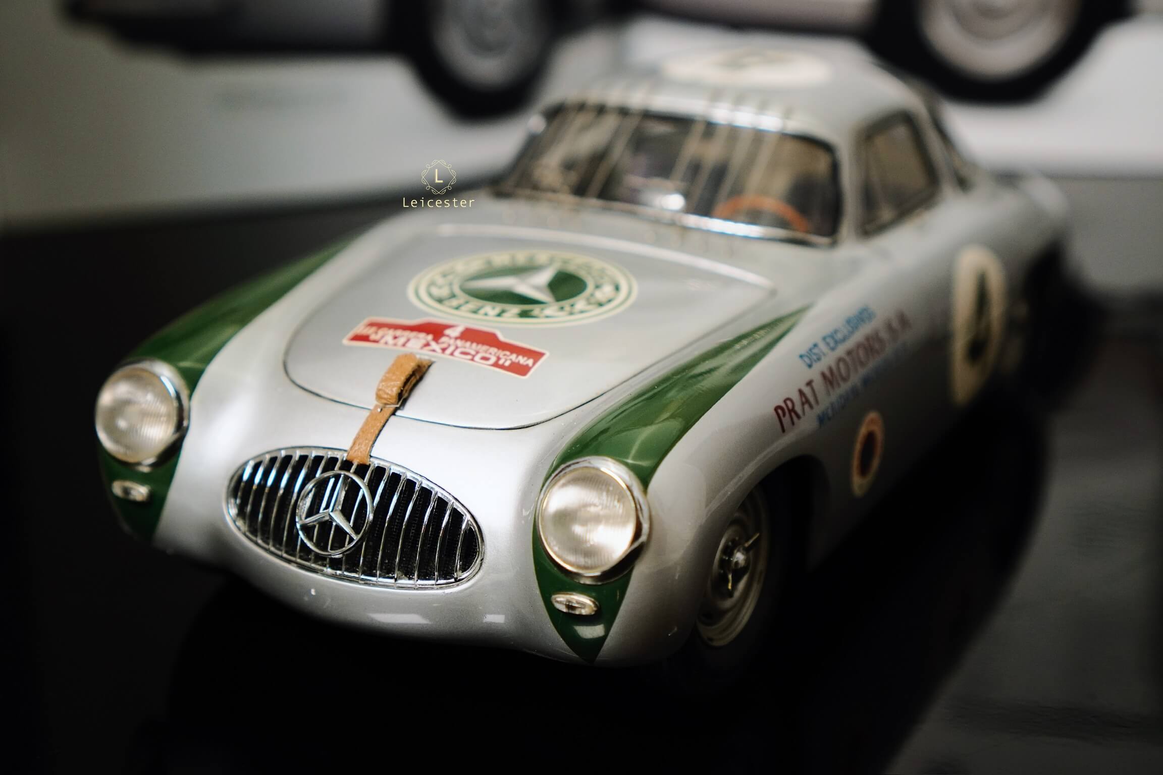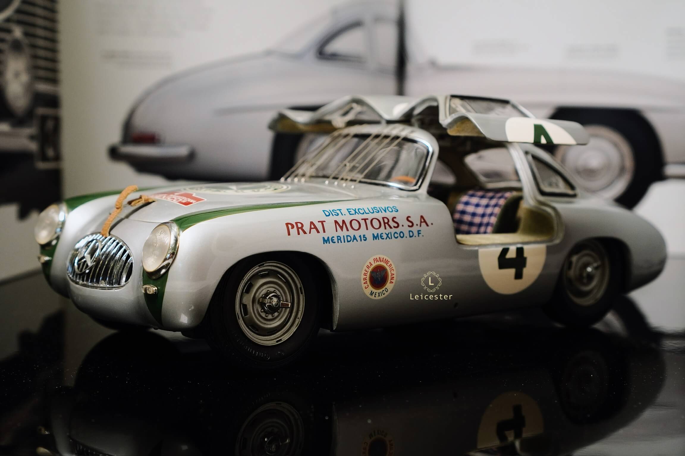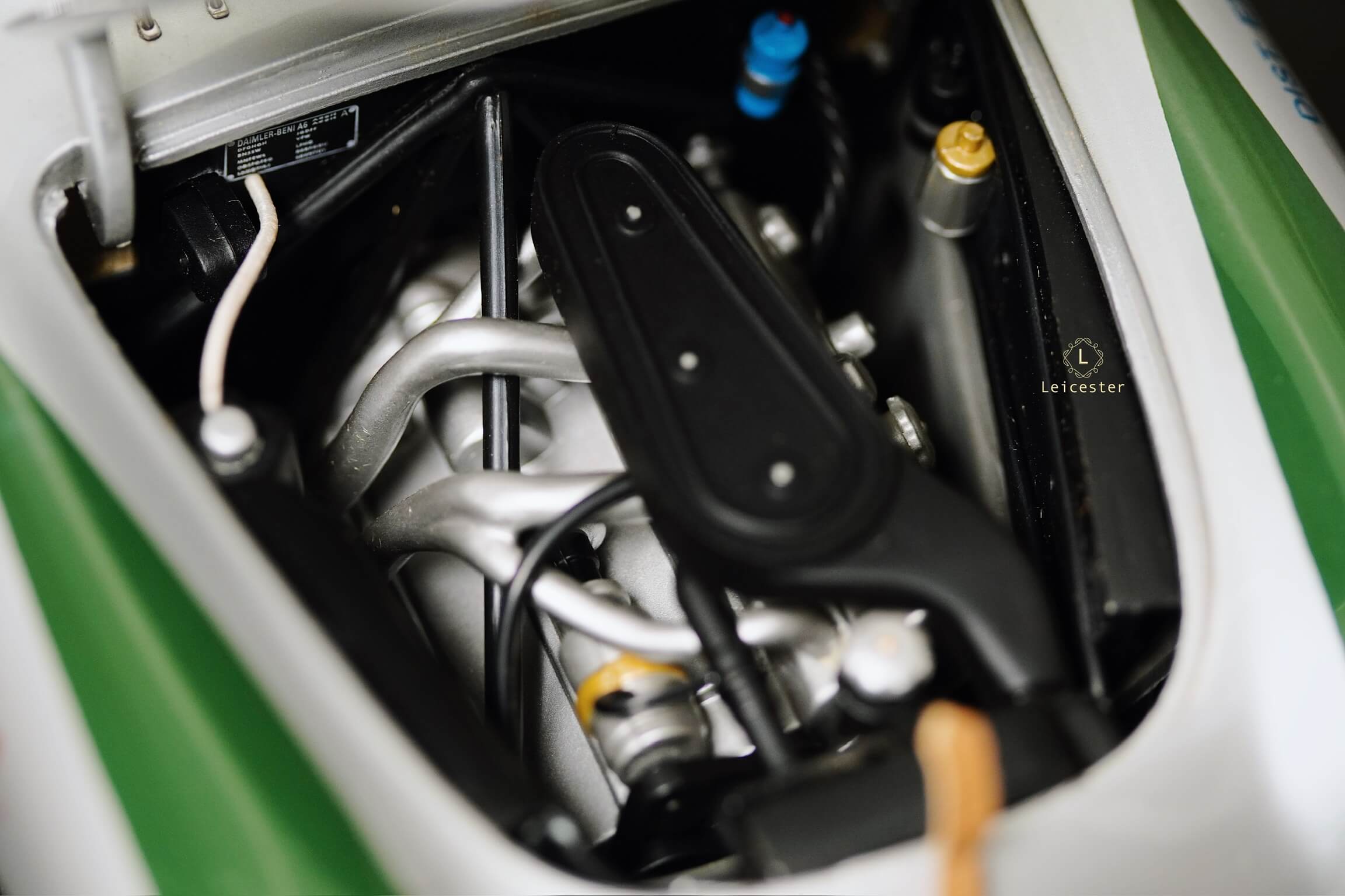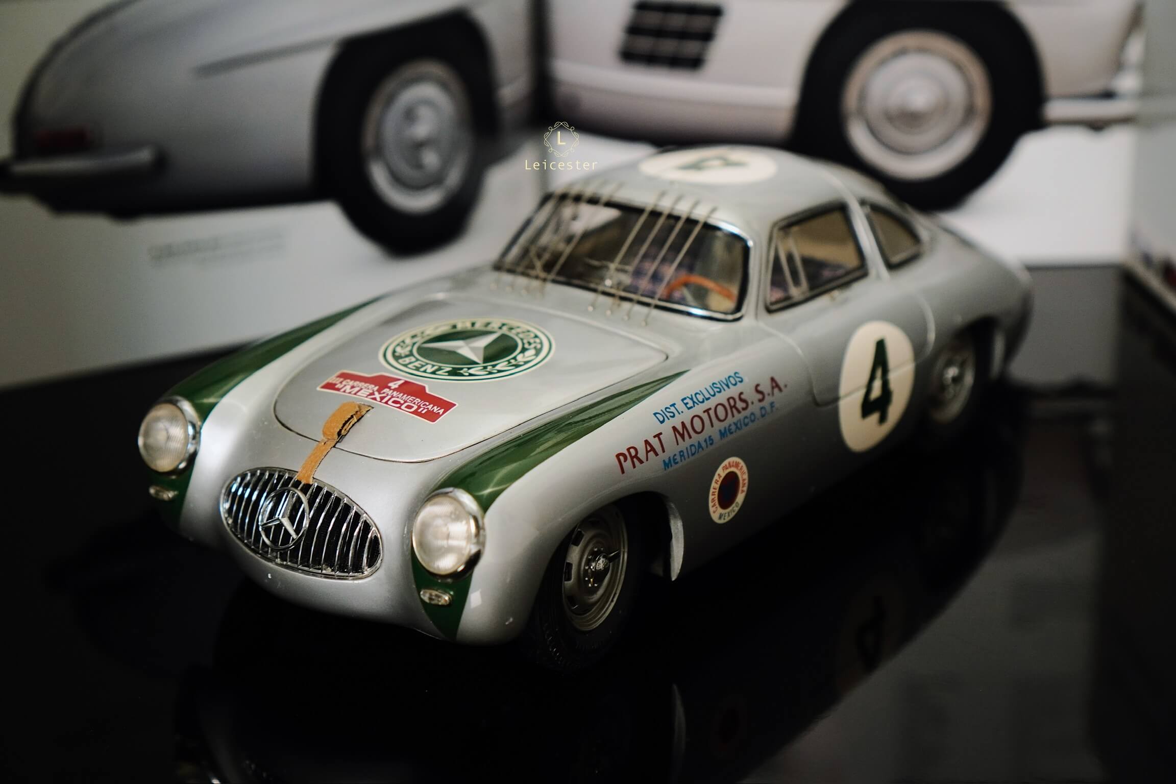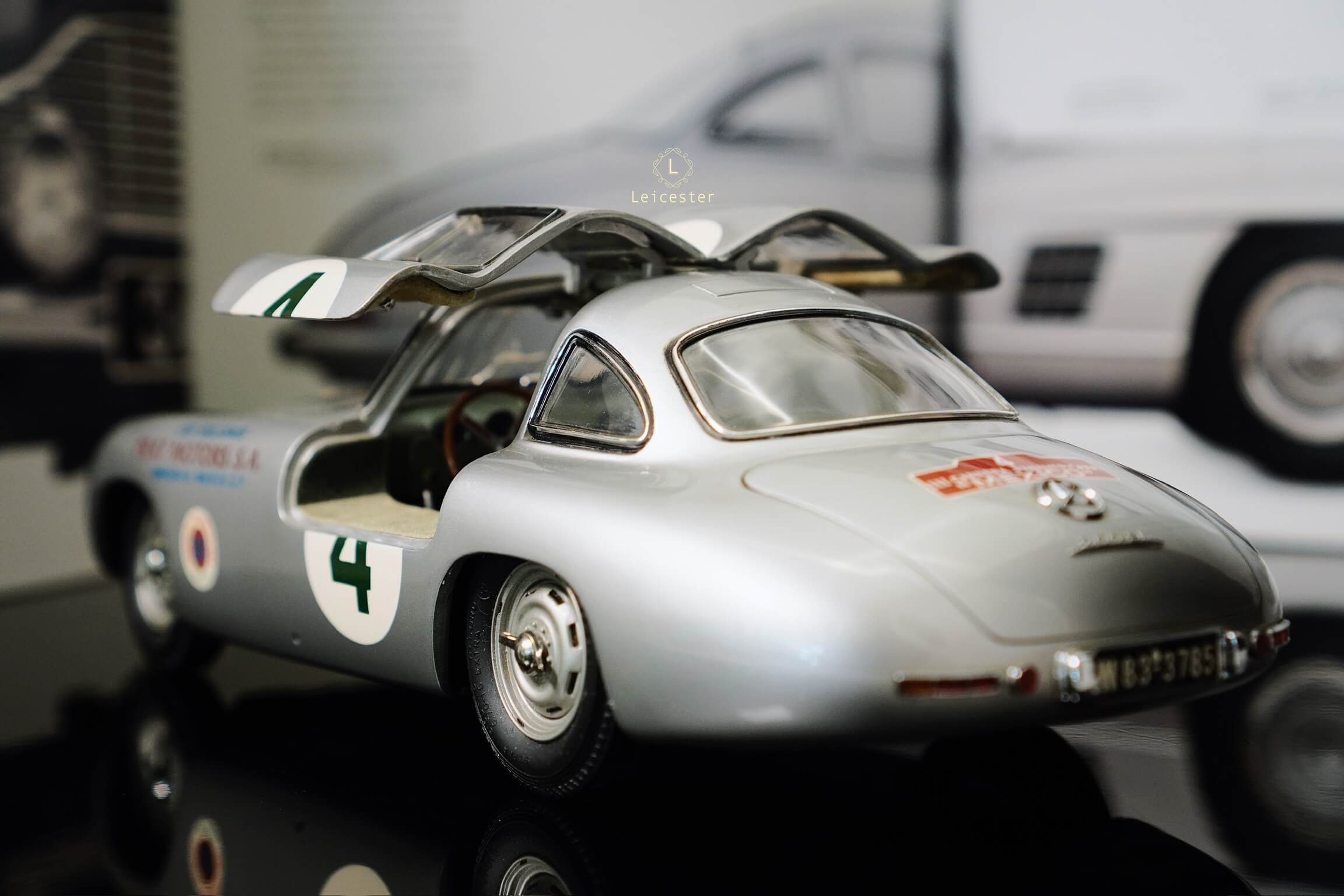 Khoác lên mình lớp sơn bạc ánh kim biểu trưng cho đội đua Mercedes, chiếc mô hình mang tem số “4” cùng logo Prat Motors S.A. – Mexico D.F., gợi nhớ tinh thần Panamericana 1952 huyền thoại. Cánh cửa “gullwing” mở lên nhẹ nhàng phô bày nội thất vải caro cổ điển, từng đường nét, bánh xe, gương và cụm đèn đều được tái hiện chính xác đến từng chi tiết. Khoang hành lý phía sau có thể mở, hé lộ kết cấu cơ khí tinh xảo – minh chứng cho đẳng cấp chế tác thủ công của CMC Đức.