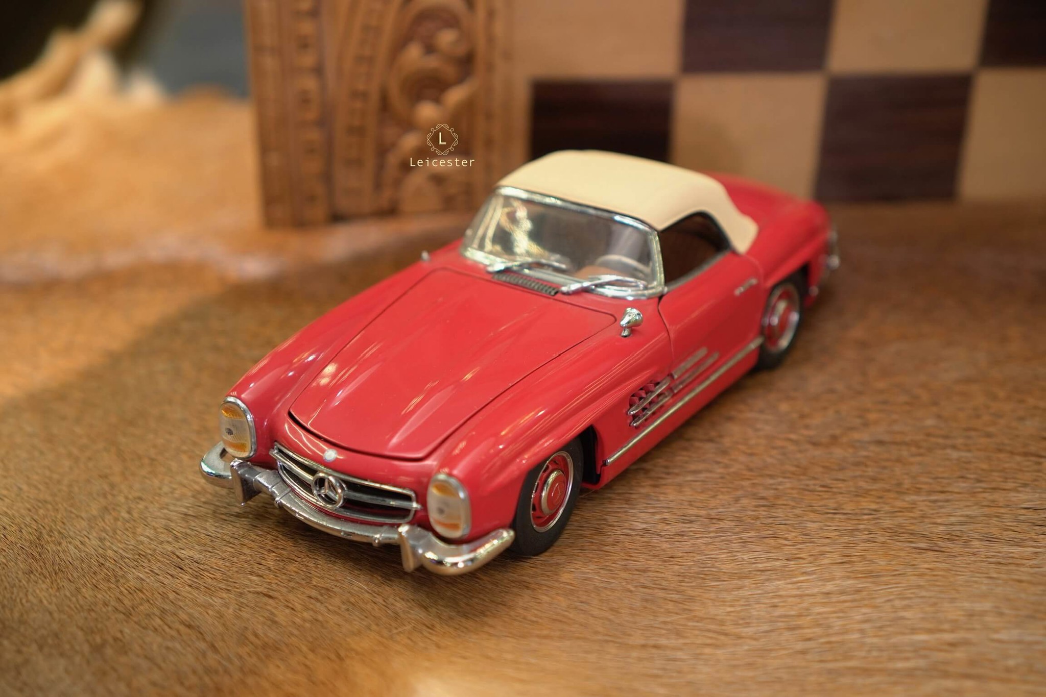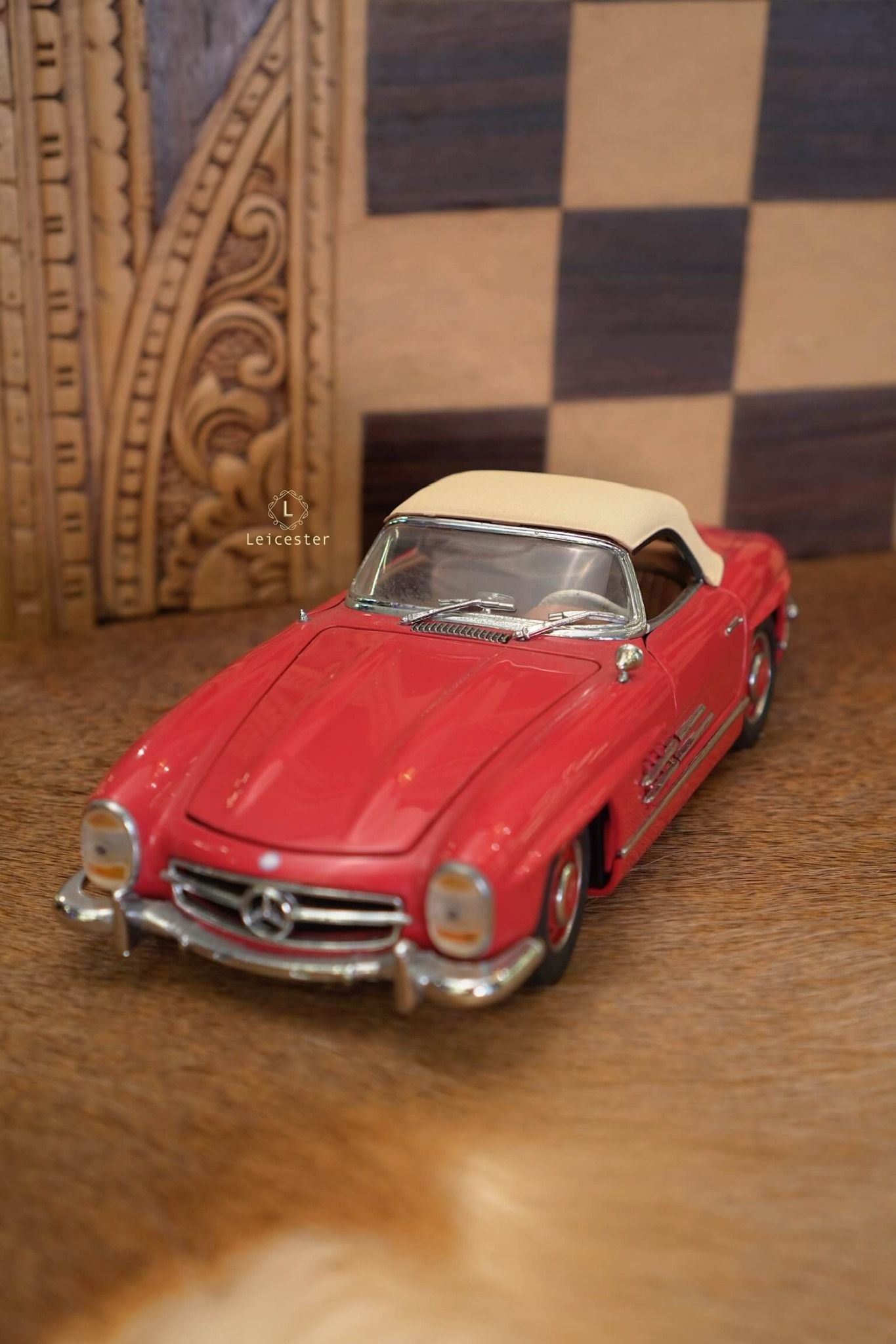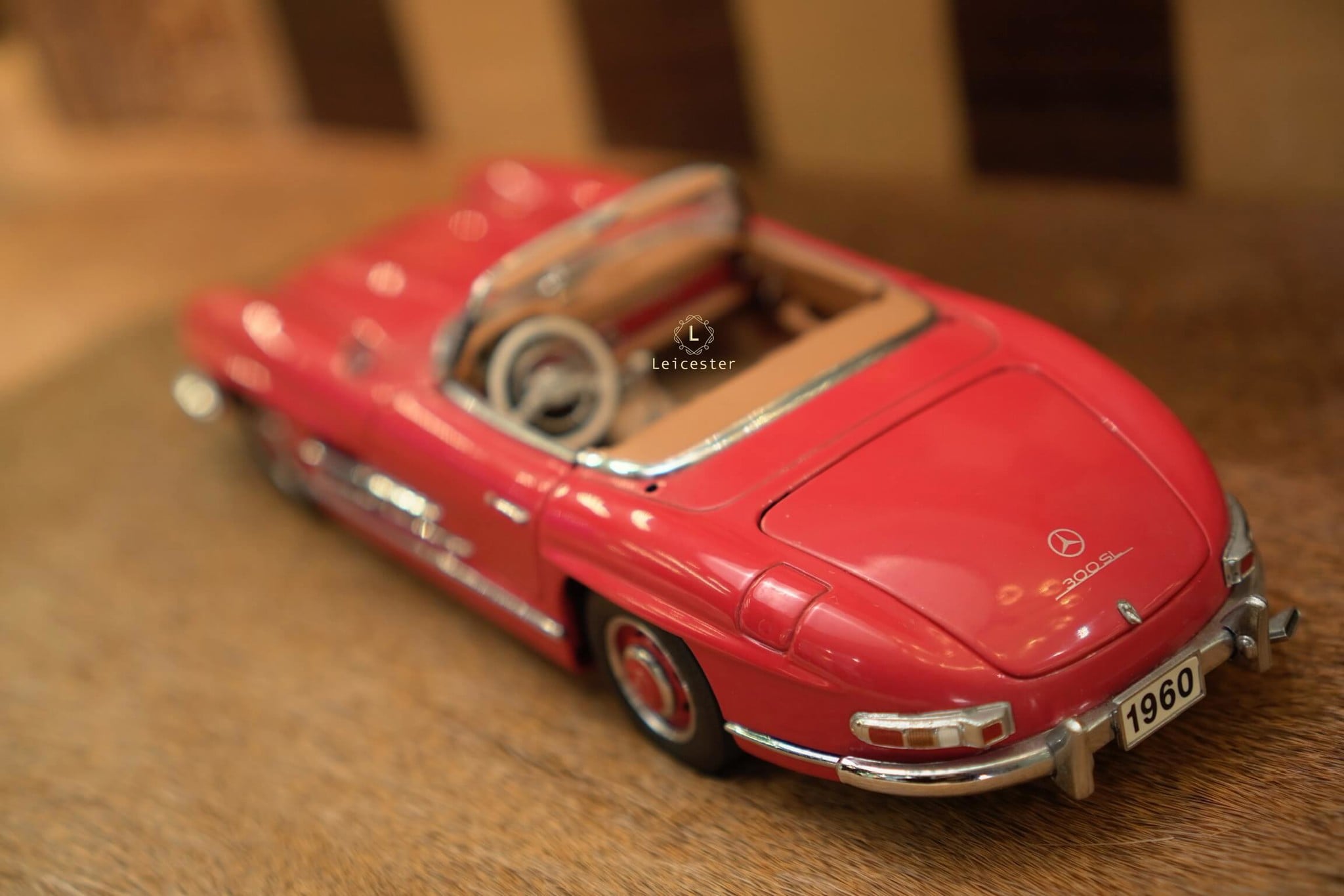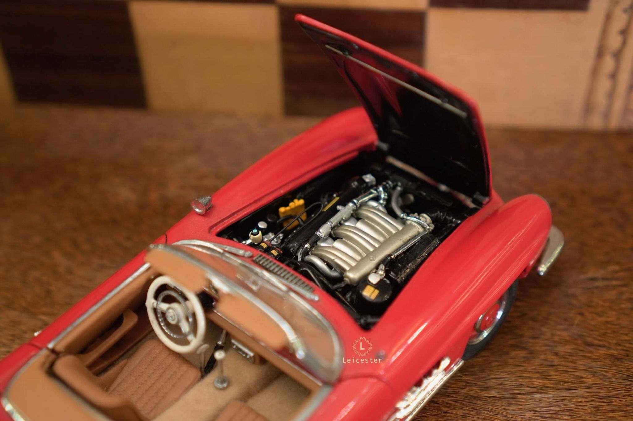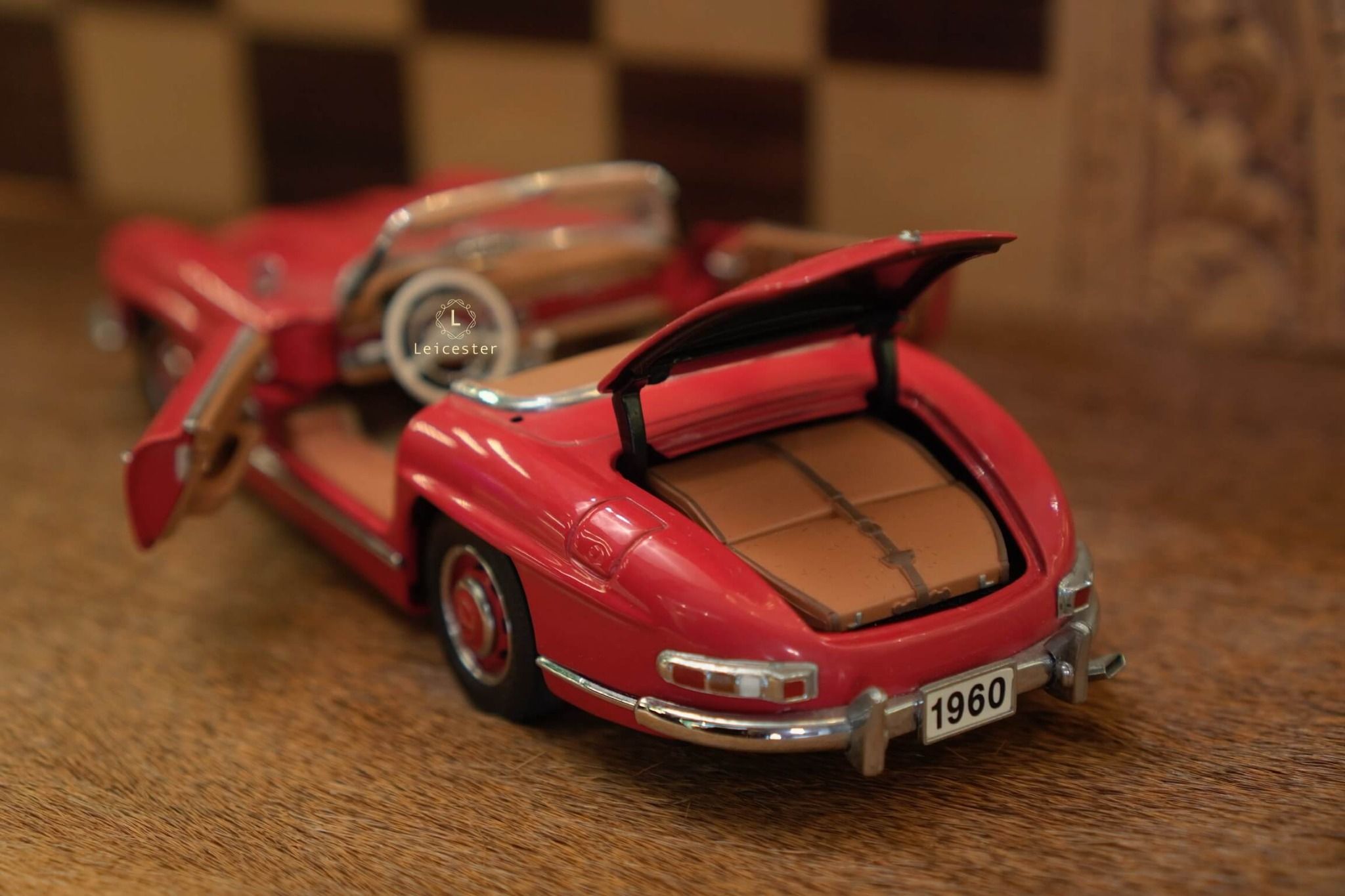 Chiếc Mercedes-Benz 300 SL Roadster 1960 được tái tạo lại trong một bản sao tỷ lệ 1:24 được thiết kế chính xác, lắp ráp bằng tay từ hơn 150 thành phần riêng biệt và được ủy quyền chính thức bởi Daimler-Benz AG. Từ lớp hoàn thiện màu đỏ thể thao đến động cơ 2996 cc. được bơm nhiên liệu cho đến nội thất sang trọng, hành lý cũng được trang bị tùy chỉnh trong cốp xe.