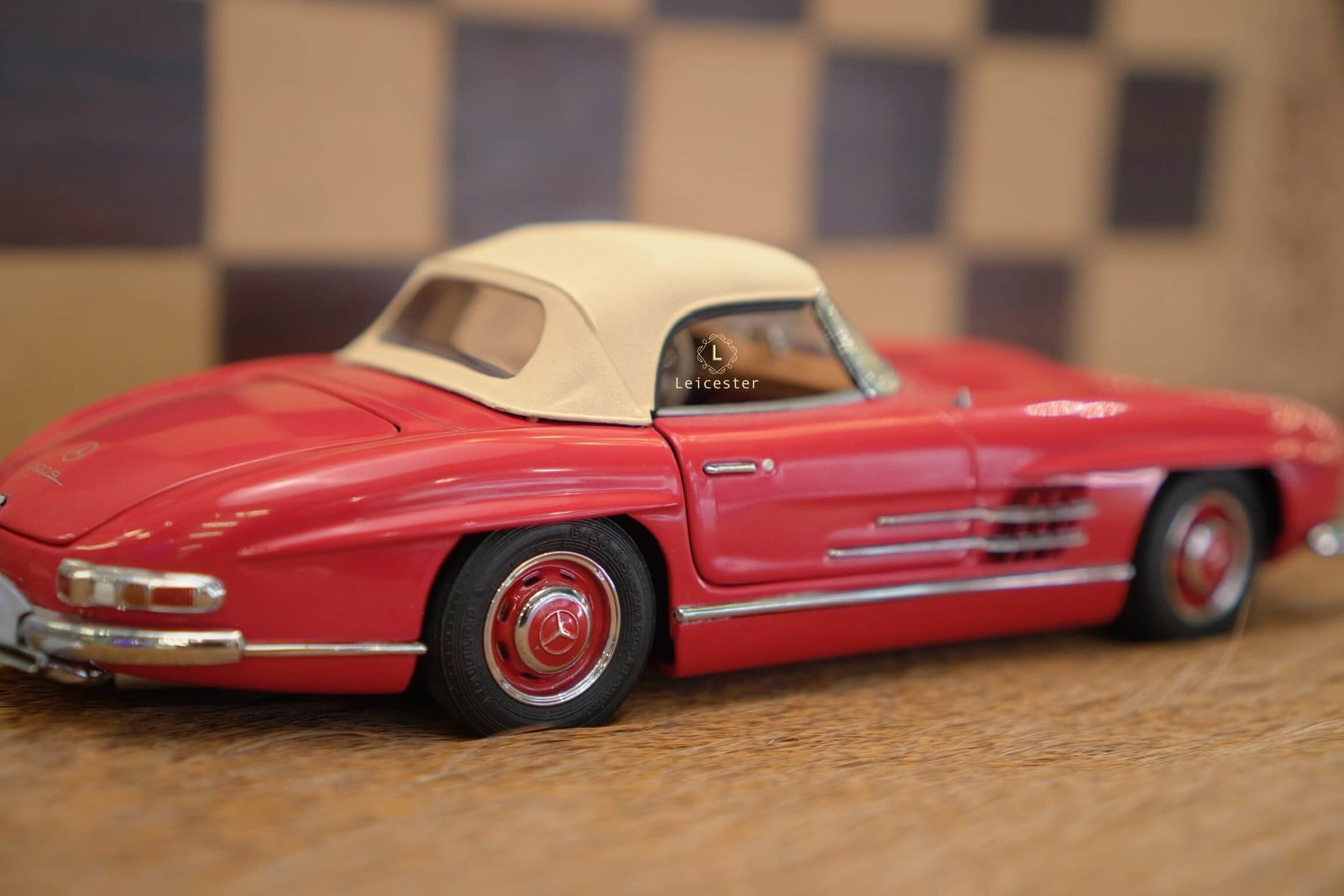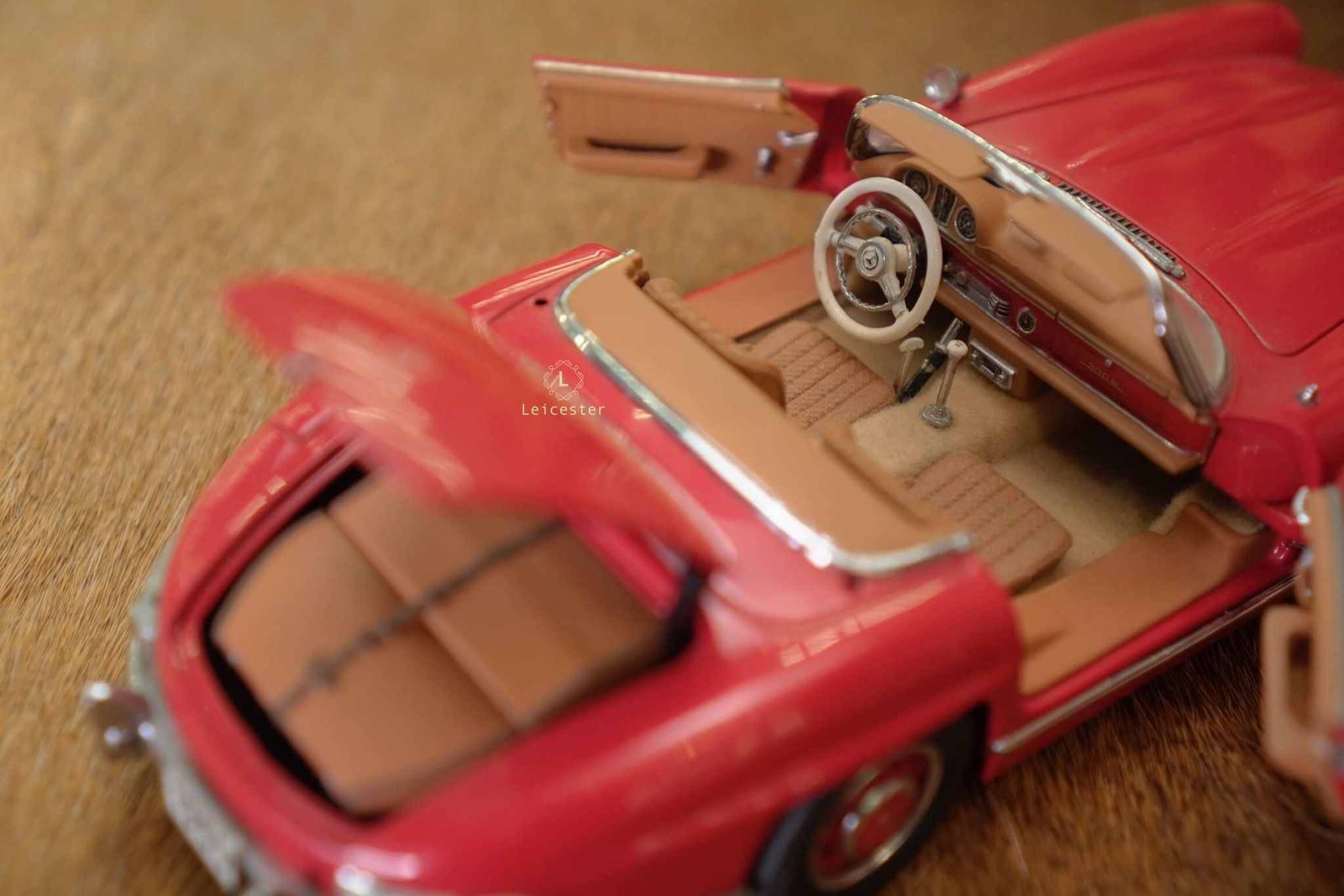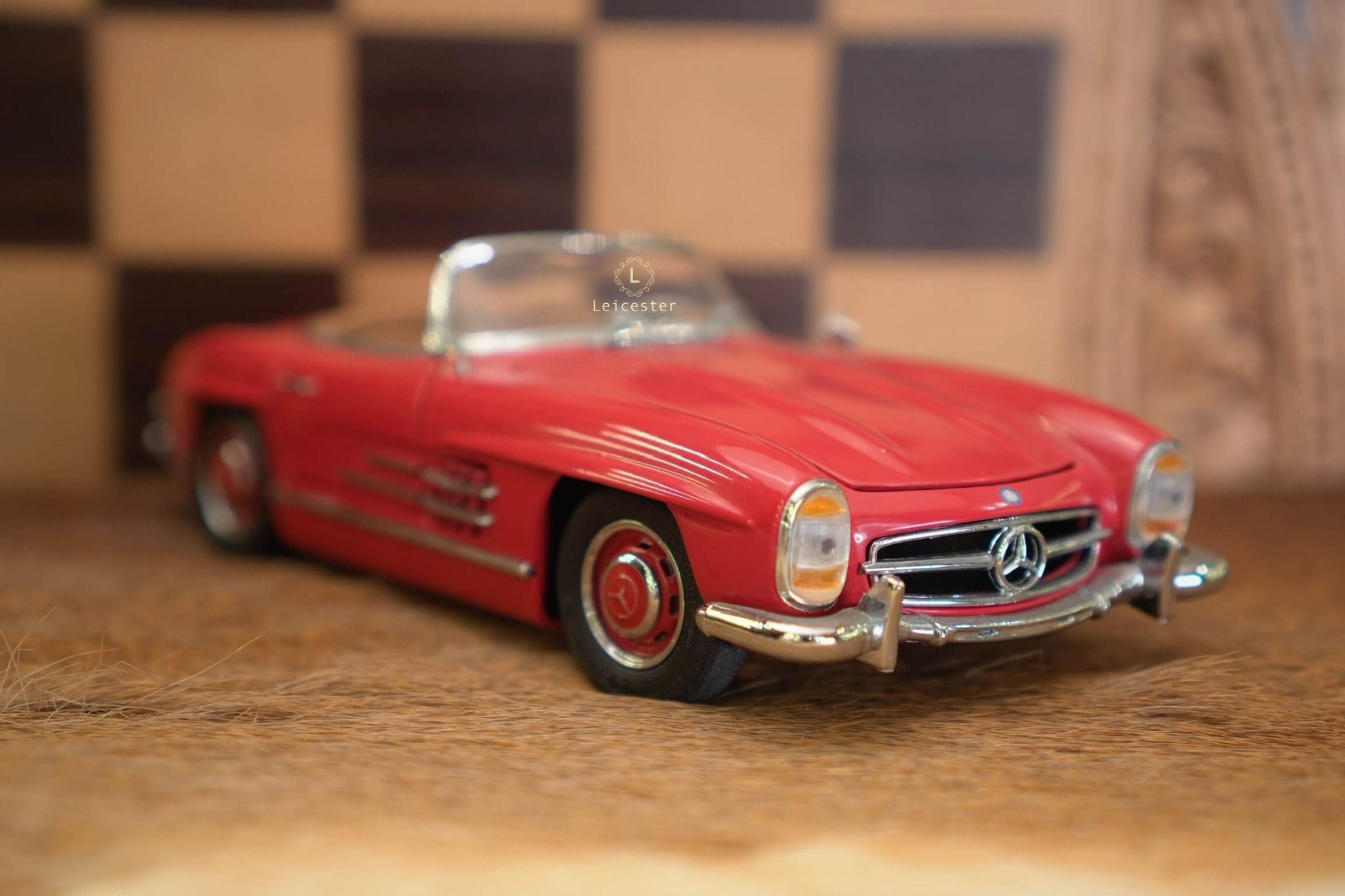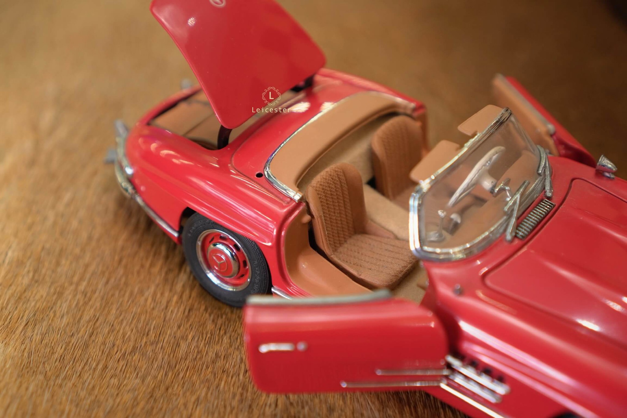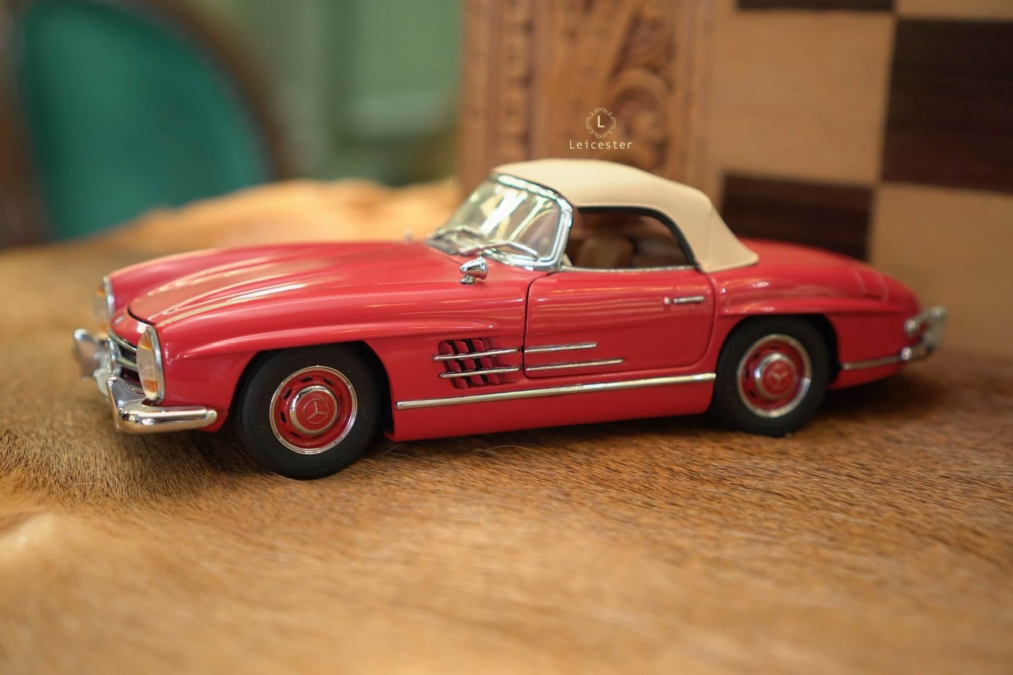 Chiếc Mercedes-Benz 300 SL Roadster 1960 được tái tạo lại trong một bản sao tỷ lệ 1:24 được thiết kế chính xác, lắp ráp bằng tay từ hơn 150 thành phần riêng biệt và được ủy quyền chính thức bởi Daimler-Benz AG. Từ lớp hoàn thiện màu đỏ thể thao đến động cơ 2996 cc. được bơm nhiên liệu cho đến nội thất sang trọng, hành lý cũng được trang bị tùy chỉnh trong cốp xe.