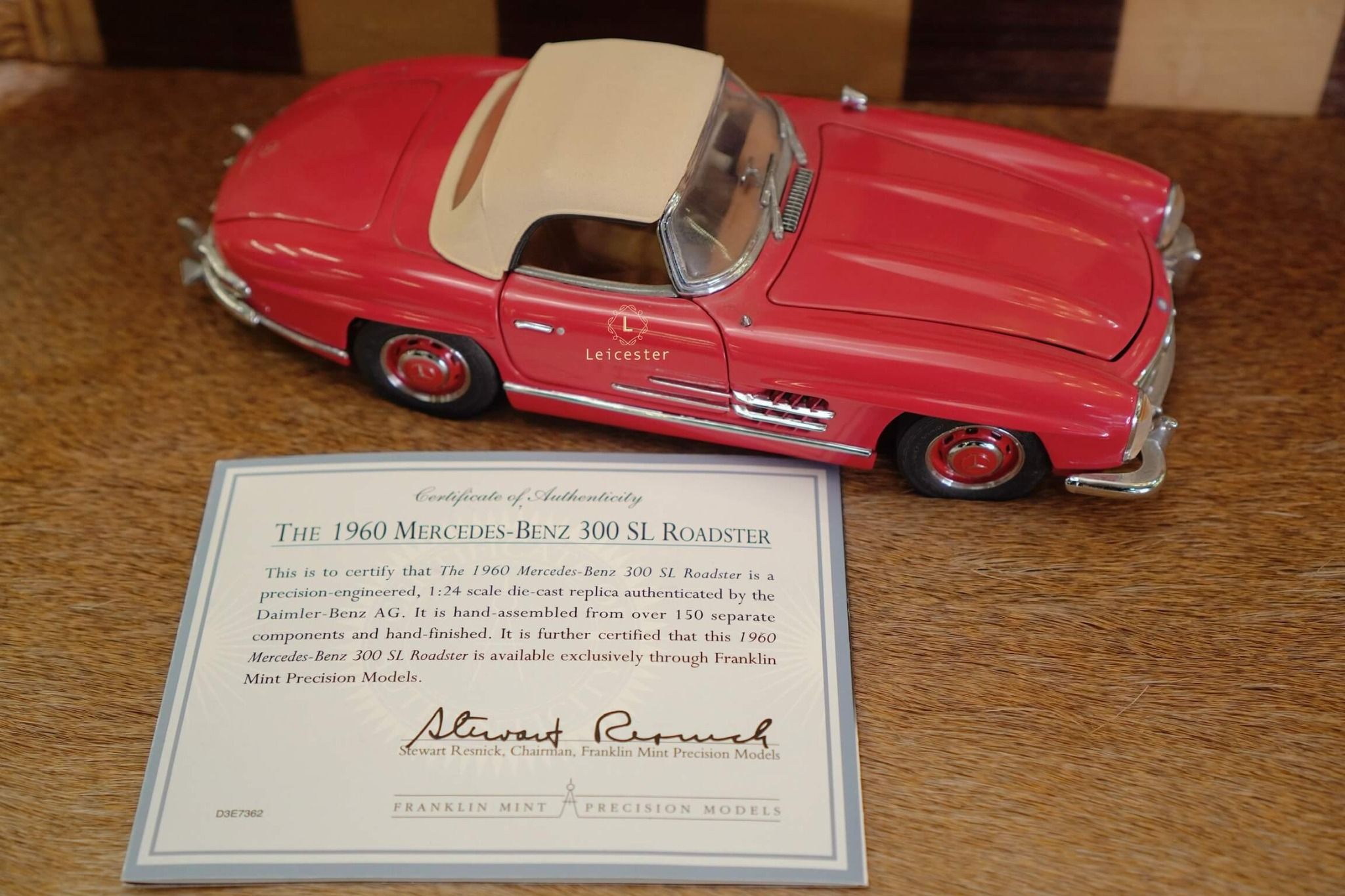 Kèm theo đó là giấy chứng nhận rằng chiếc Mercedes-Benz 300 SL Roadster 1960 này có sẵn độc quyền thông qua Franklin Mint Precision Models.