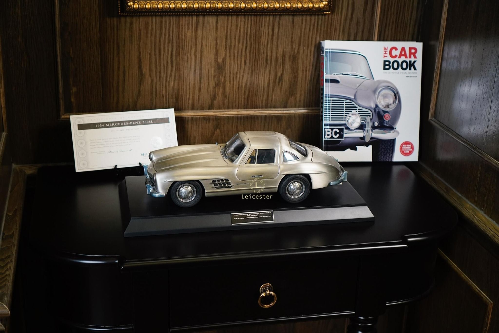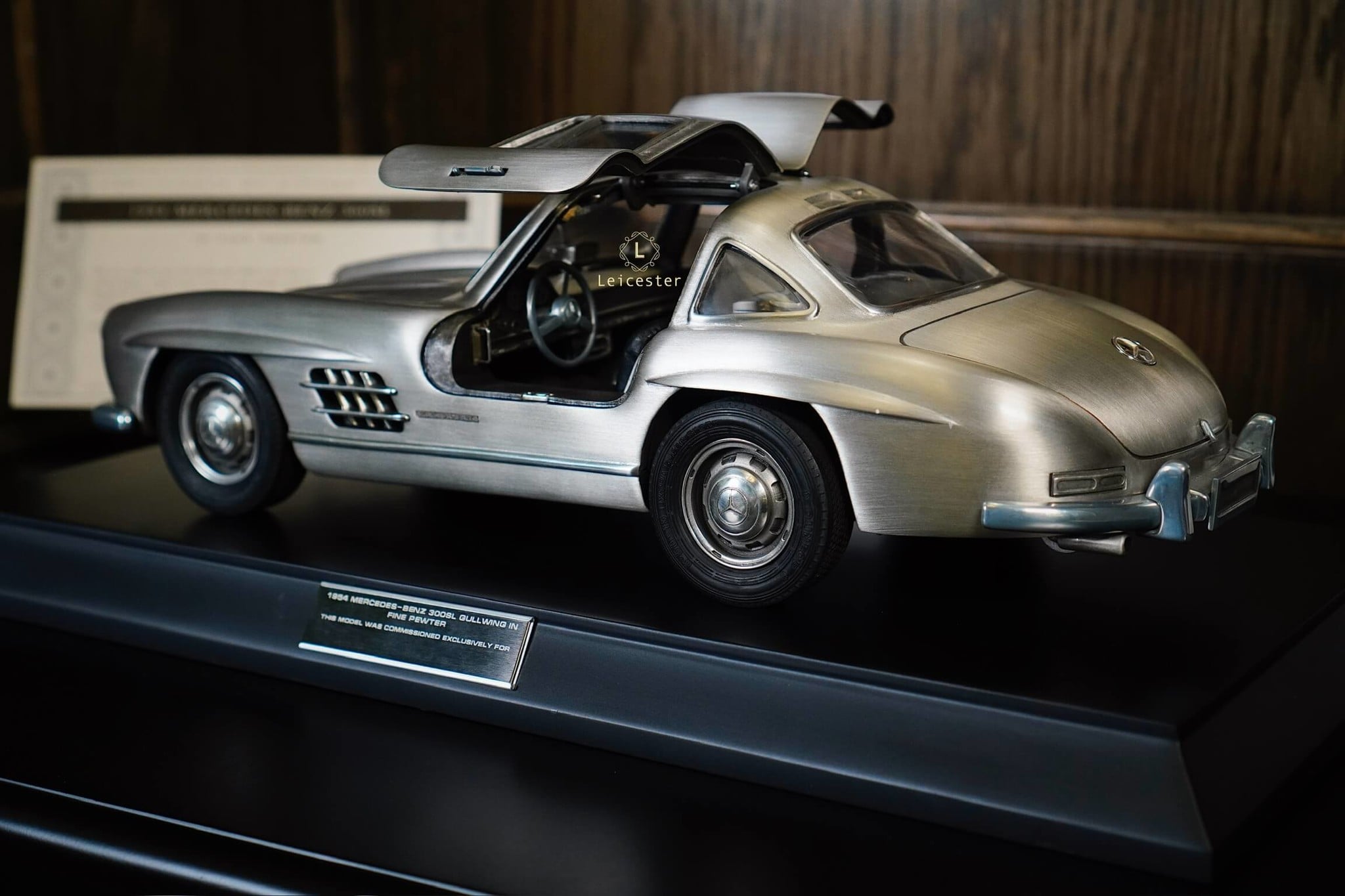 Chiếc M.Benz 300SL Gullwing cổ điển đã được tái tạo thành một mẫu xe bằng thiếc đặc biệt, đưa mô hình bằng thiếc lên một tầm cao mới về sự sang trọng và lộng lẫy.