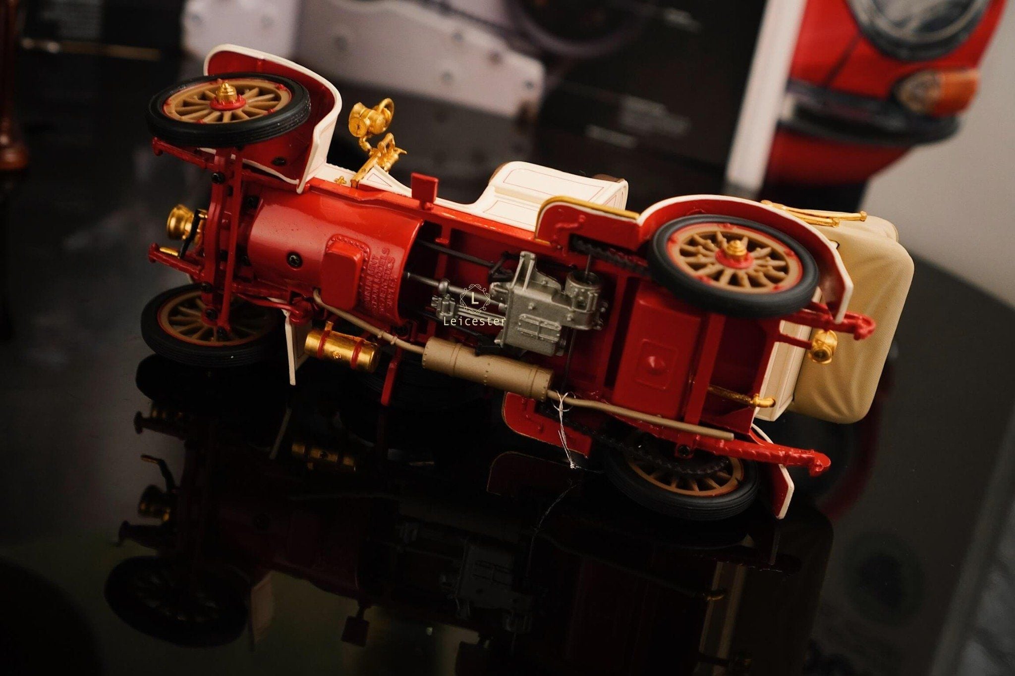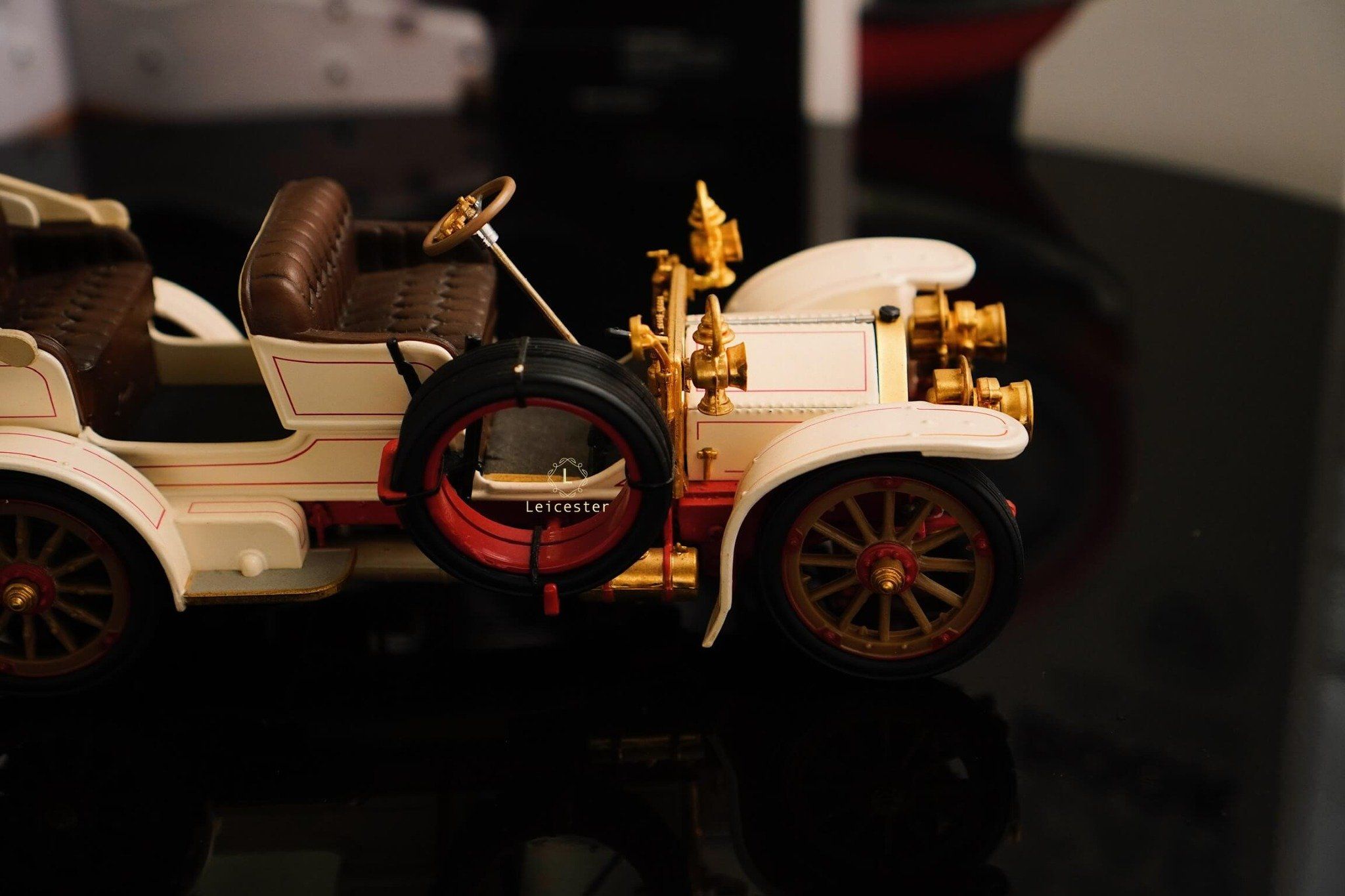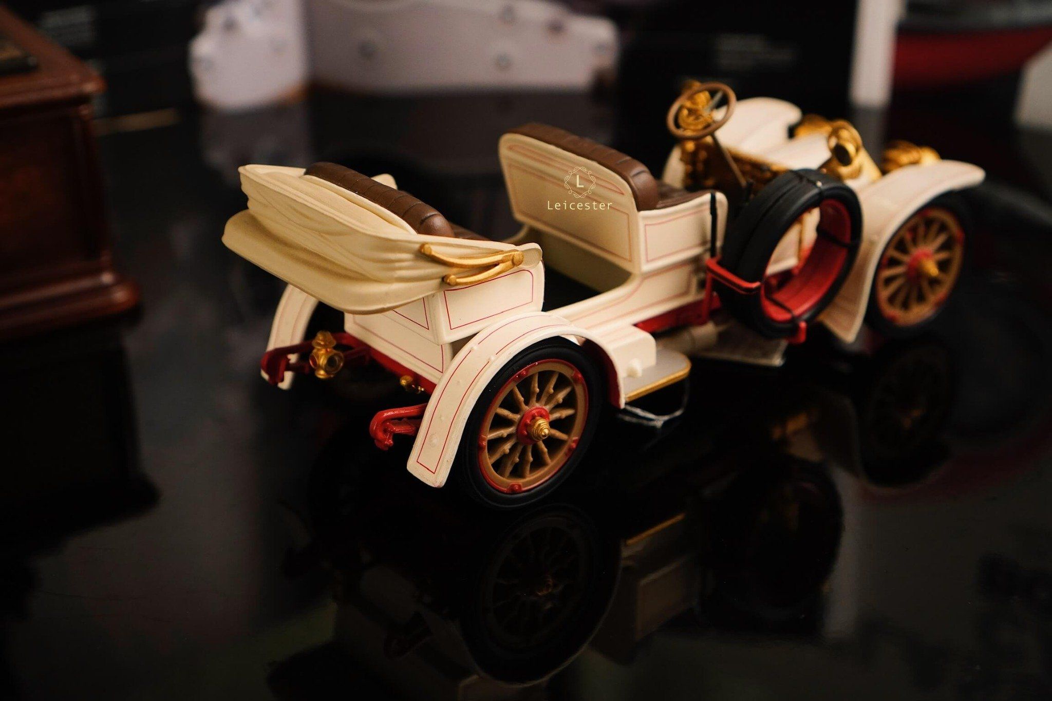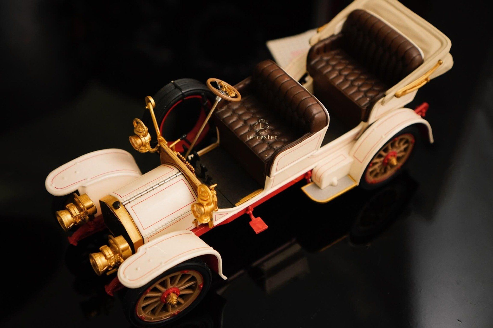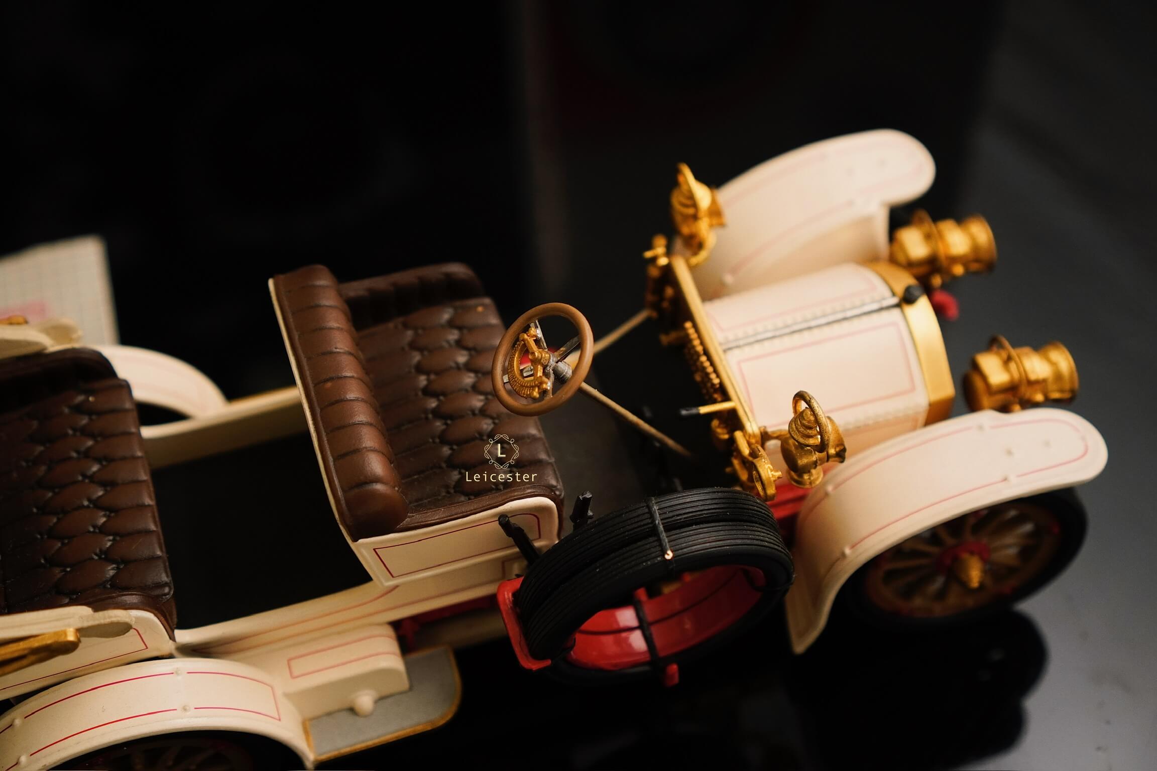 Chiếc xe khoác lên mình màu trắng ngà cổ điển, nhấn nhá chi tiết vàng đồng ánh sáng, gợi nhớ những buổi diễu hành quý tộc đầu thế kỷ 20. Từ vô-lăng, ghế da, nắp capo cho đến bộ vành bánh xe, mọi chi tiết đều được Franklin Mint tái hiện chuẩn xác, khiến chiếc xe trở thành một tác phẩm di sản xe hơi huyền thoại.