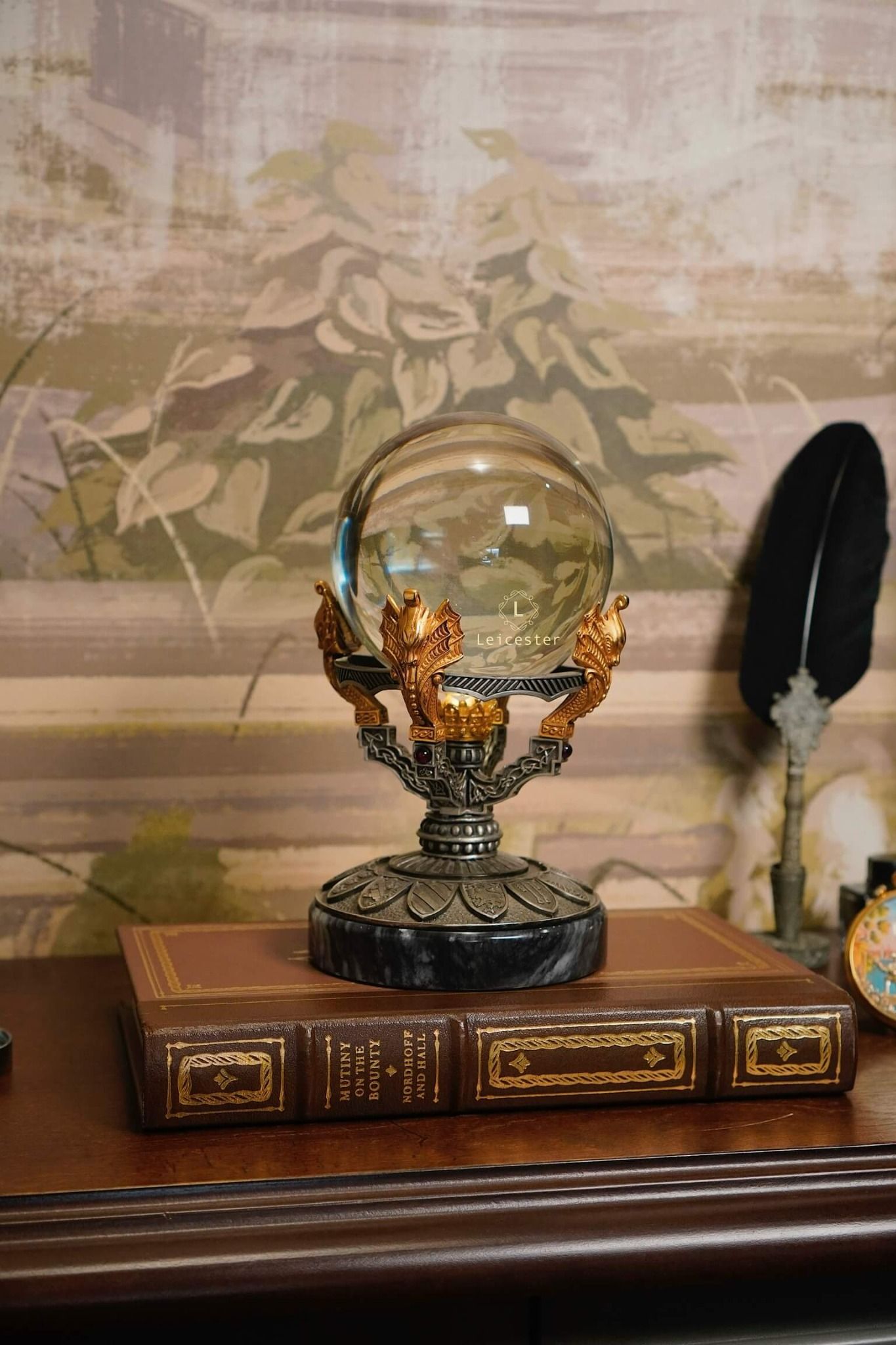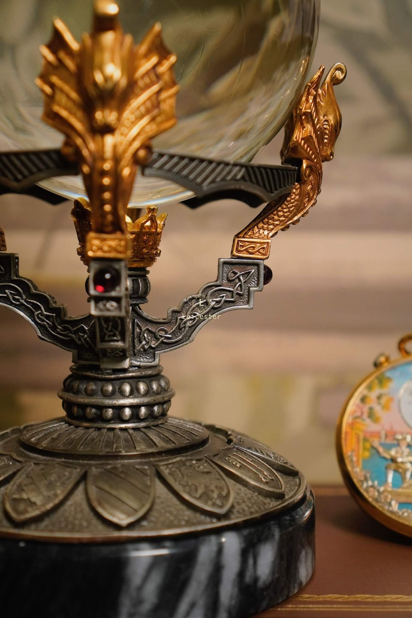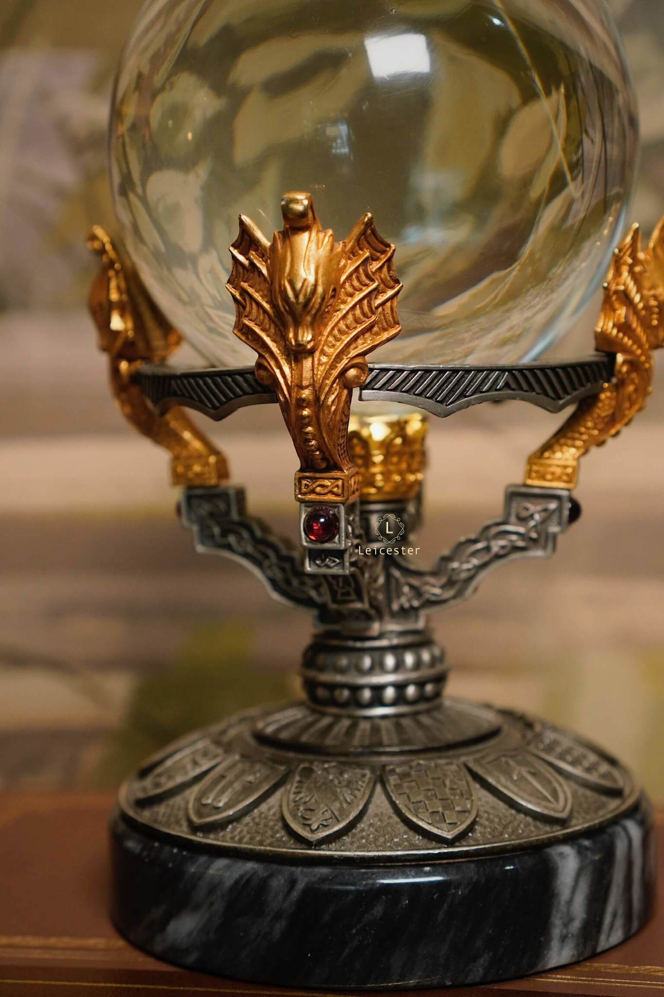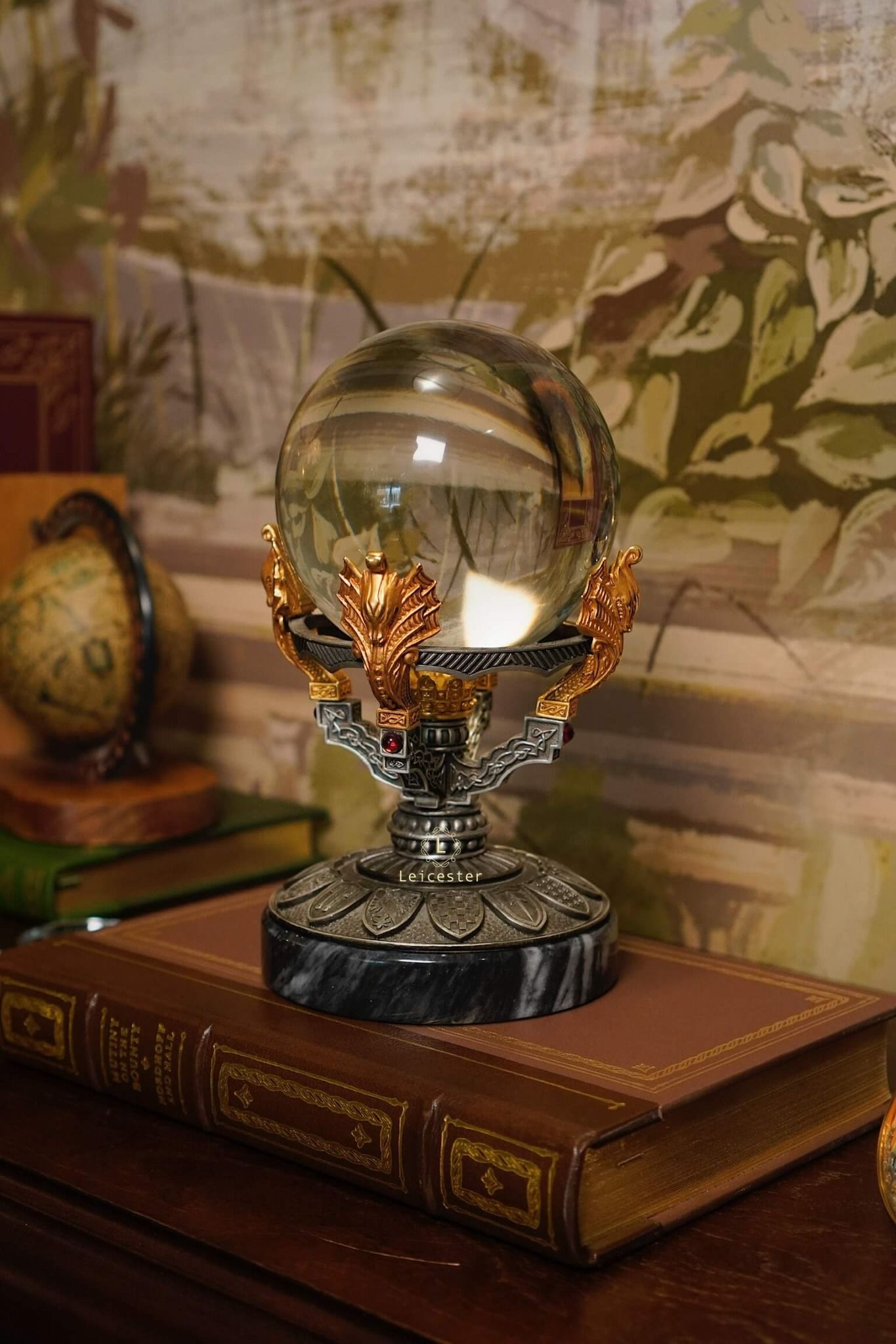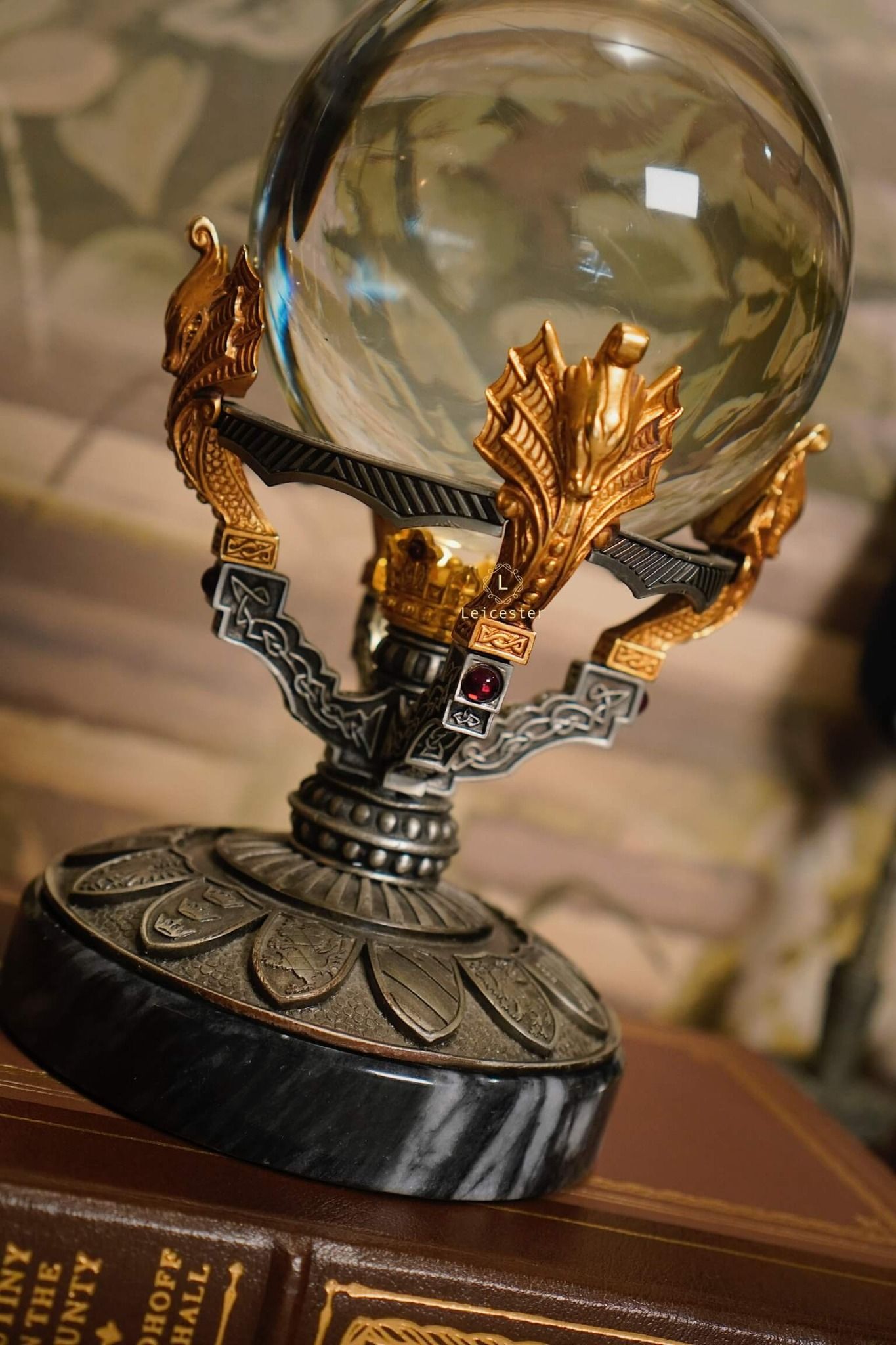 Merlin’s Crystal Ball làm bằng thủy tinh pha lê lấp lánh, được nâng đỡ bởi bốn con rồng - biểu tượng huy hiệu của Nhà Pendragon. Phía dưới quả cầu là chiếc vương miện vàng của Arthur kết hợp cùng những viên pha lê đỏ rực được đính phía dưới mỗi con rồng. Phần đế được làm bằng thiếc, mô tả về chiếc khiên của Arthur cũng như của 12 Hiệp sĩ Bàn tròn huyền thoại và được đặt trên chiếc đế trưng bày bằng đá cẩm thạch. Tất cả điều đó đã giúp Merlin’s Crystal Ball toát lên vẻ đẹp đầy mê hoặc, lãng mạn và ma thuật của Camelot.