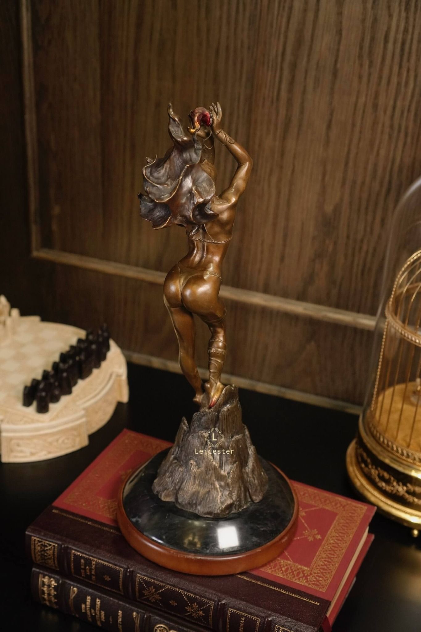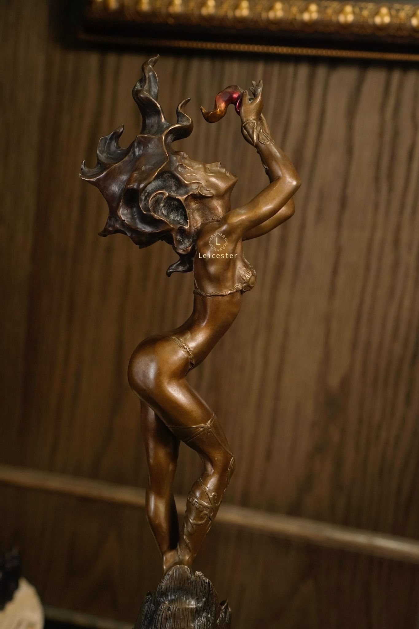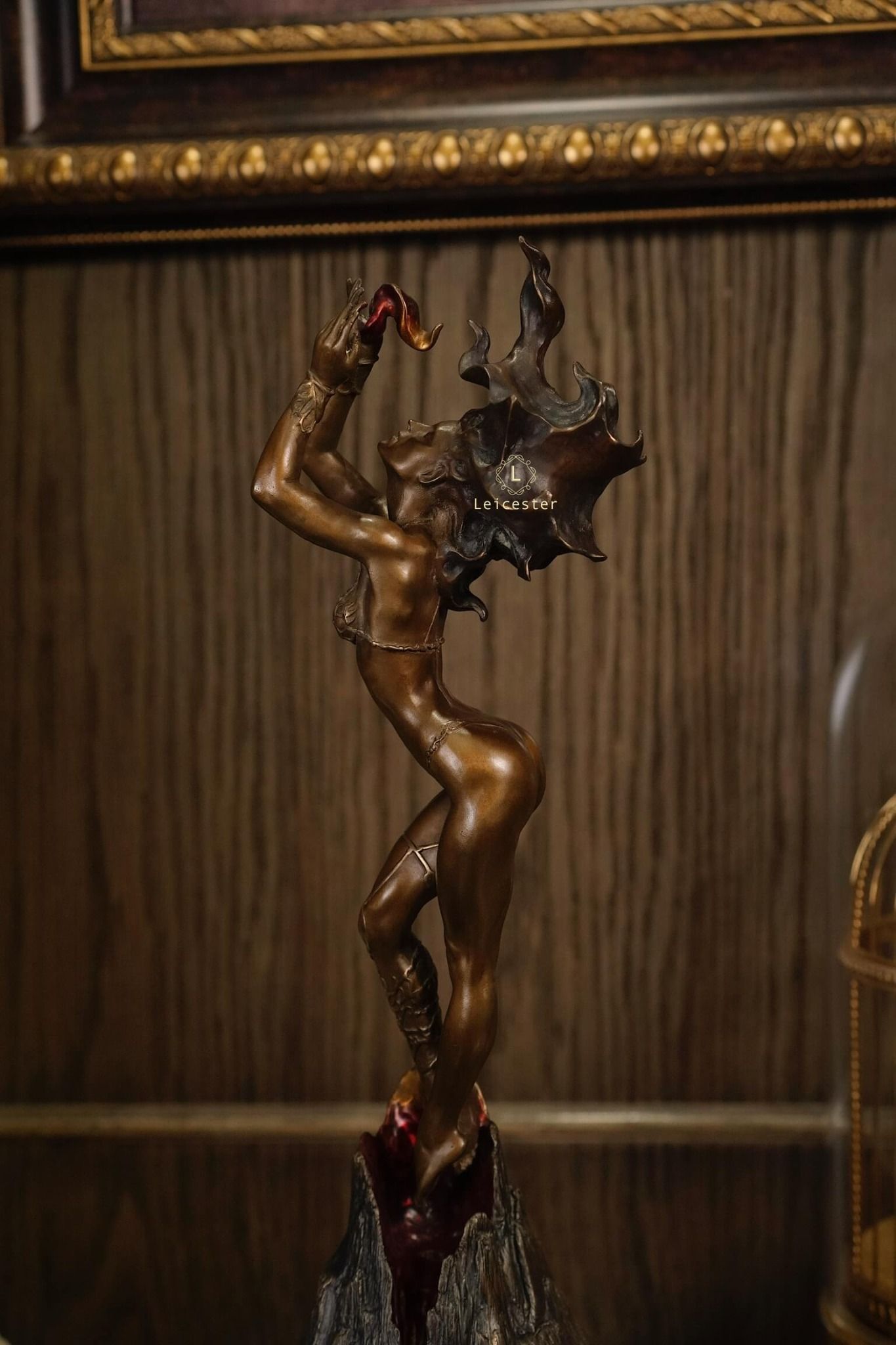 Bức tranh nghệ thuật này đã trở thành một kiệt tác chân thực, sống động và bền bỉ khi được nghệ nhân lành nghề của Franklin Mint tái tạo. Với chất liệu đồng nguyên khối đúc nóng, được tô màu thủ công và đánh bóng lớp gỉ tạo nên nét cổ điển cho một “Mistress Of Fire by Boris”. Bức tượng đồng được đặt trên bệ bằng đá cẩm thạch bọc gỗ có khắc dòng chữ “Mistress of Fire by Boris”.