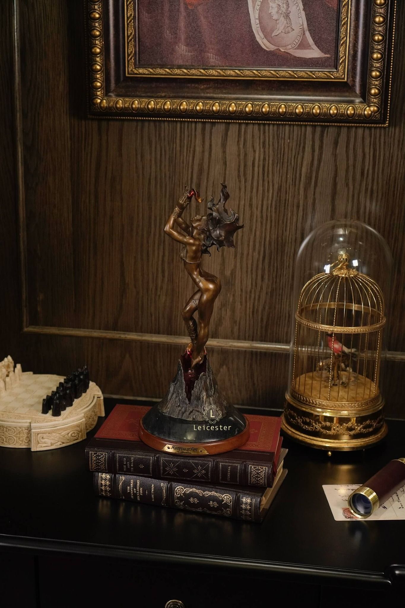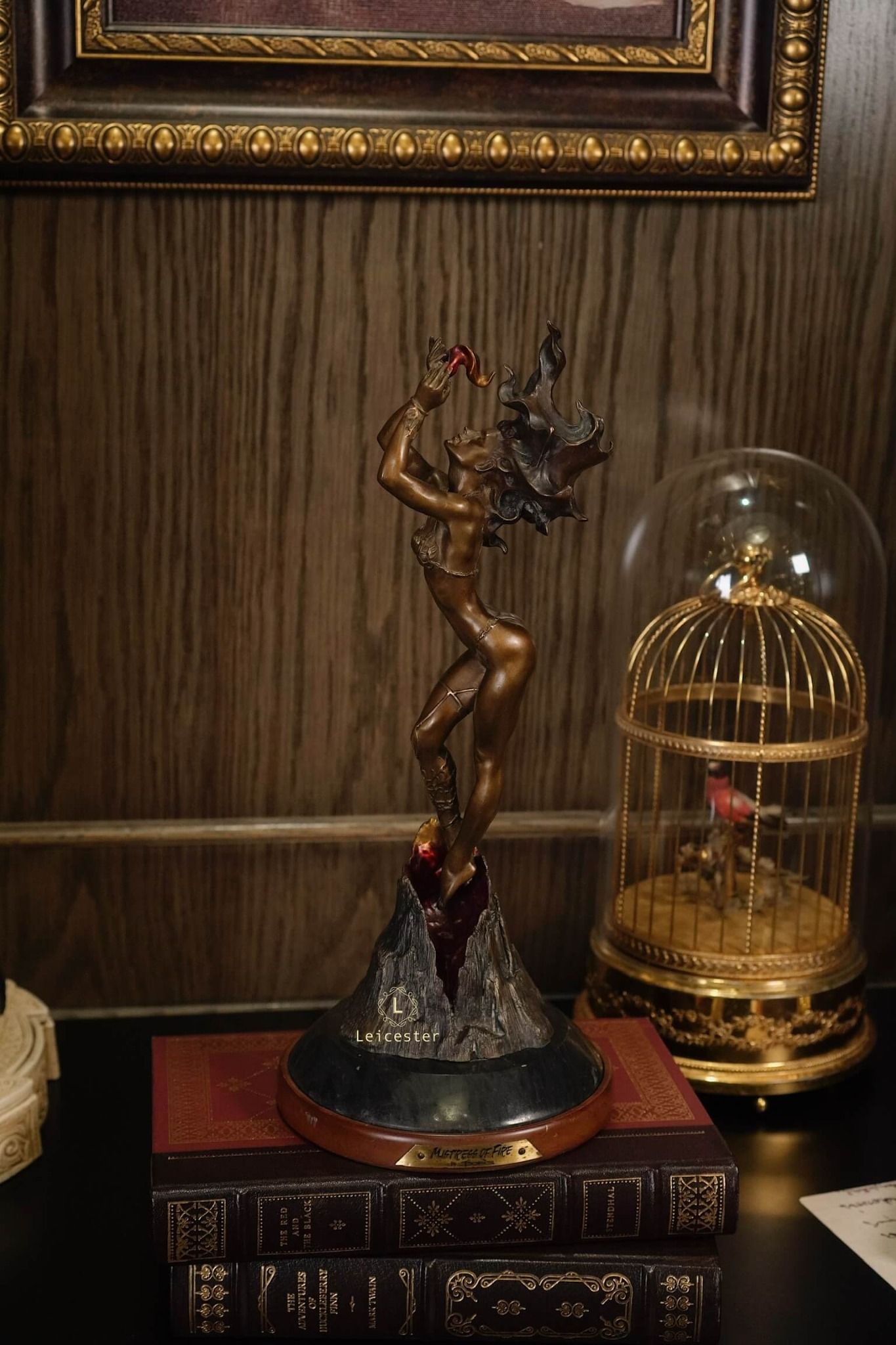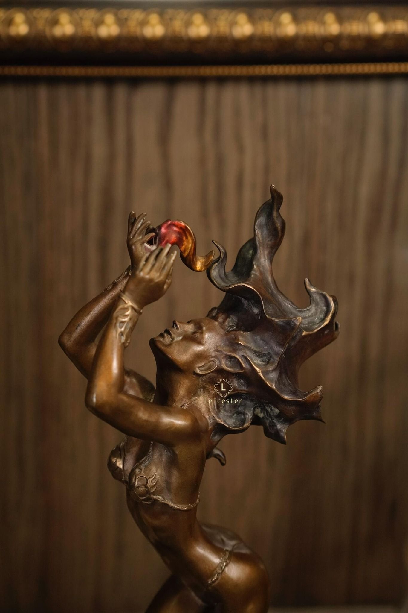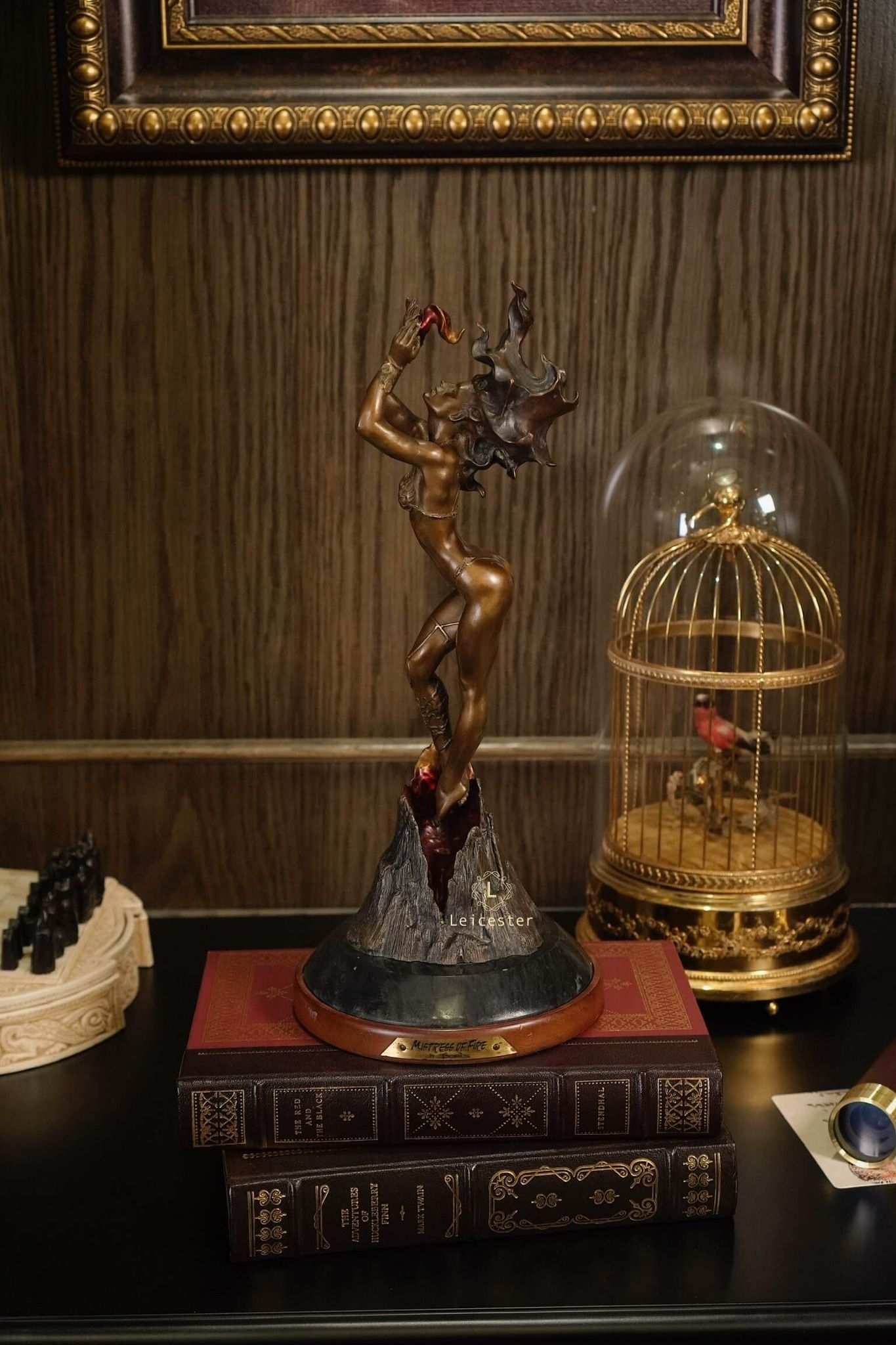 Bức tranh nghệ thuật này đã trở thành một kiệt tác chân thực, sống động và bền bỉ khi được nghệ nhân lành nghề của Franklin Mint tái tạo. Với chất liệu đồng nguyên khối đúc nóng, được tô màu thủ công và đánh bóng lớp gỉ tạo nên nét cổ điển cho một “Mistress Of Fire by Boris”. Bức tượng đồng được đặt trên bệ bằng đá cẩm thạch bọc gỗ có khắc dòng chữ “Mistress of Fire by Boris”.