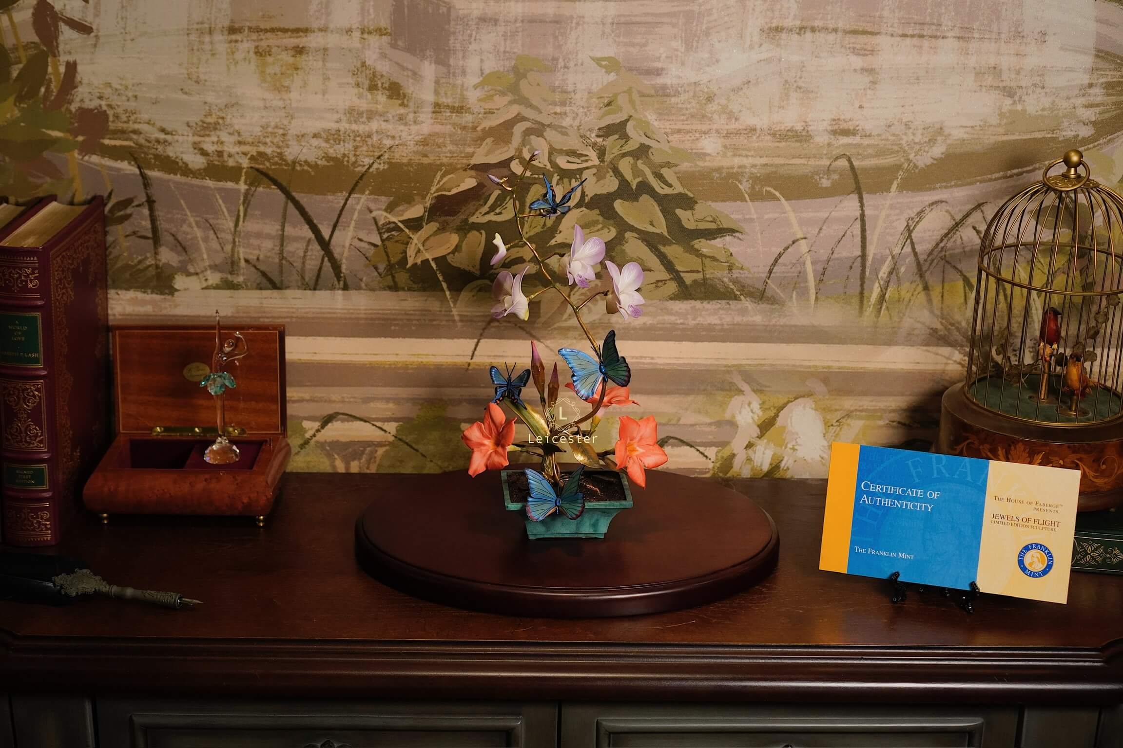 Là phiên bản giới hạn được tạo nên để lưu giữ vẻ đẹp khoáng đạt của tự nhiên trong một hình hài vĩnh cửu, do The Franklin Mint chế tác dưới sự ủy quyền của House of Fabergé - huyền thoại thủ công từng phục vụ Hoàng gia Nga với những kiệt tác xa xỉ vượt thời gian. Mô hình tái hiện khoảnh khắc “thiên nhiên thức giấc” với bướm Blue Morpho tung cánh giữa hoa lan thanh khiết và hoa mandevilla hồng rực – những biểu tượng của sự tái sinh, may mắn, thịnh vượng và nét thanh tao của tâm hồn.