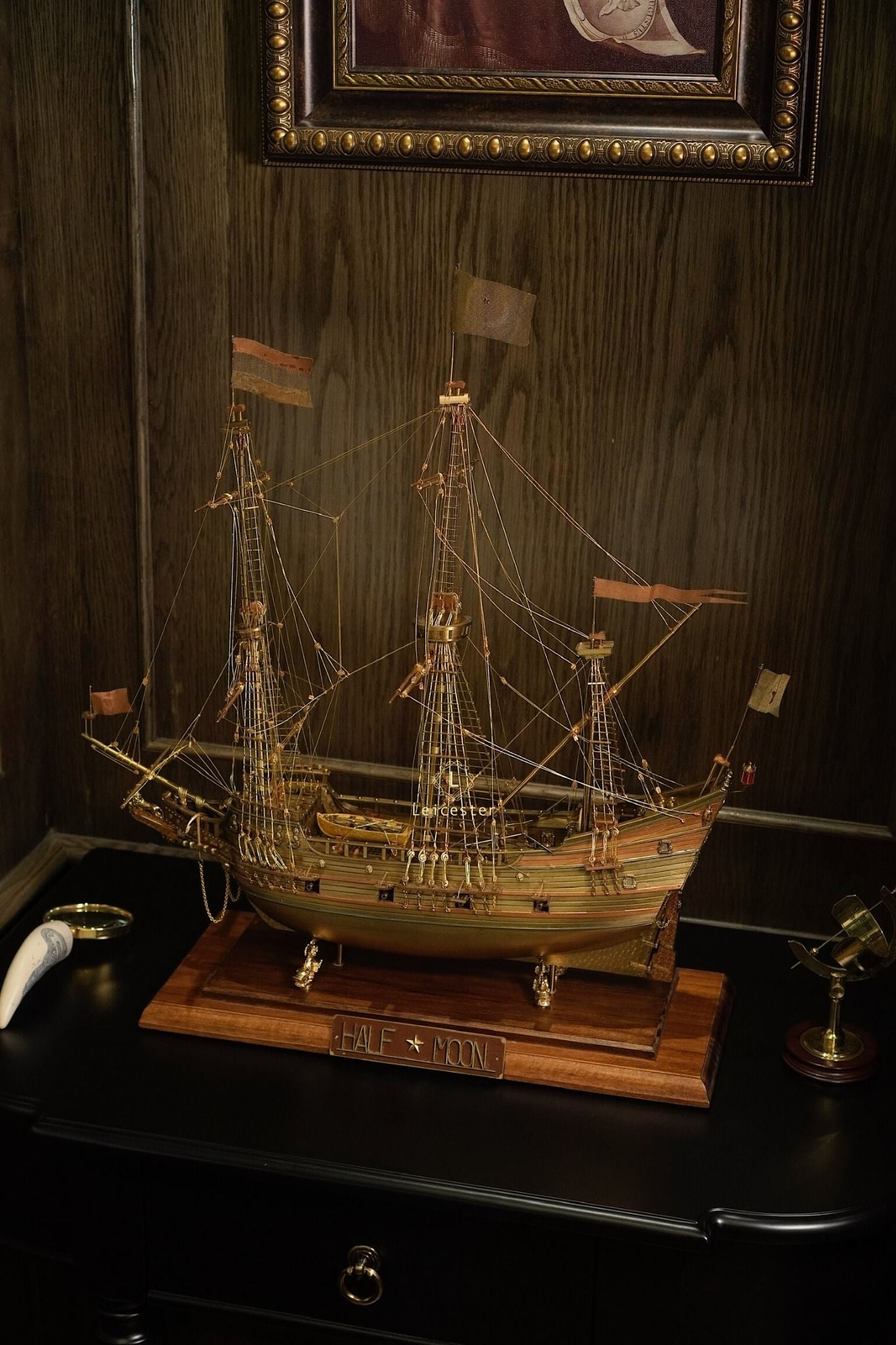 Mô hình tàu Half Moon là tác phẩm được chế tác thủ công tinh xảo và tỉ mỉ tới từng chi tiết bởi nghệ nhân Takashi Yagi, dựa trên con tàu Half Moon của thuyền trưởng Henry Hudson.
