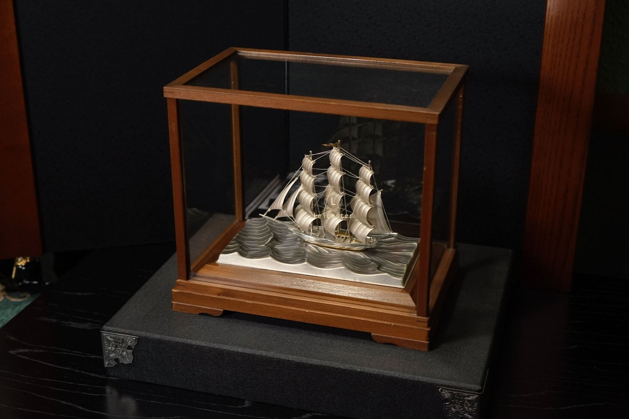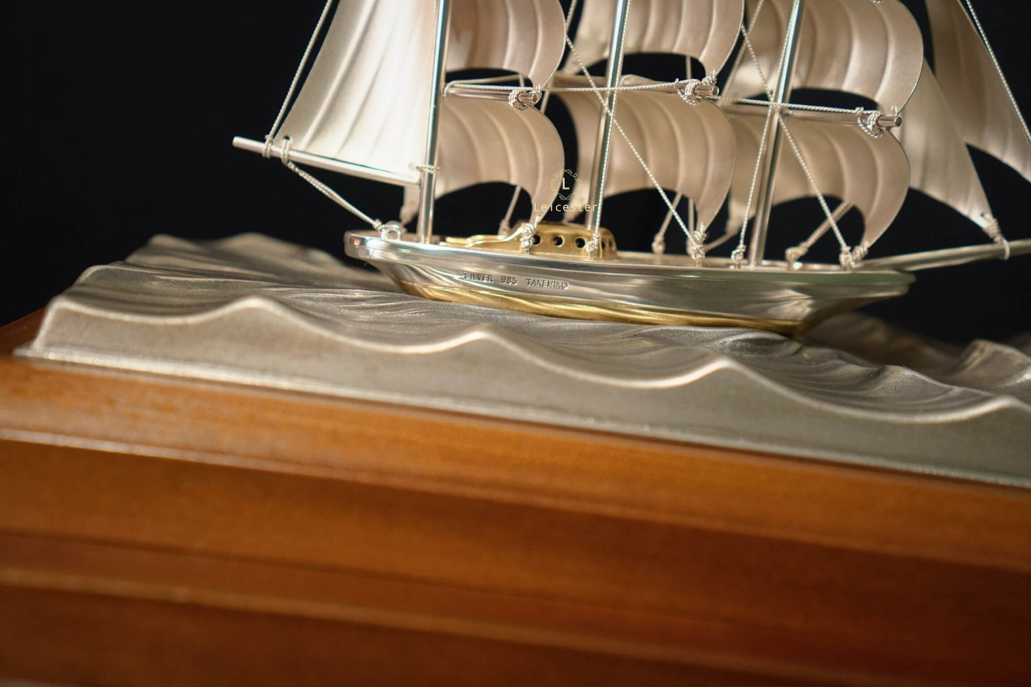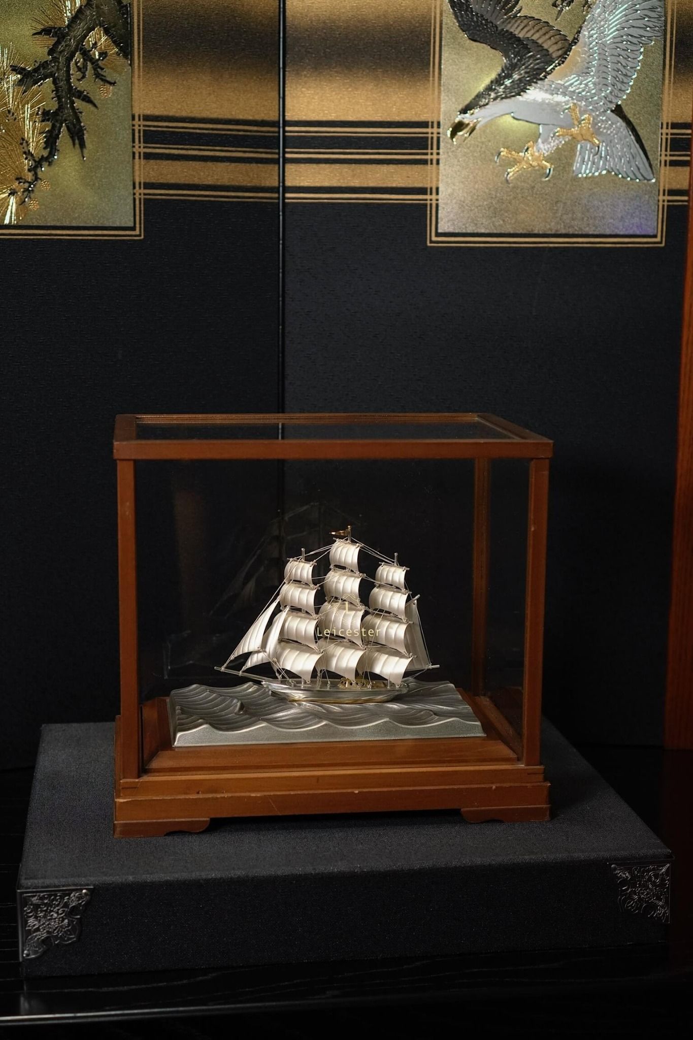 Thuyền được đặt trong một hộp kính khung gỗ sang trọng, tên nghệ nhân và chất liệu được khắc trên mạn thuyền. Với thiết kế đẹp mắt và tinh tế này của Takehiko, thích hợp trưng bày để bàn hoặc trong phòng làm việc, mang ý nghĩa thuận buồm xuôi gió trong công việc cũng như may mắn, thuận lợi trong kinh doanh.