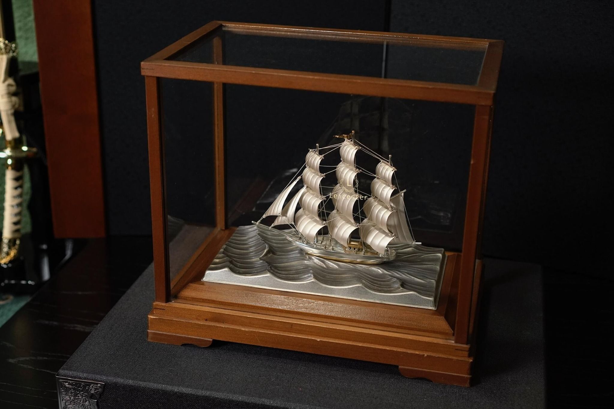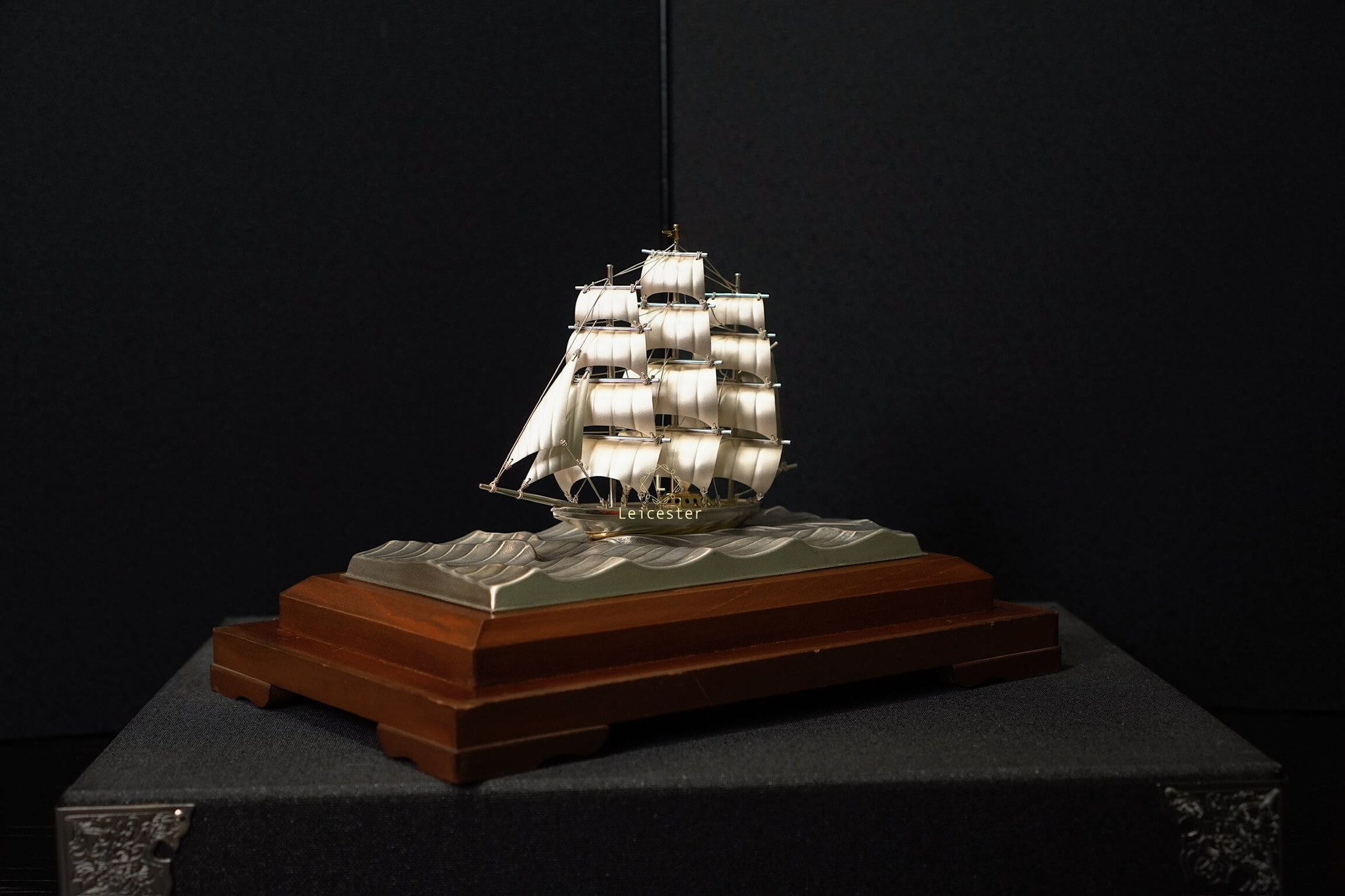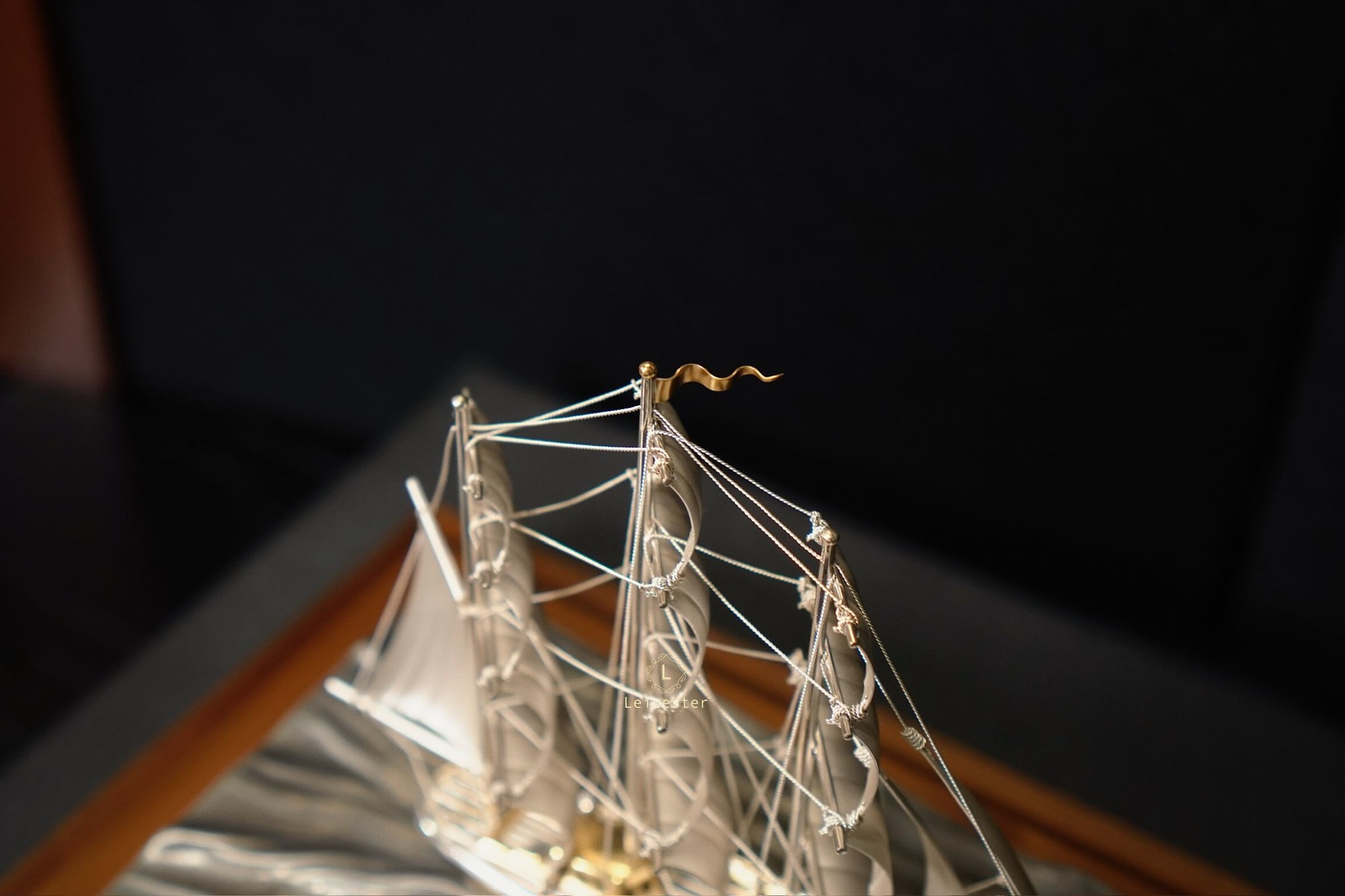 Thuyền được đặt trong một hộp kính khung gỗ sang trọng, tên nghệ nhân và chất liệu được khắc trên mạn thuyền. Với thiết kế đẹp mắt và tinh tế này của Takehiko, thích hợp trưng bày để bàn hoặc trong phòng làm việc, mang ý nghĩa thuận buồm xuôi gió trong công việc cũng như may mắn, thuận lợi trong kinh doanh.