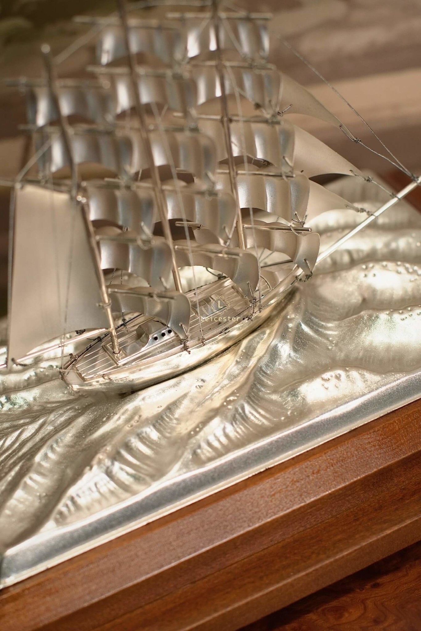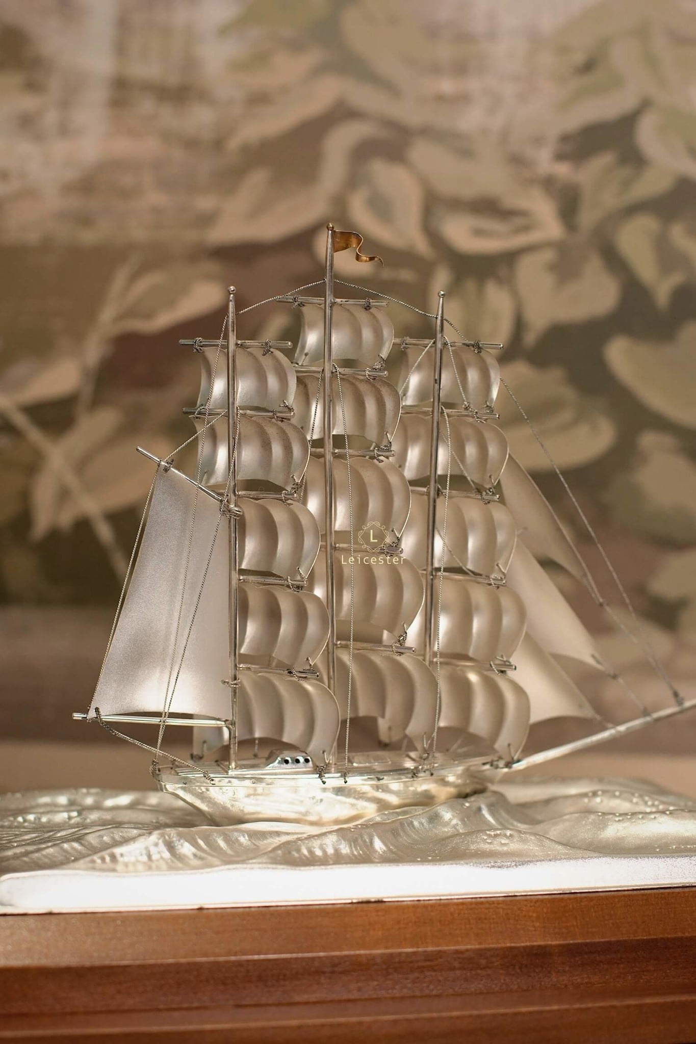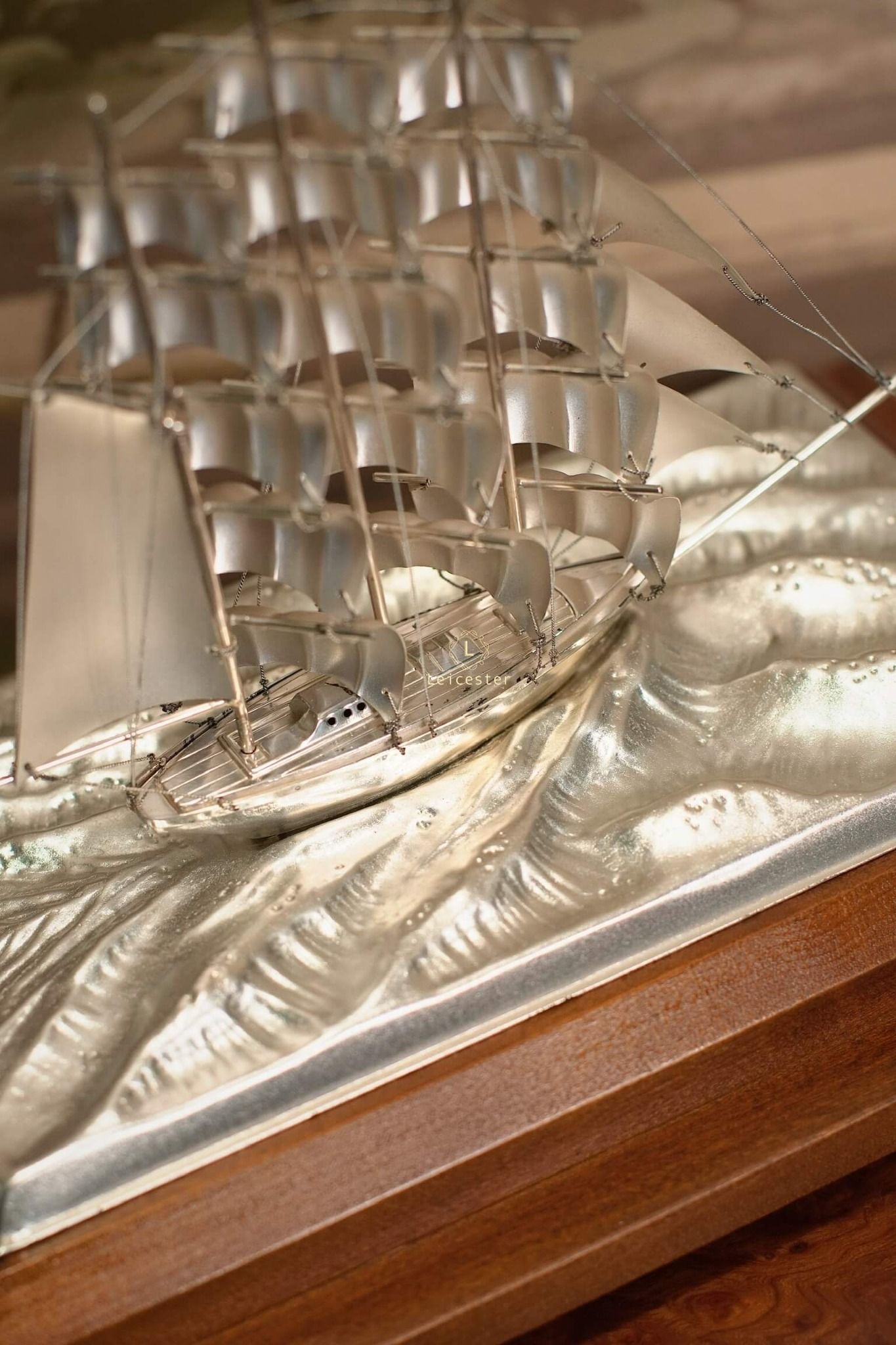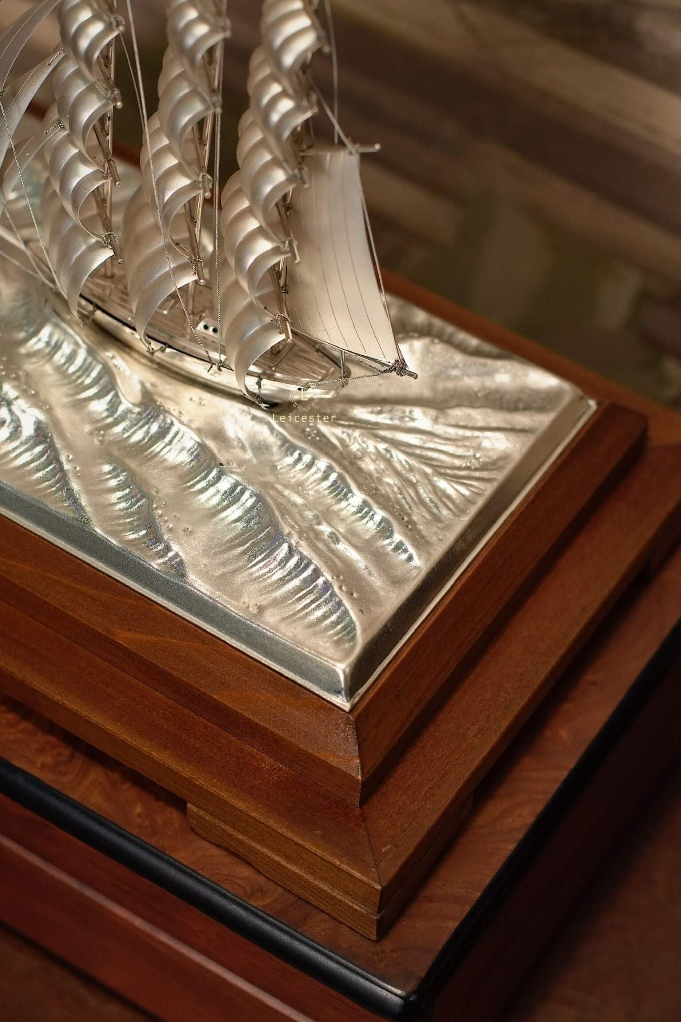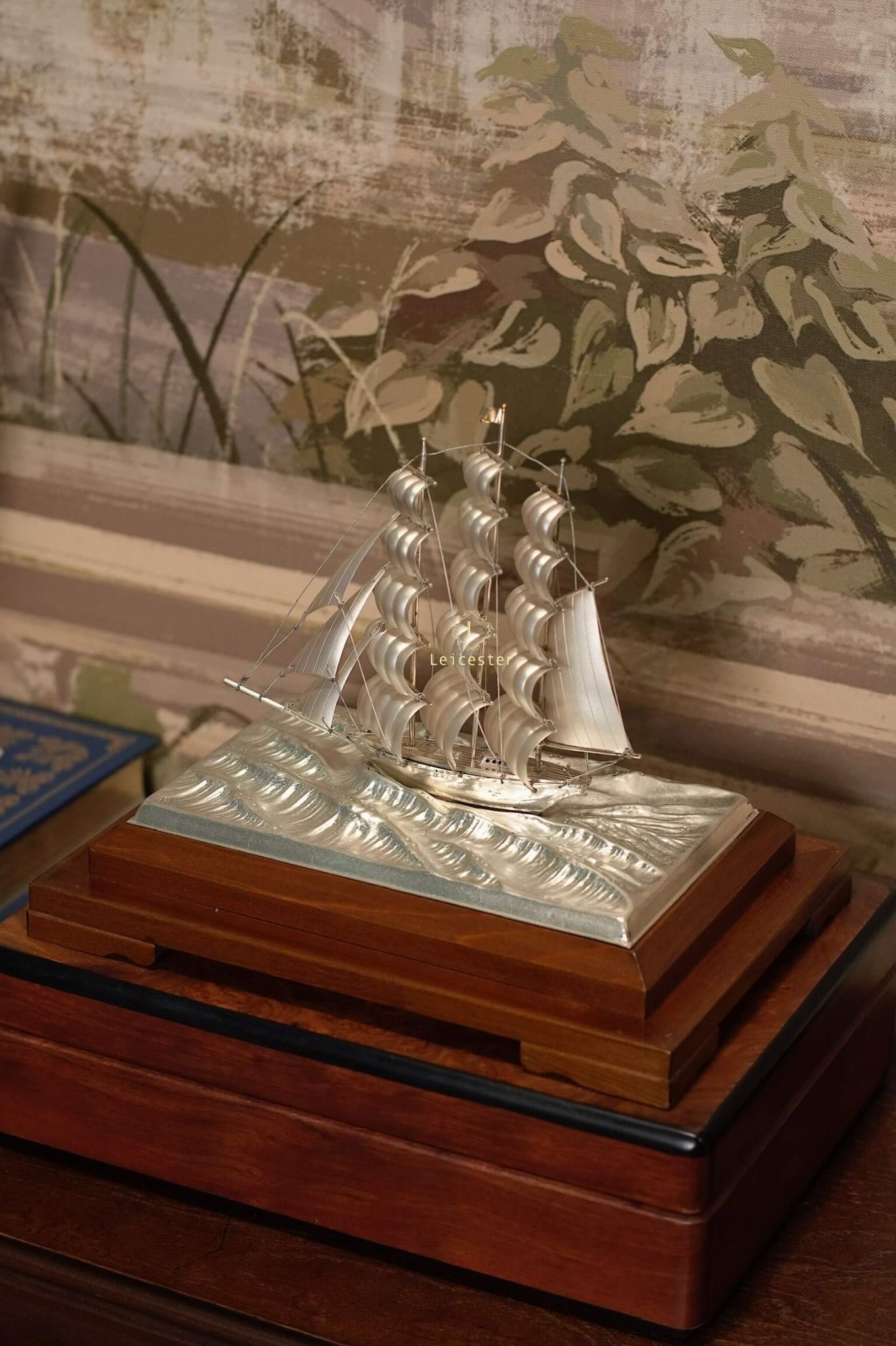 Thuyền được đặt trong một hộp kính khung gỗ sang trọng, chất liệu được khắc trên mạn thuyền. Với thiết kế đẹp mắt và tinh tế này, thích hợp trưng bày để bàn hoặc trong phòng làm việc, mang ý nghĩa thuận buồm xuôi gió trong công việc cũng như may mắn, thuận lợi trong kinh doanh.