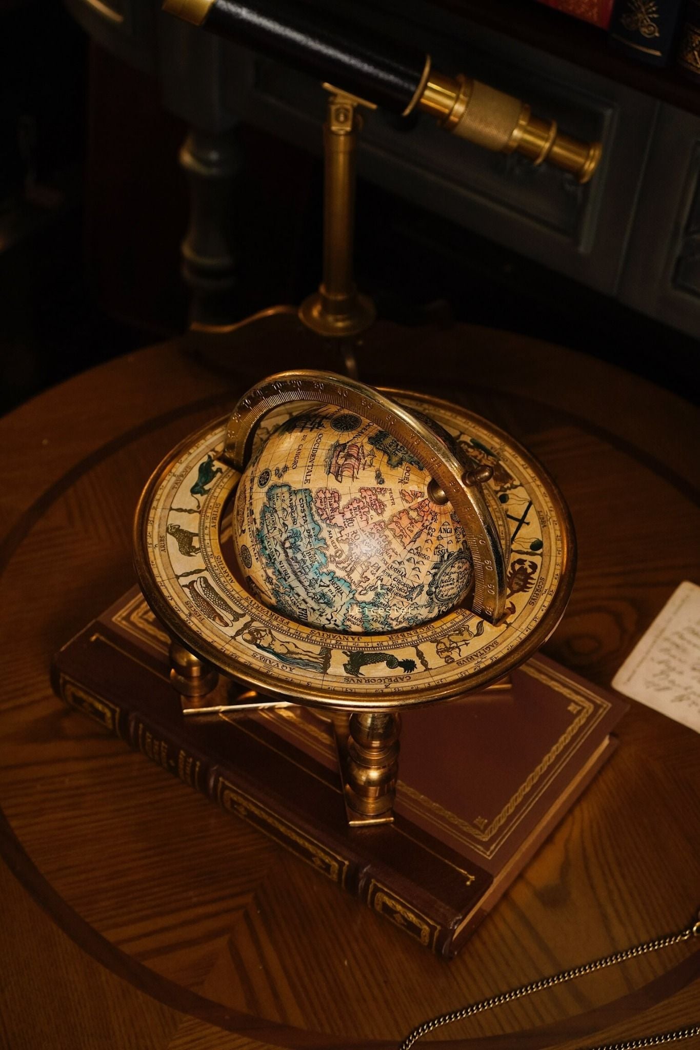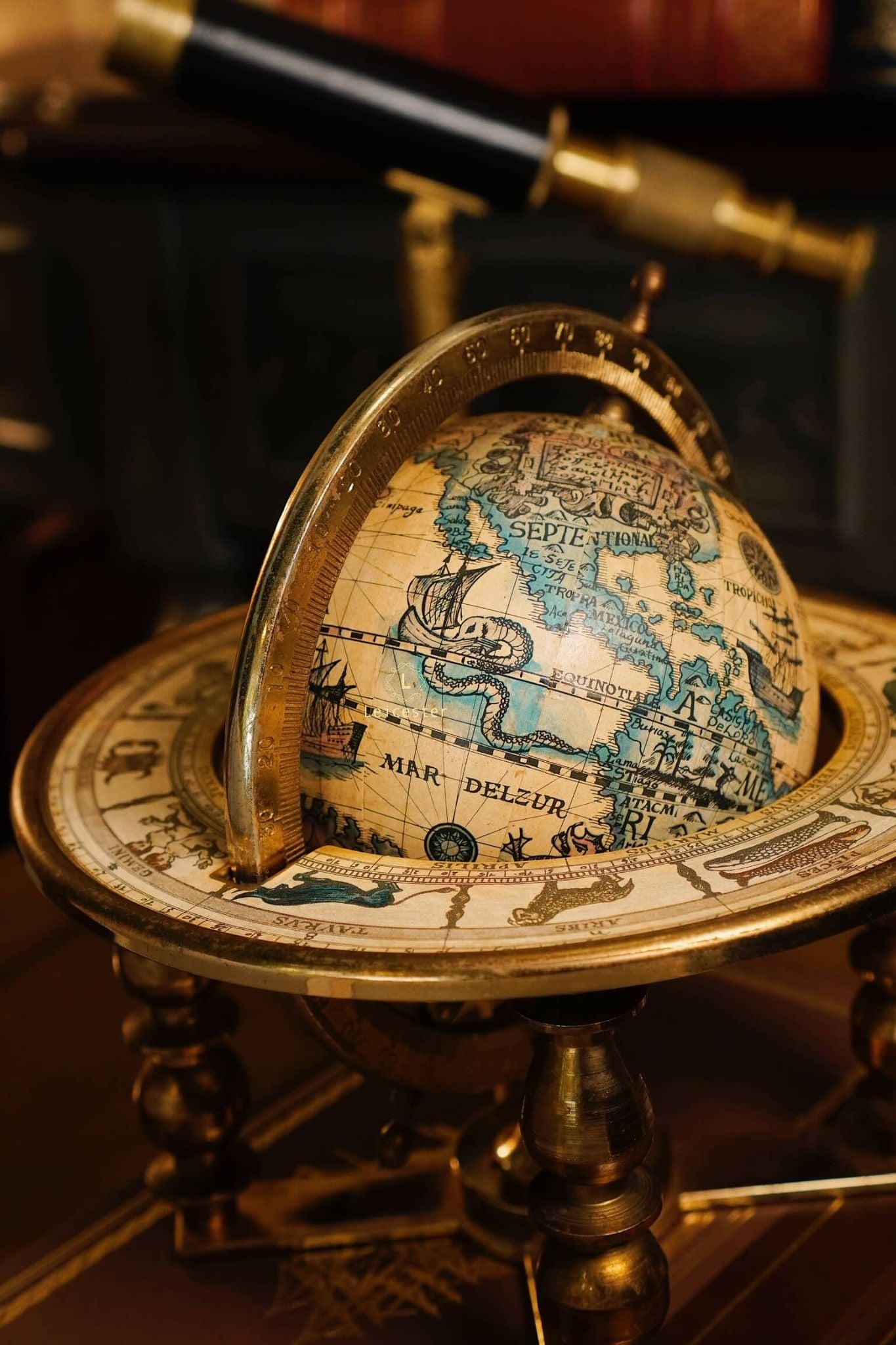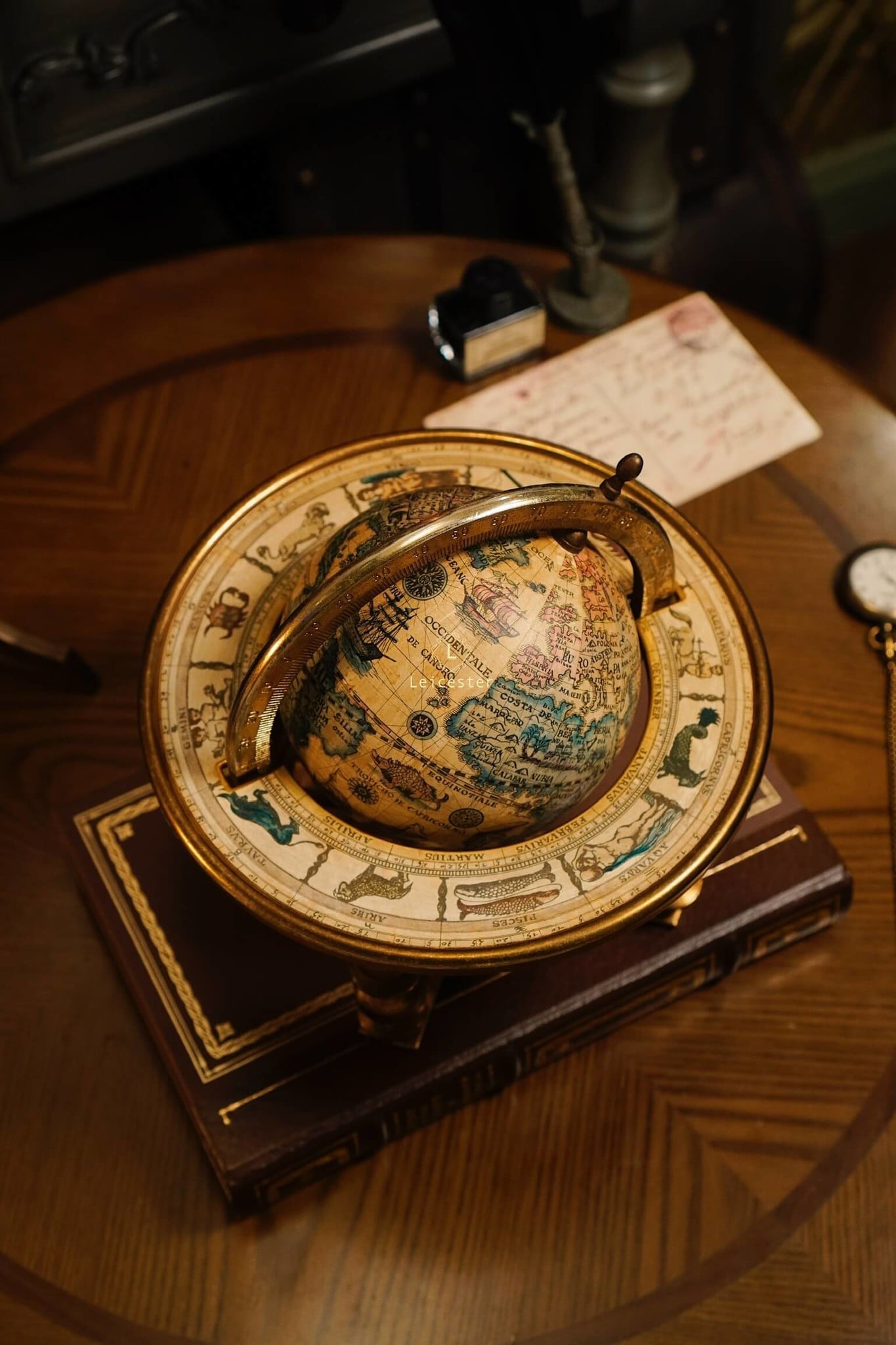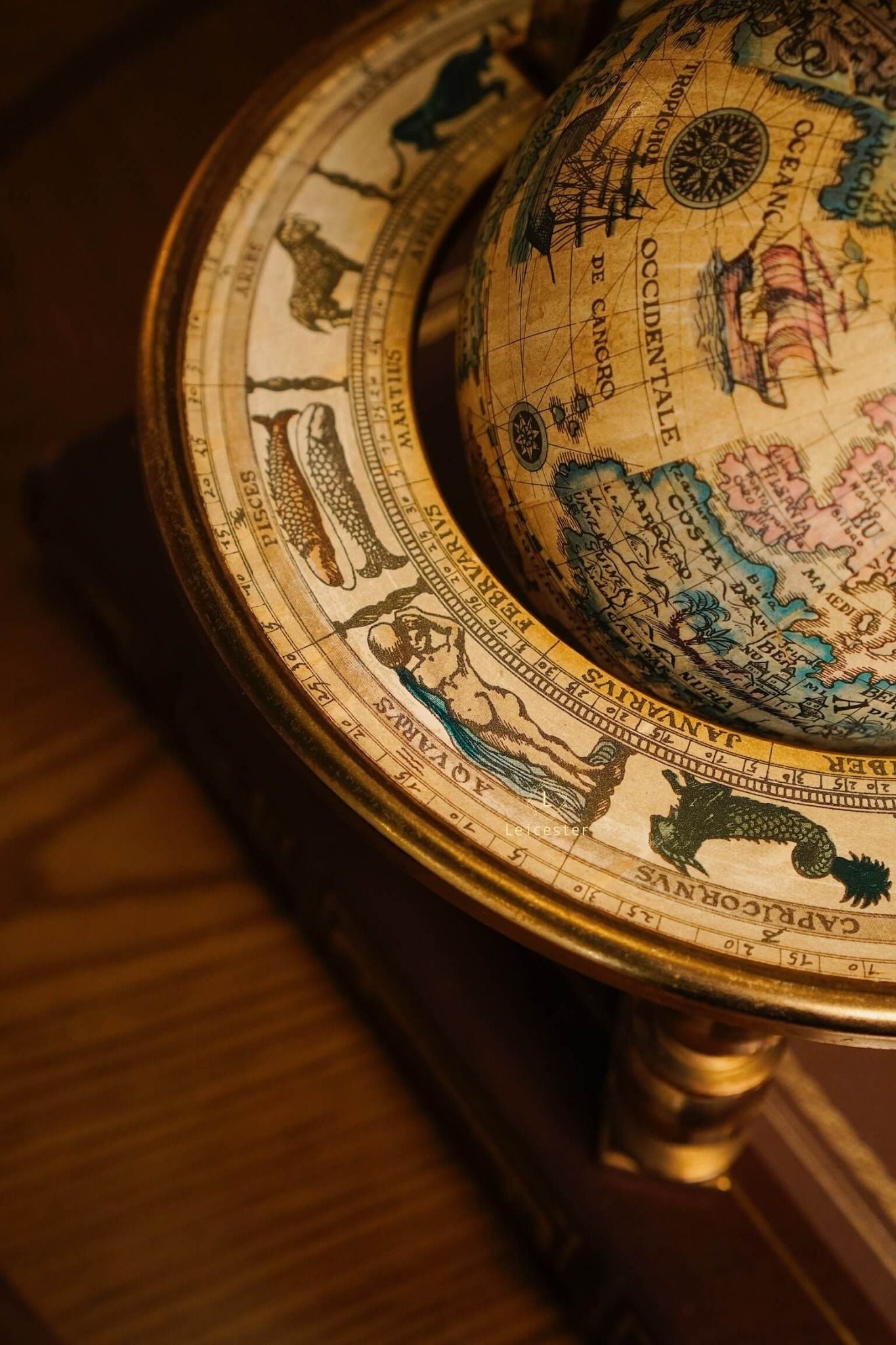 Quả địa cầu này là bản sao của một bản đồ địa cầu trong thế kỷ 17 (1650 - 1718) do Cha Coronelli thiết kế. Bản đồ địa cầu độc đáo của thế giới cũ này có các dấu hiệu và tháng hoàng đạo được in chìm ở vòng ngoài của giá đỡ.
