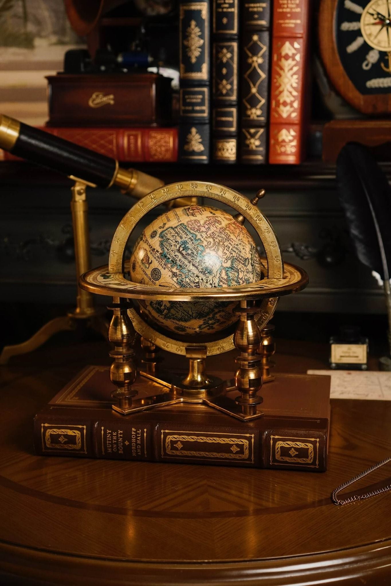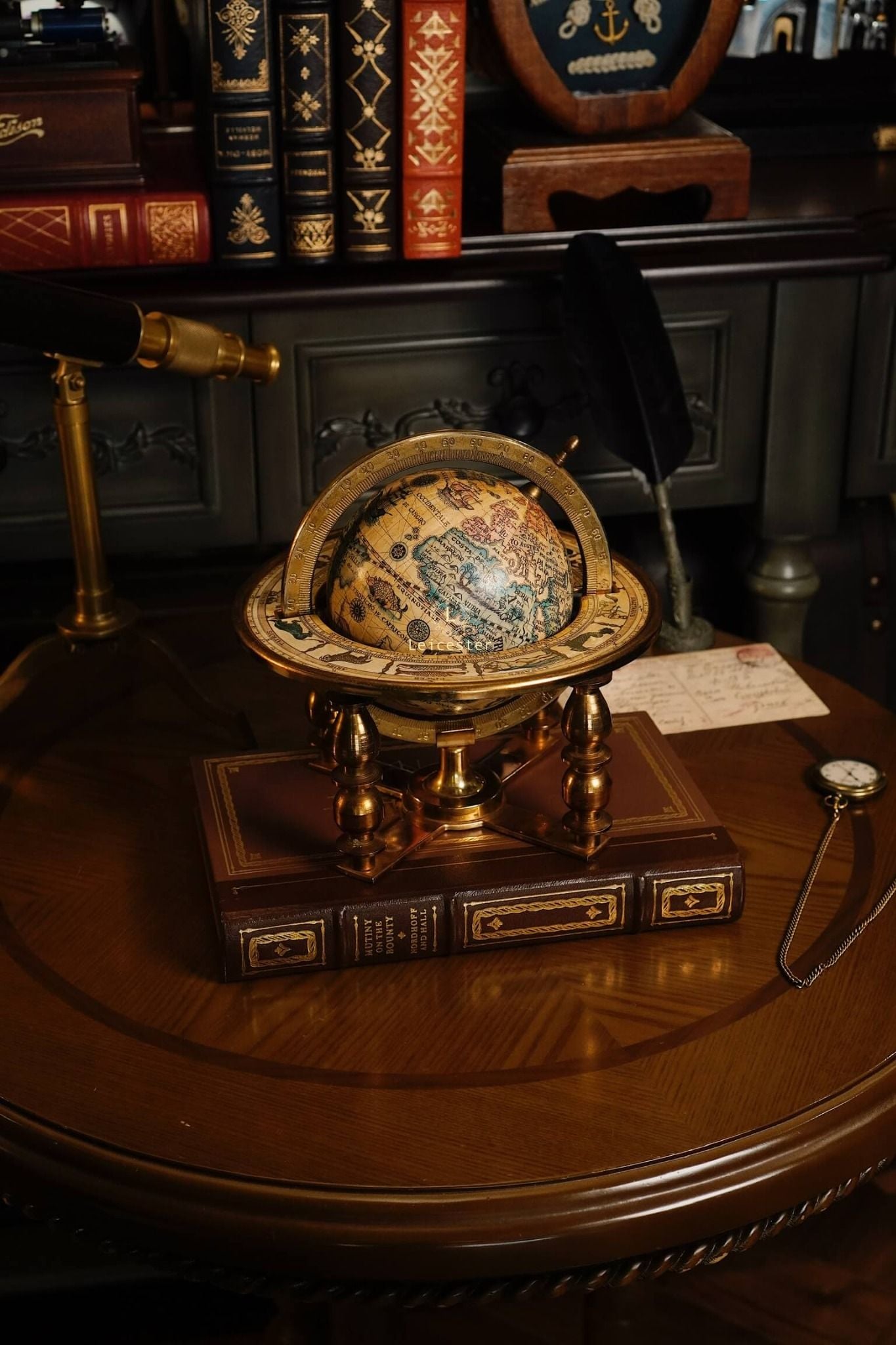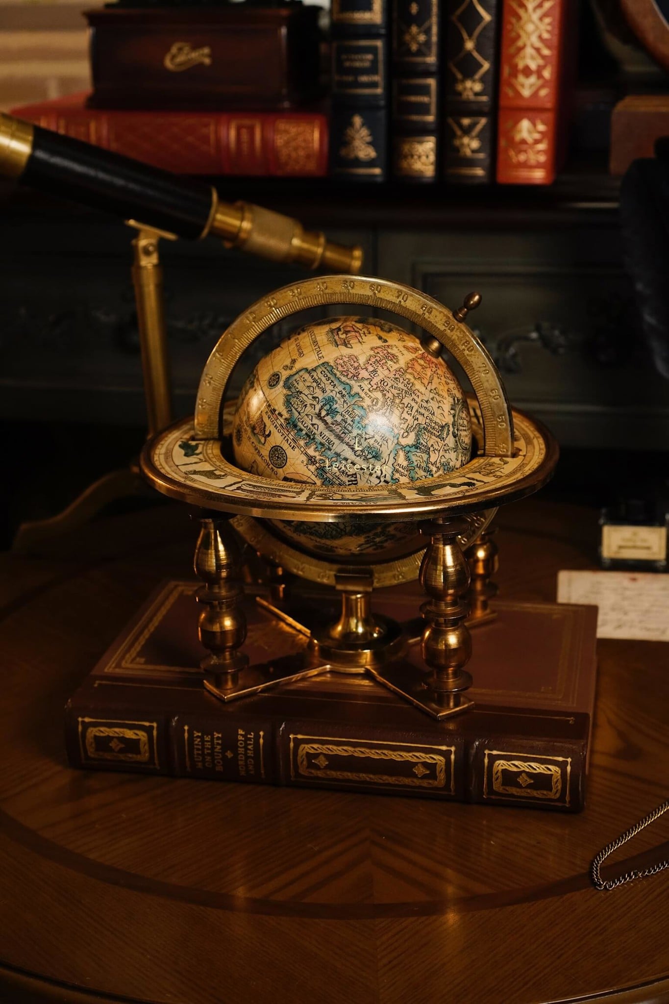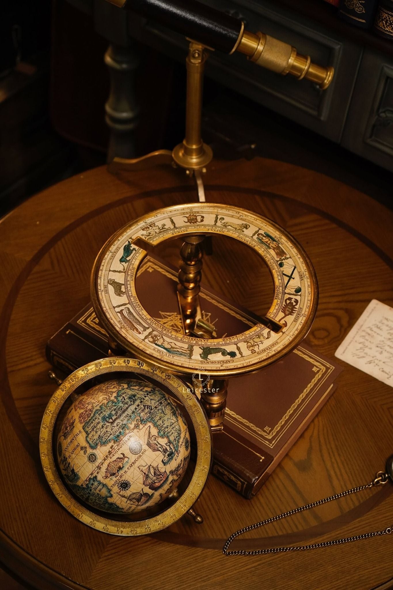 Quả địa cầu này là bản sao của một bản đồ địa cầu trong thế kỷ 17 (1650 - 1718) do Cha Coronelli thiết kế. Bản đồ địa cầu độc đáo của thế giới cũ này có các dấu hiệu và tháng hoàng đạo được in chìm ở vòng ngoài của giá đỡ.
