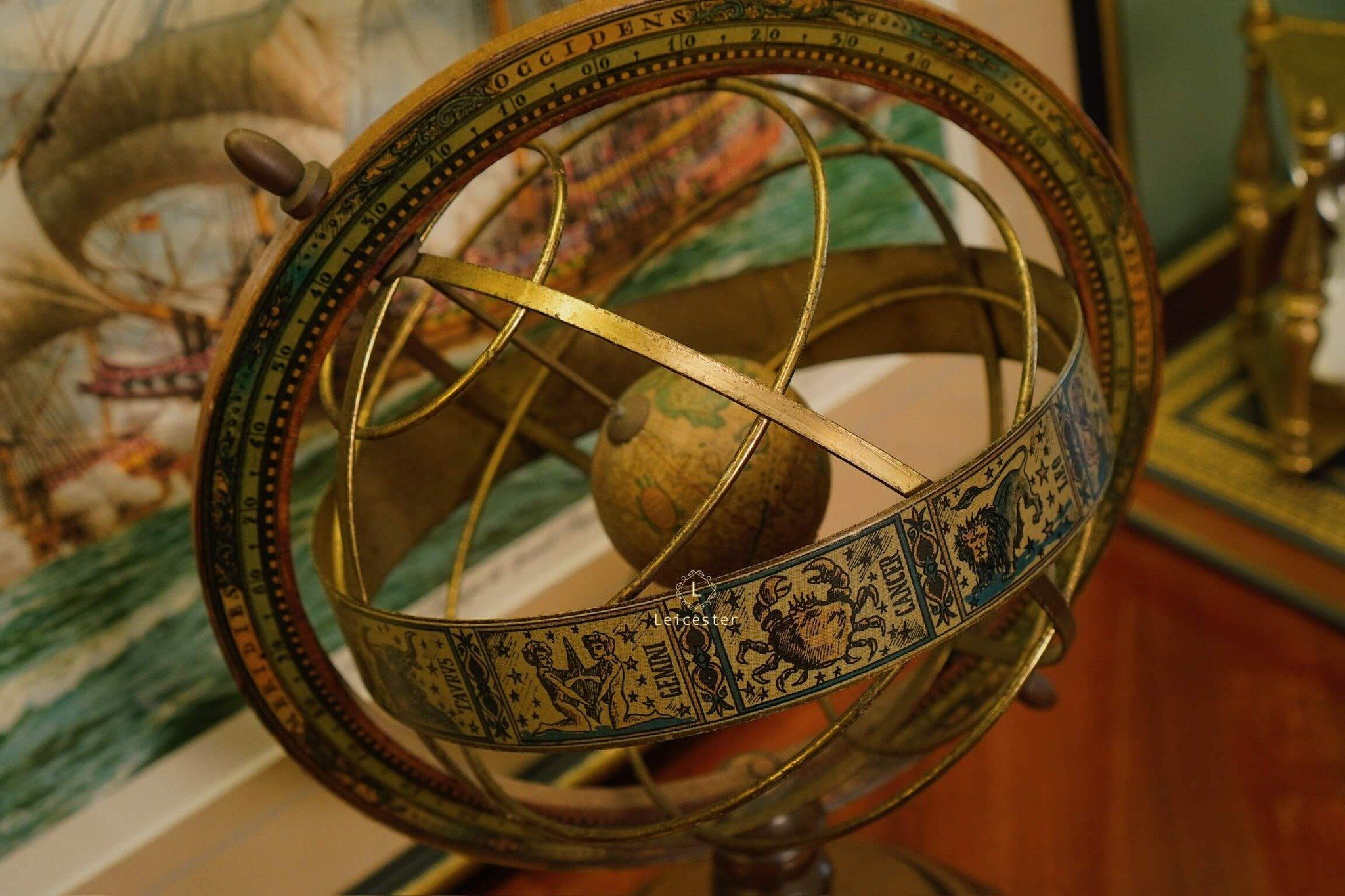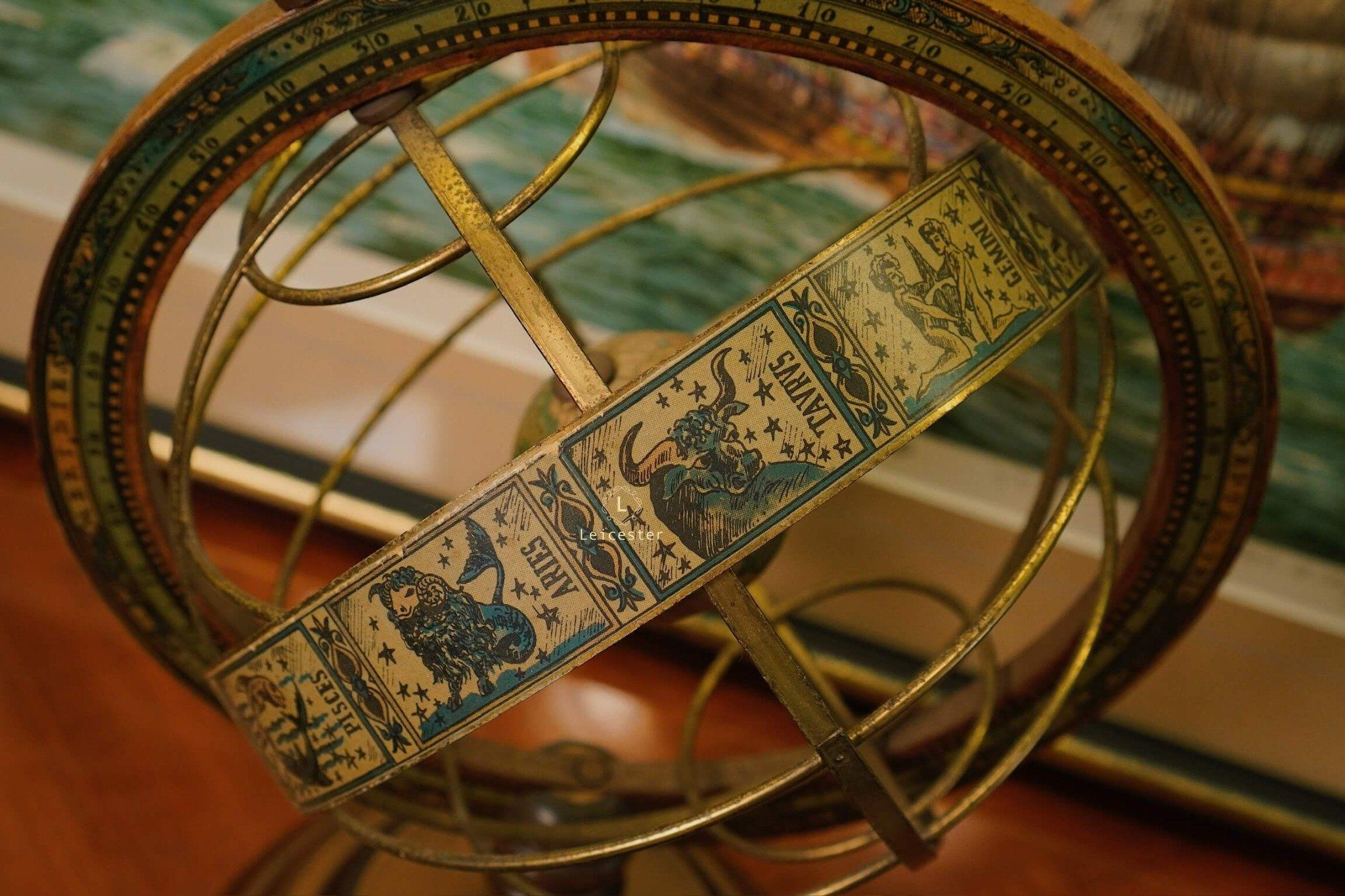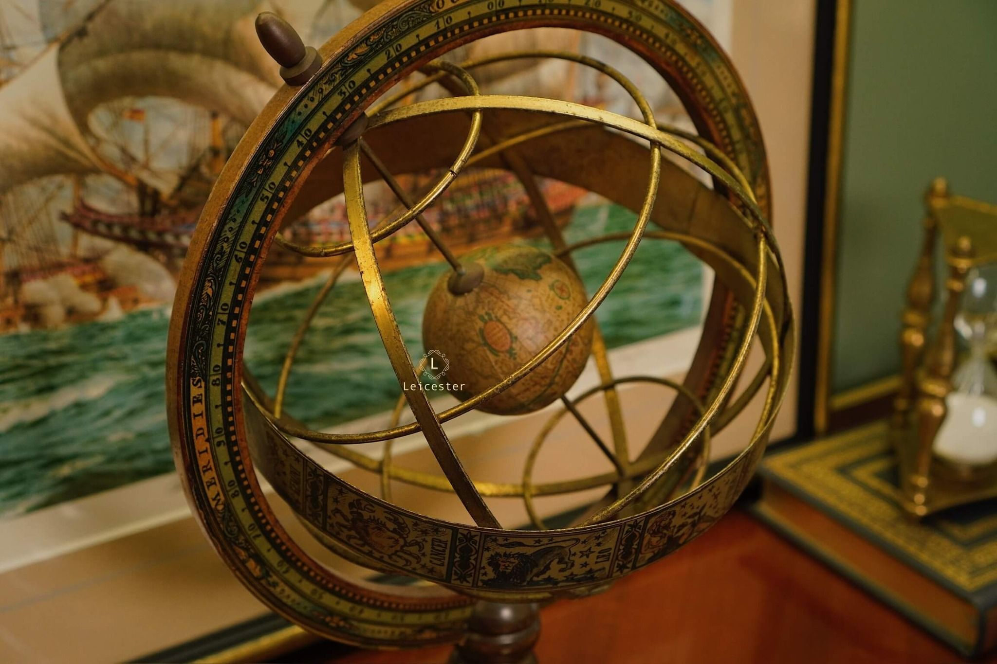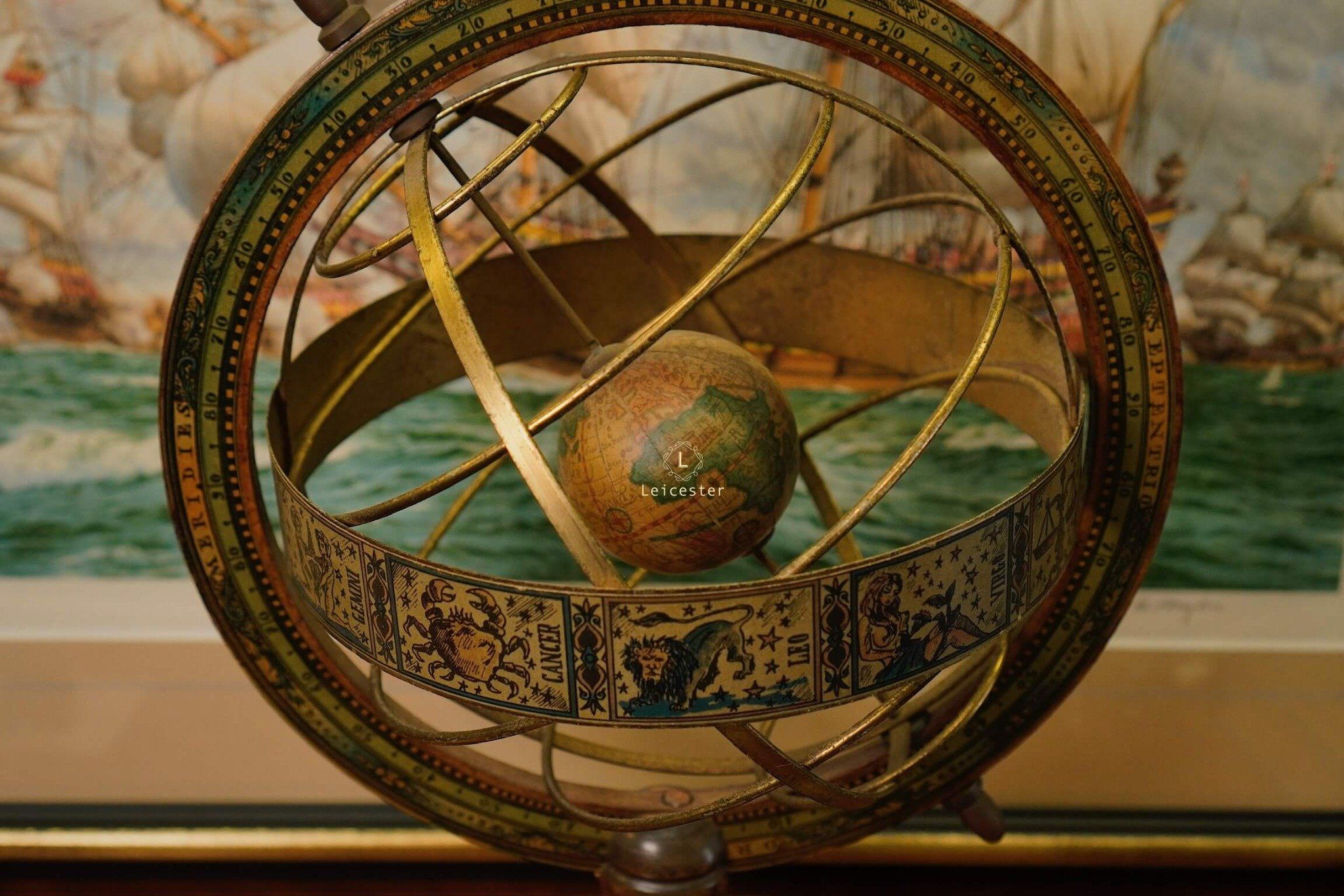 Được lấy cảm hứng từ những mô hình thiên văn học thời Phục Hưng, quả cầu Armillary Sphere mô phỏng chuyển động các thiên thể qua hệ thống vòng đồng patina cổ xếp lồng vào nhau, xoay quanh trái đất thu nhỏ ở trung tâm. Trên các vòng in thủ công 12 cung hoàng đạo ký hiệu Latin, tạo điểm nhấn vintage đậm chất Châu Âu. Armillary Sphere phù hợp mọi vị trí trưng bày, từ bàn làm việc đến kệ sách, giữ sự gọn gàng nhưng vẫn cuốn hút.