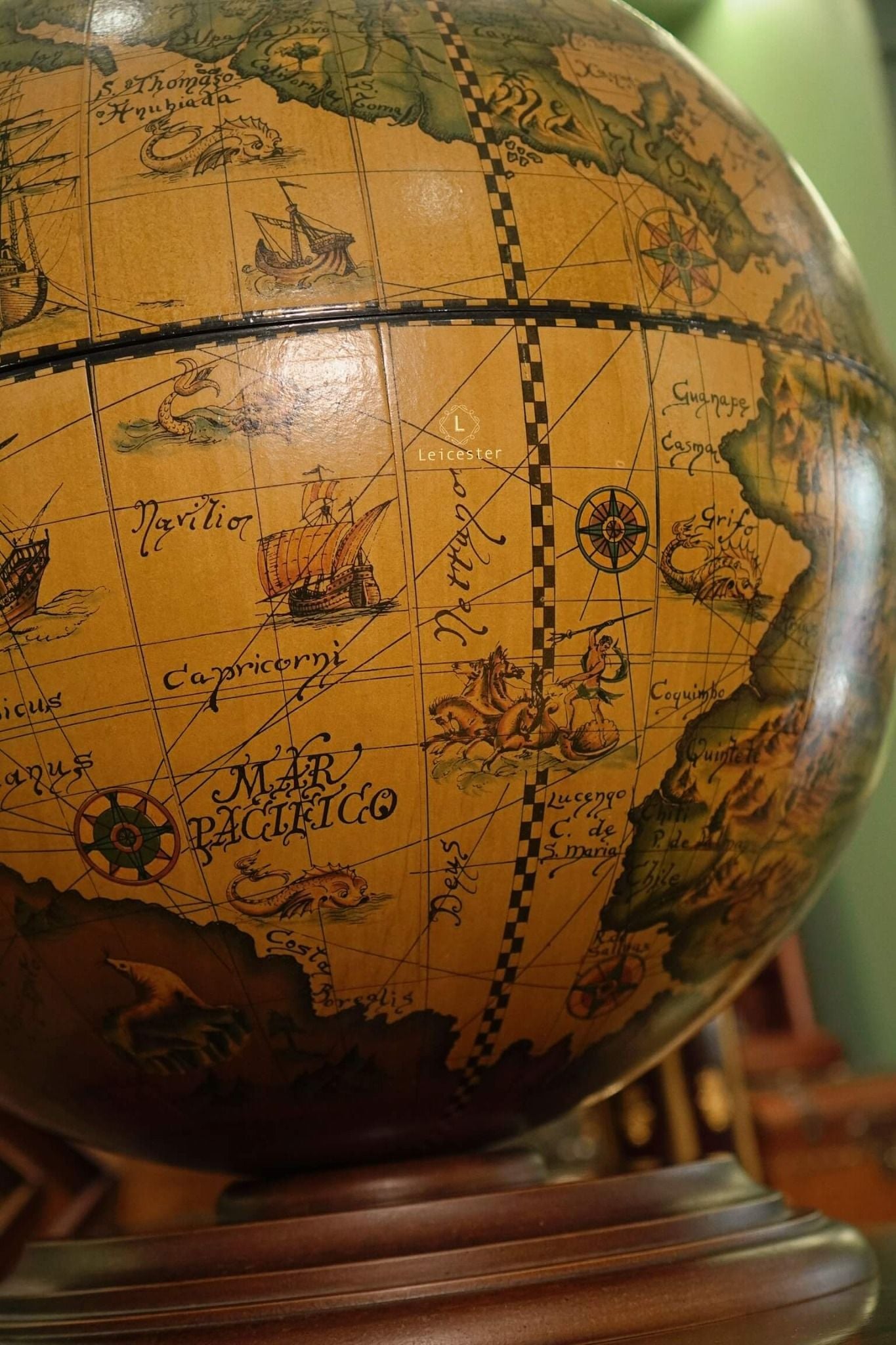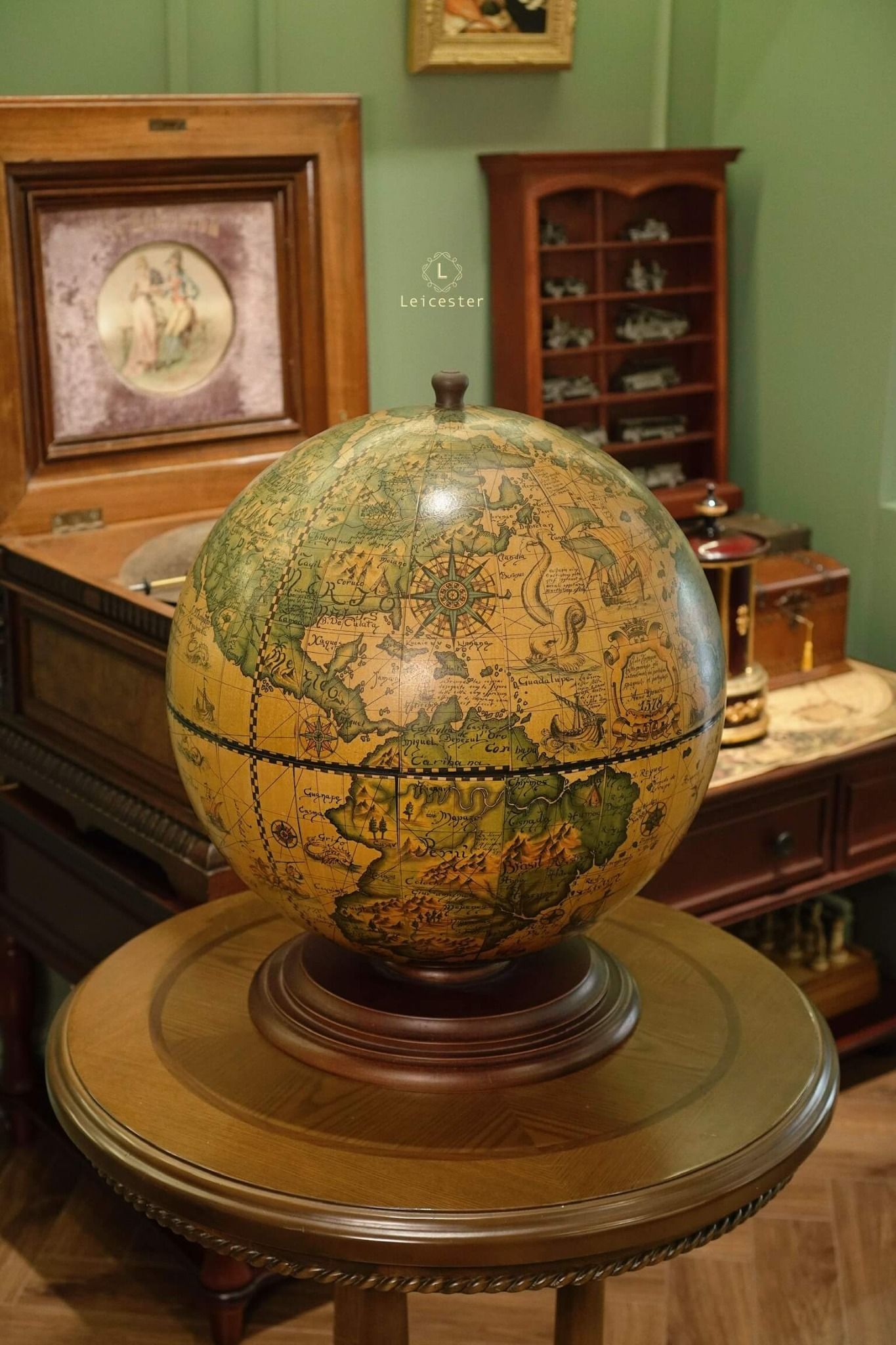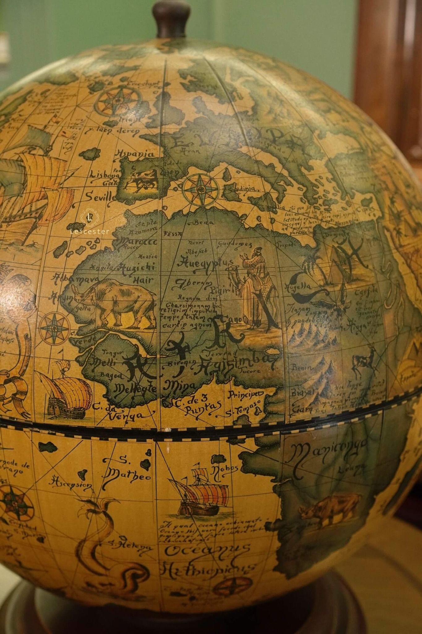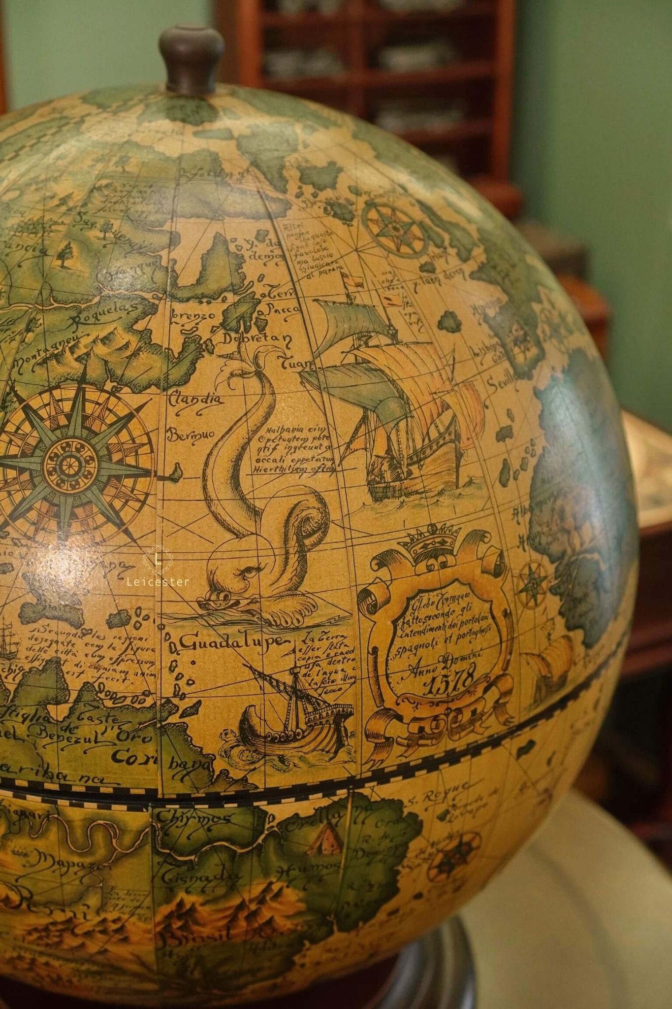 Quả địa cầu này là bản sao của một bản đồ địa cầu trong thế kỷ 17 (1650-1718) do Cha Coronelli thiết kế.