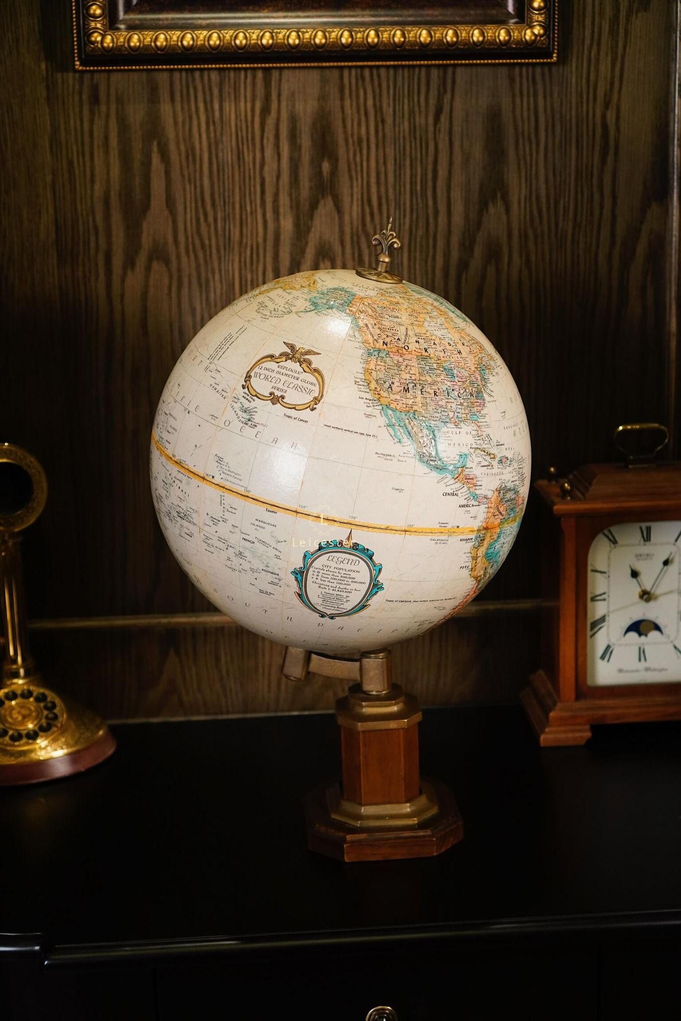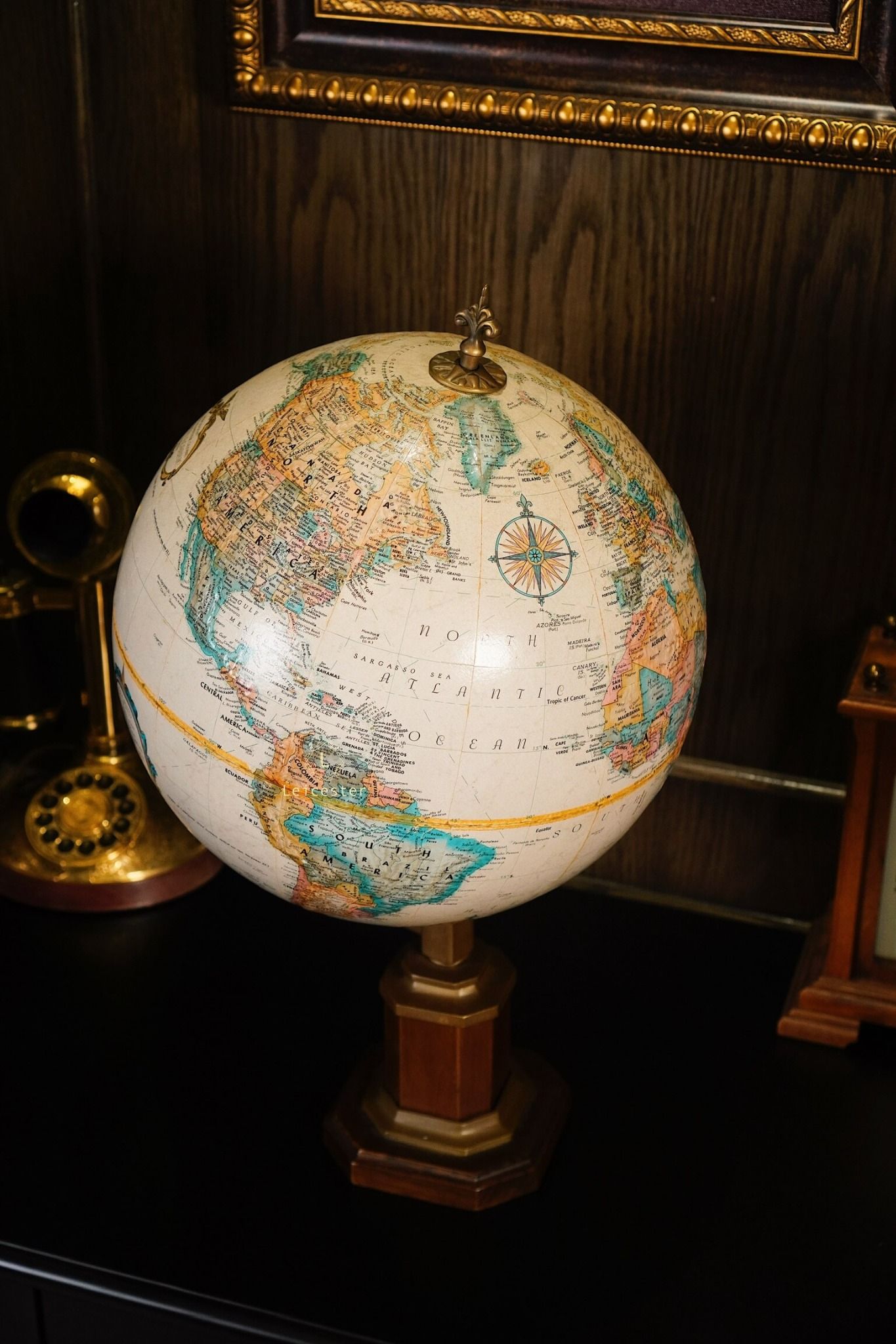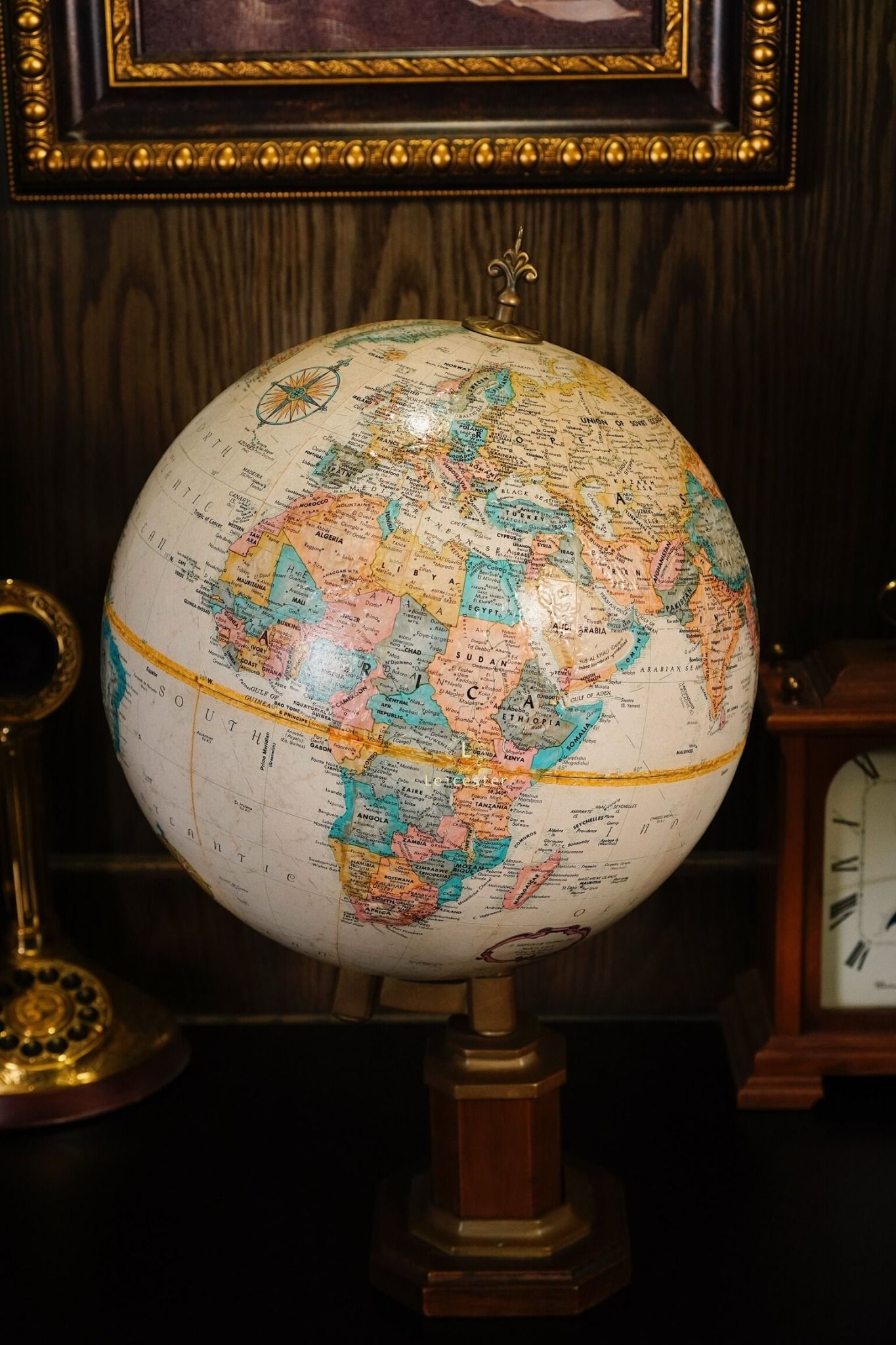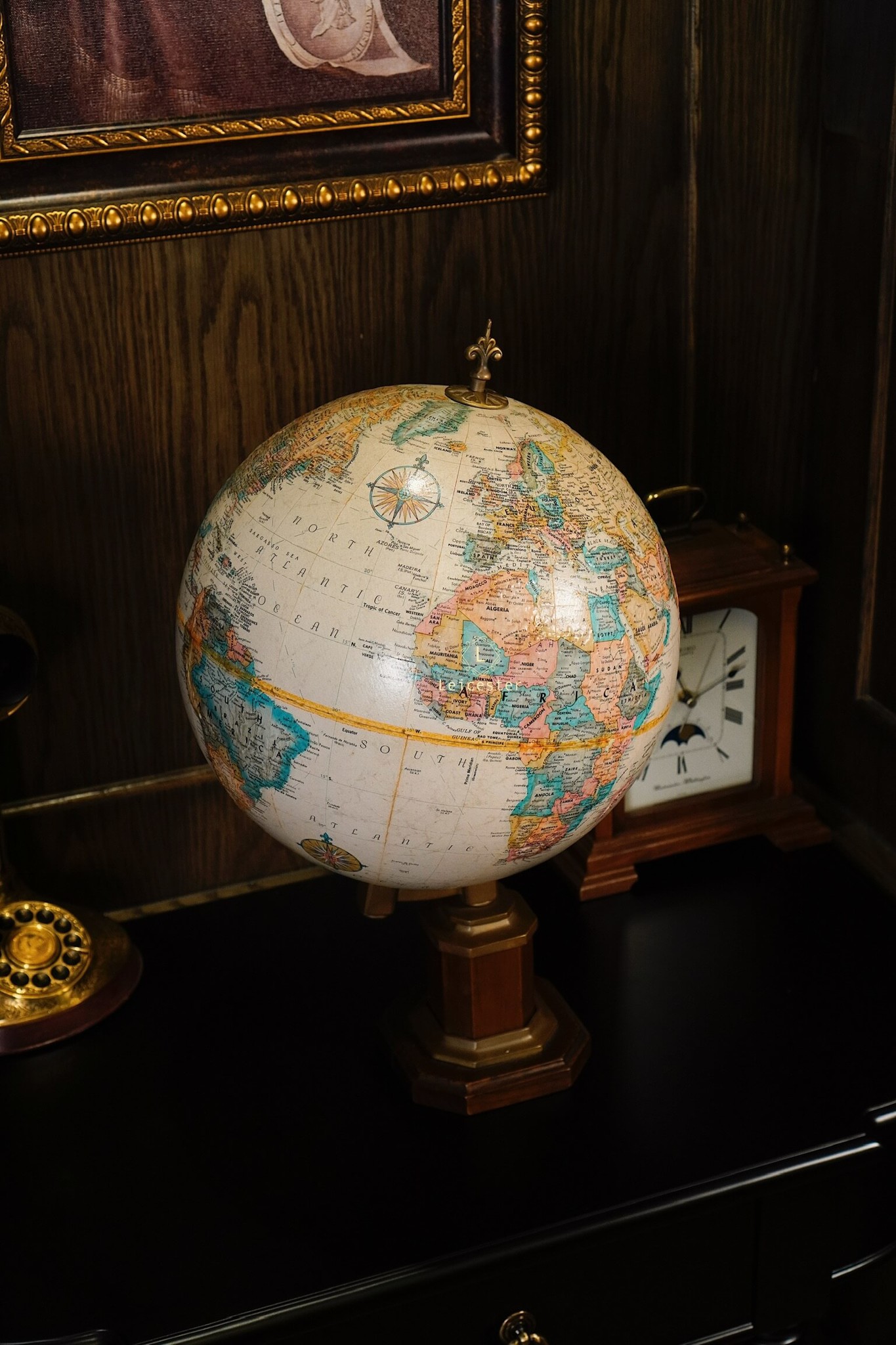 Chất liệu: Đế gỗ, đồng, địa cầu giấy