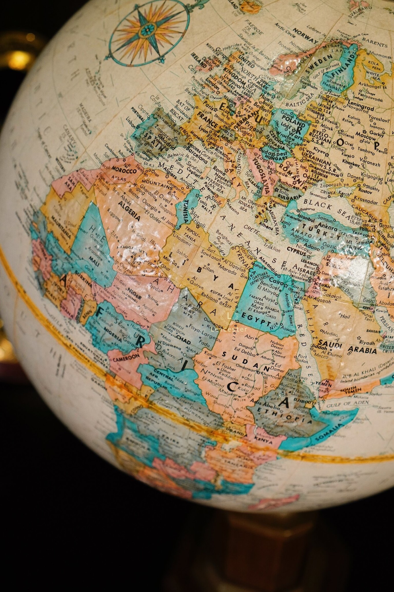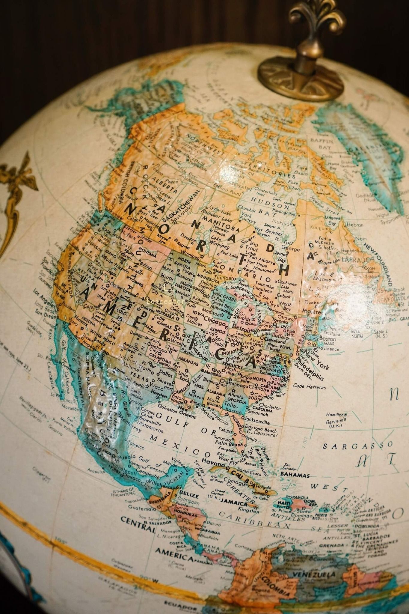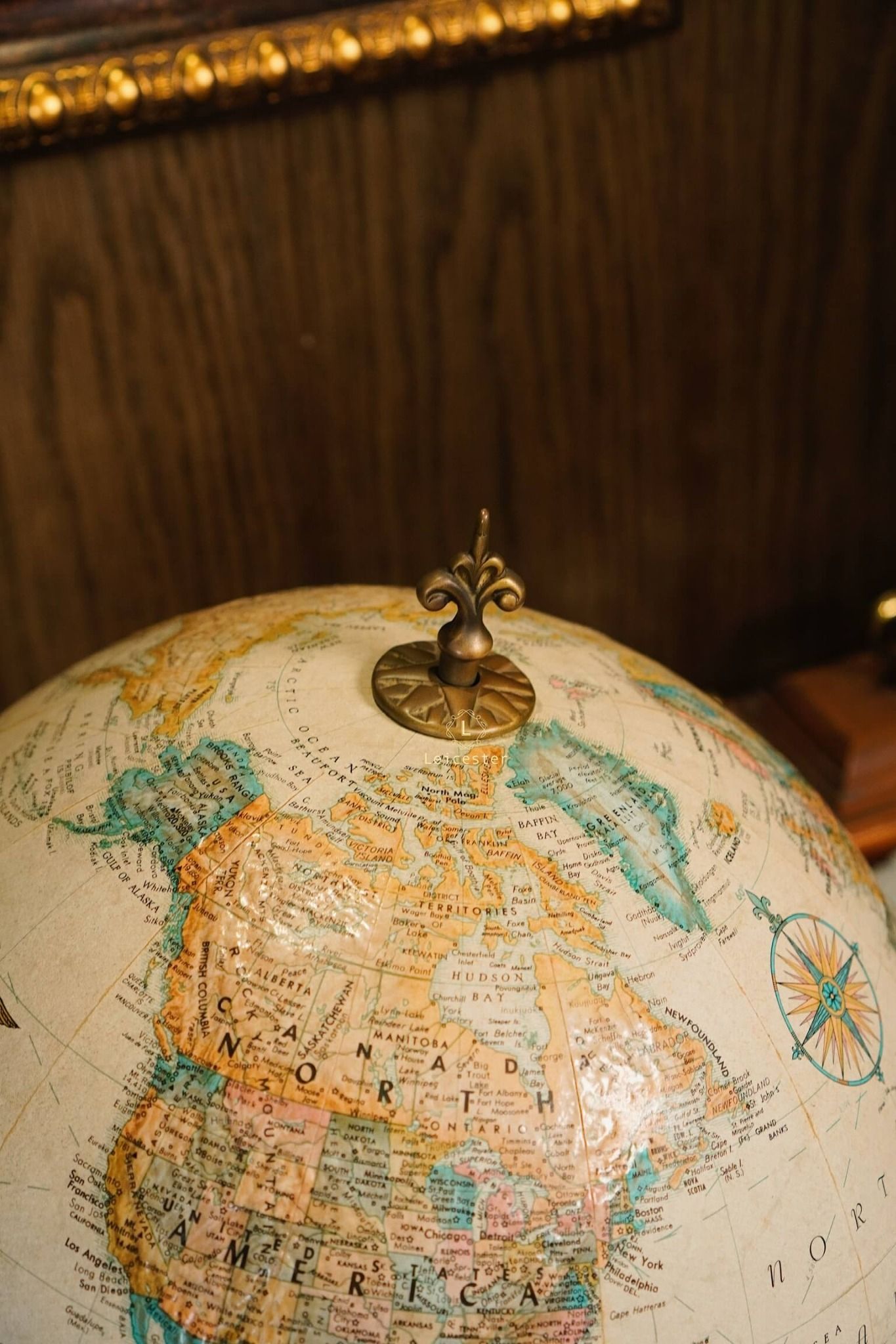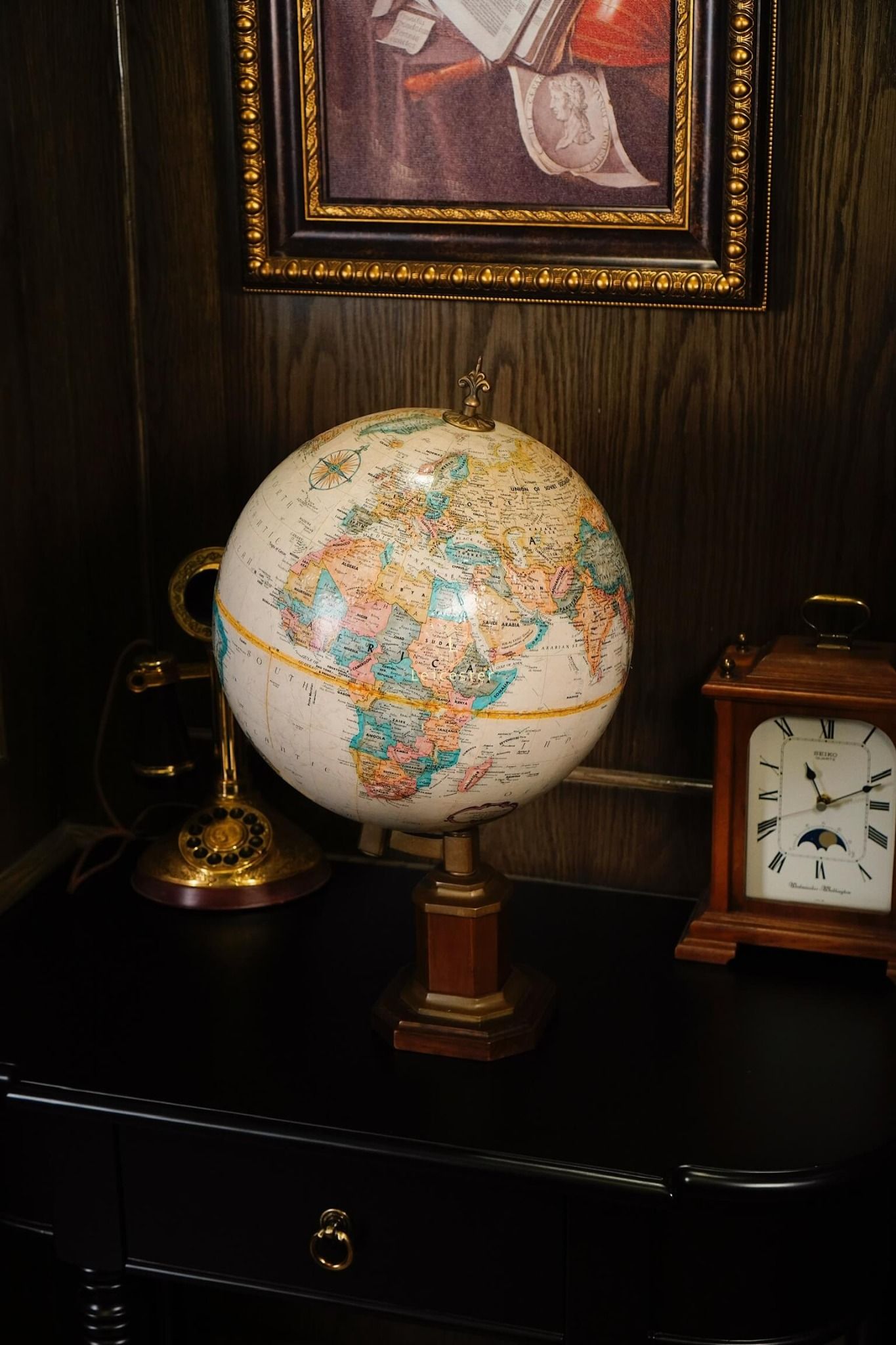 Chất liệu: Đế gỗ, đồng, địa cầu giấy