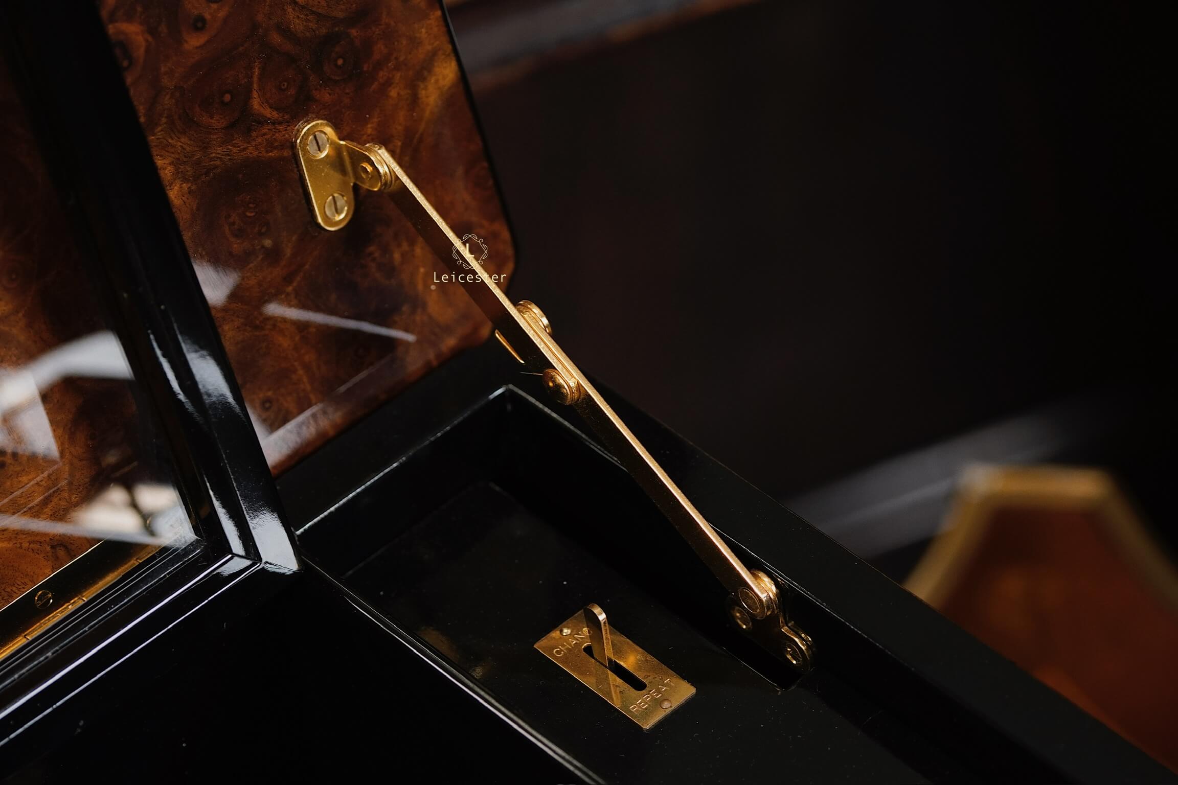 Reuge Music Box 144 Notes không chỉ là một chiếc hộp nhạc mà còn là một biểu tượng của nghệ thuật, tinh hoa chế tác cơ khí truyền thống cùng với vẻ đẹp vượt thời đại, là minh chứng cho sự trường tồn của âm nhạc cổ điển, thanh lịch và đậm chất Thụy Sĩ. Mỗi chi tiết bên trong chiếc hộp nhạc là một chương sử sống động về đỉnh cao kỹ nghệ, từng bánh răng, từng chuyển động đều được trưng bày như một bức tranh cơ học. Vỏ hộp được làm từ kính và gỗ cao cấp, hoàn thiện thủ công với chi tiết đồng sáng bóng mang đến vẻ ngoài vừa sang trọng vừa hoài cổ.