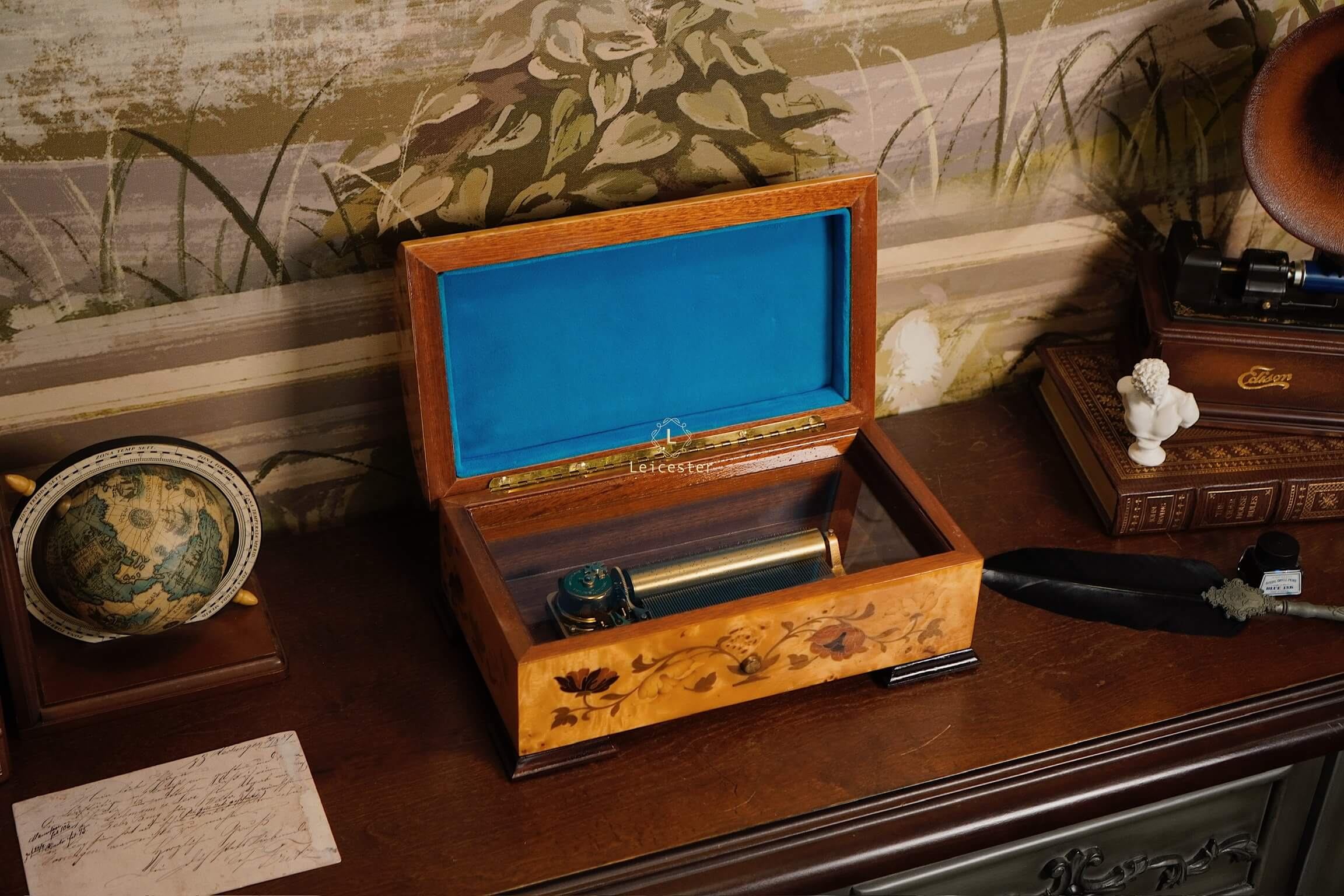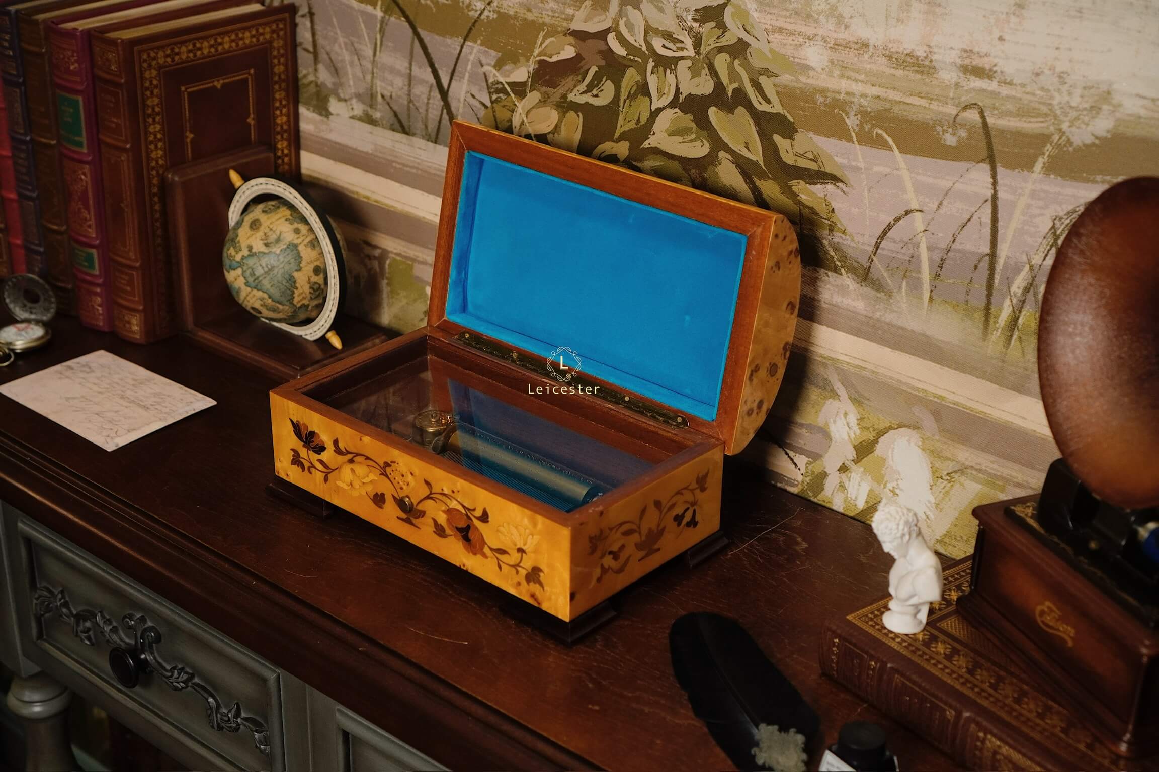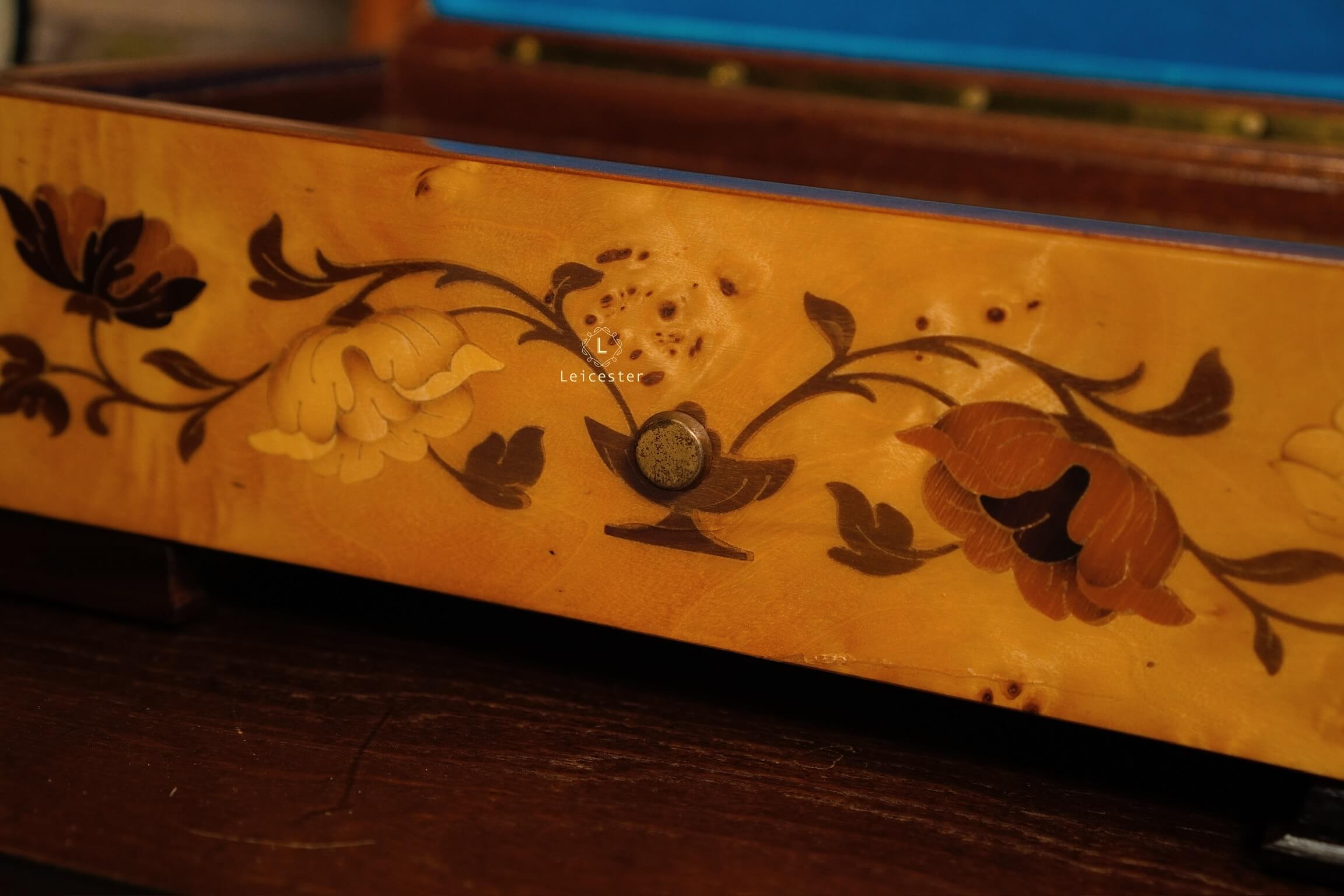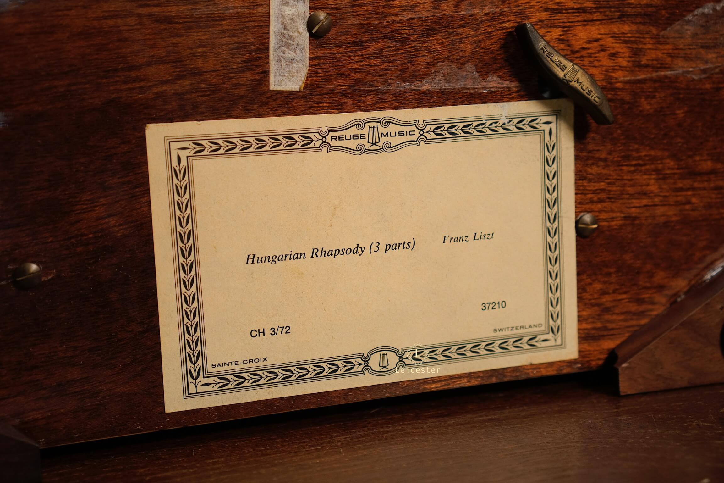 Reuge music box 72 notes là một kiệt tác trình diễn ba đoạn nhạc trong Hungarian Rhapsody của thiên tài Franz Liszt. Chiếc hộp được chế tác từ gỗ tự nhiên cao cấp, khoang trong lót nhung xanh quý phái, kết hợp cơ cấu 72 notes tinh chỉnh với độ chính xác cao để tái hiện từng giai điệu trong trẻo và giàu cảm xúc. Lớp vỏ ngoài nổi bật với kỹ thuật khảm gỗ marquetry tinh tế, biến hộp nhạc không chỉ thành công cụ thưởng thức giai điệu bất hủ, mà còn là một tác phẩm nghệ thuật sưu tầm mang giá trị vượt thời gian.