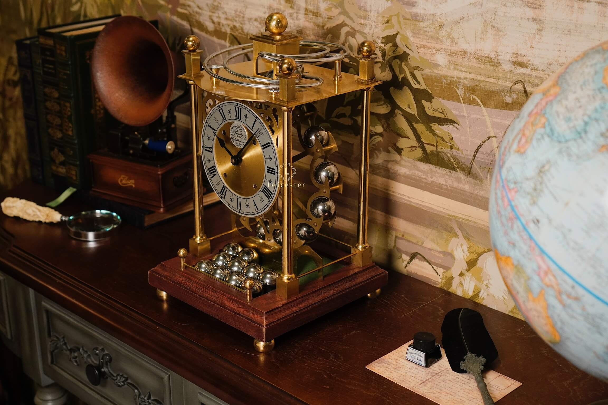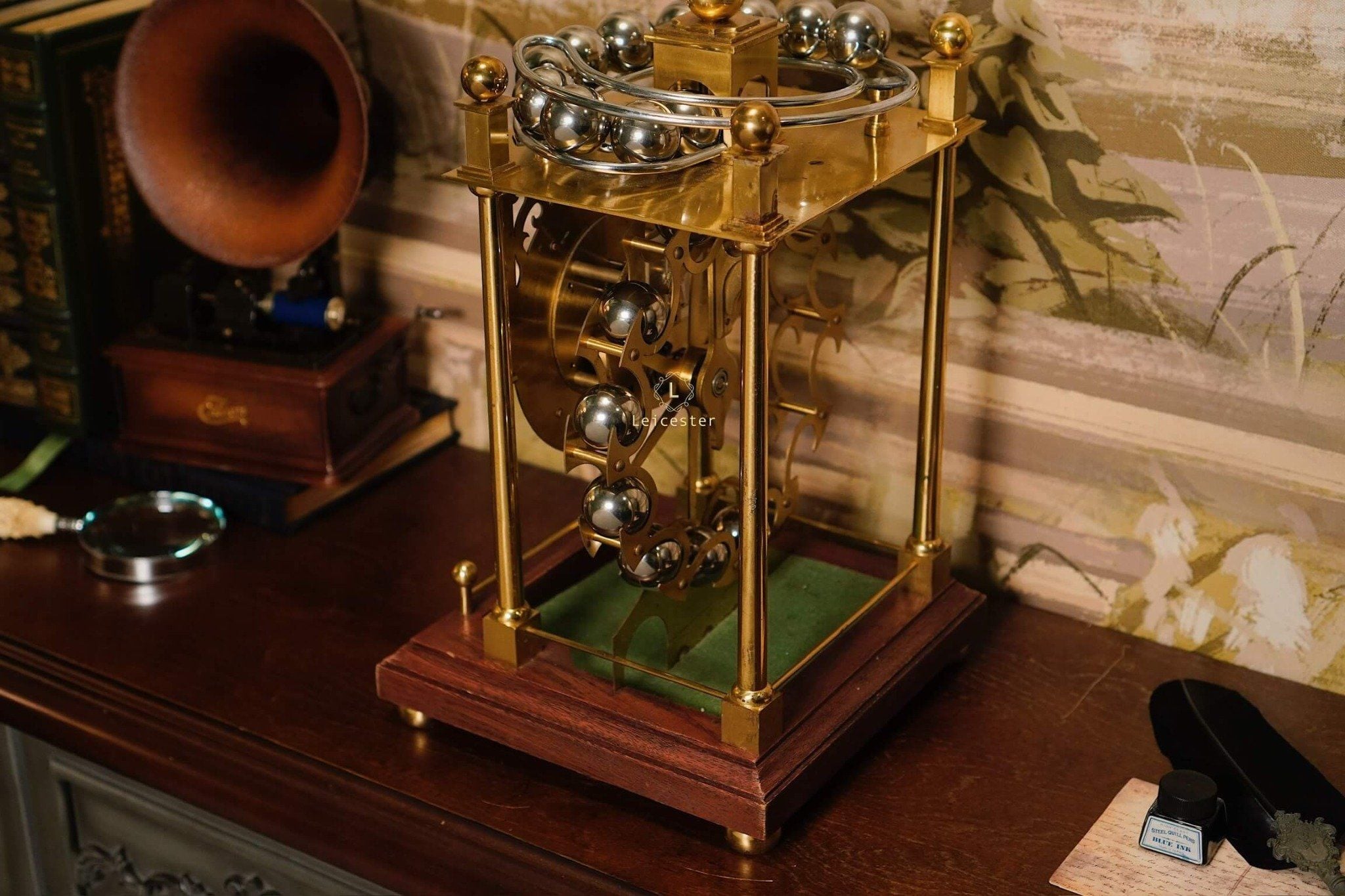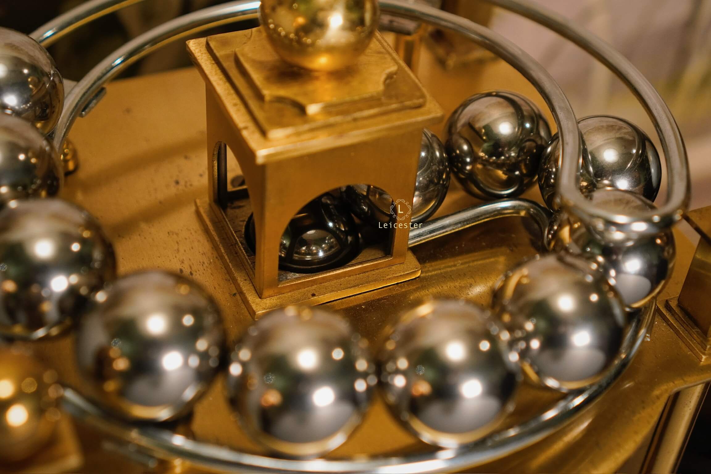 Không cần mặt số truyền thống, chiếc Rolling Ball Clock đo thời gian bằng sự di chuyển nhịp nhàng của các viên bi thép, được điều khiển bởi hệ thống bánh răng và lực trọng trường. Khung đồng vững chắc, ray dẫn tinh xảo và từng mối nối cơ khí được hoàn thiện thủ công vừa thể hiện kỹ nghệ chế tác bậc thầy, vừa gói trọn tinh thần “British engineering” – bền bỉ, tinh xảo và sang trọng vượt thời gian.